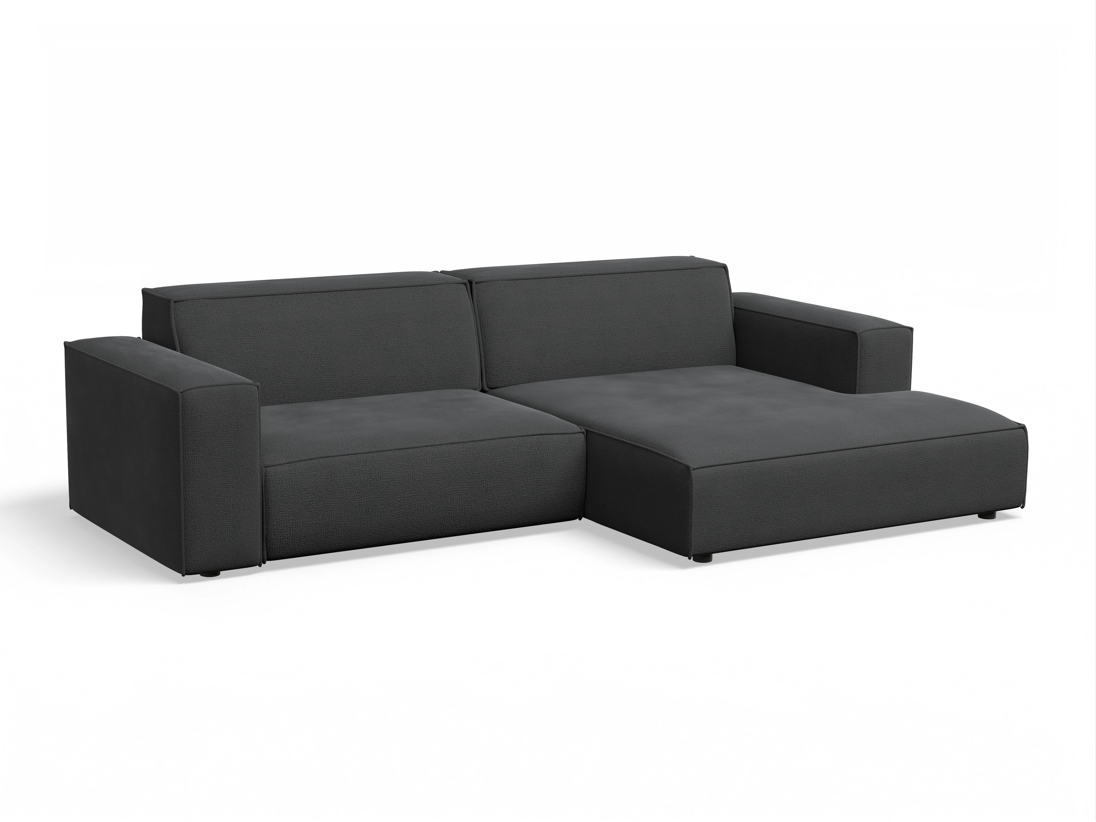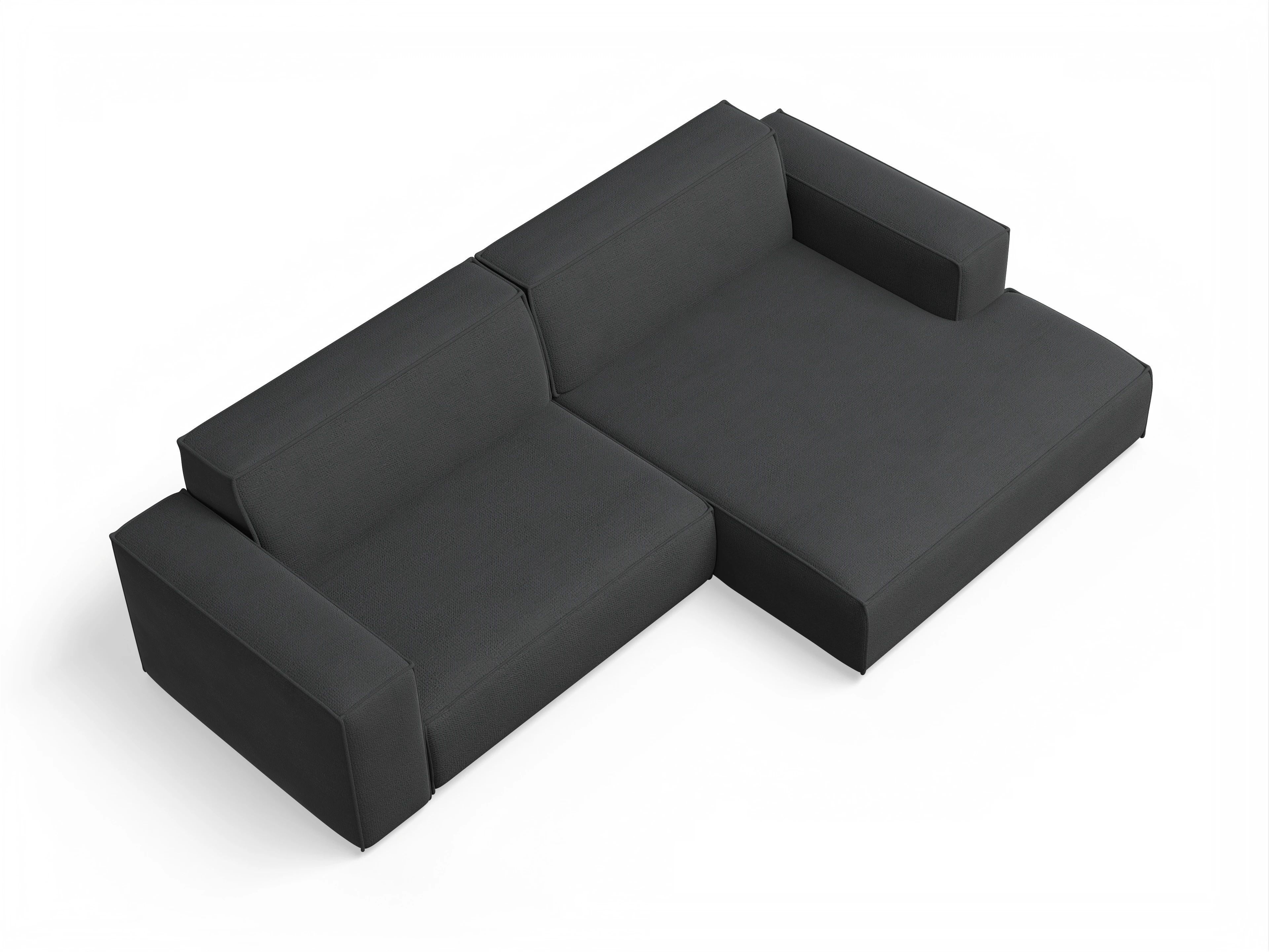 Das Ecksofa besteht aus einem 2-Sitzer mit Armlehne links und einem Longchair XL mit Armlehne rechts und inkl. Sitztiefenverstellung.