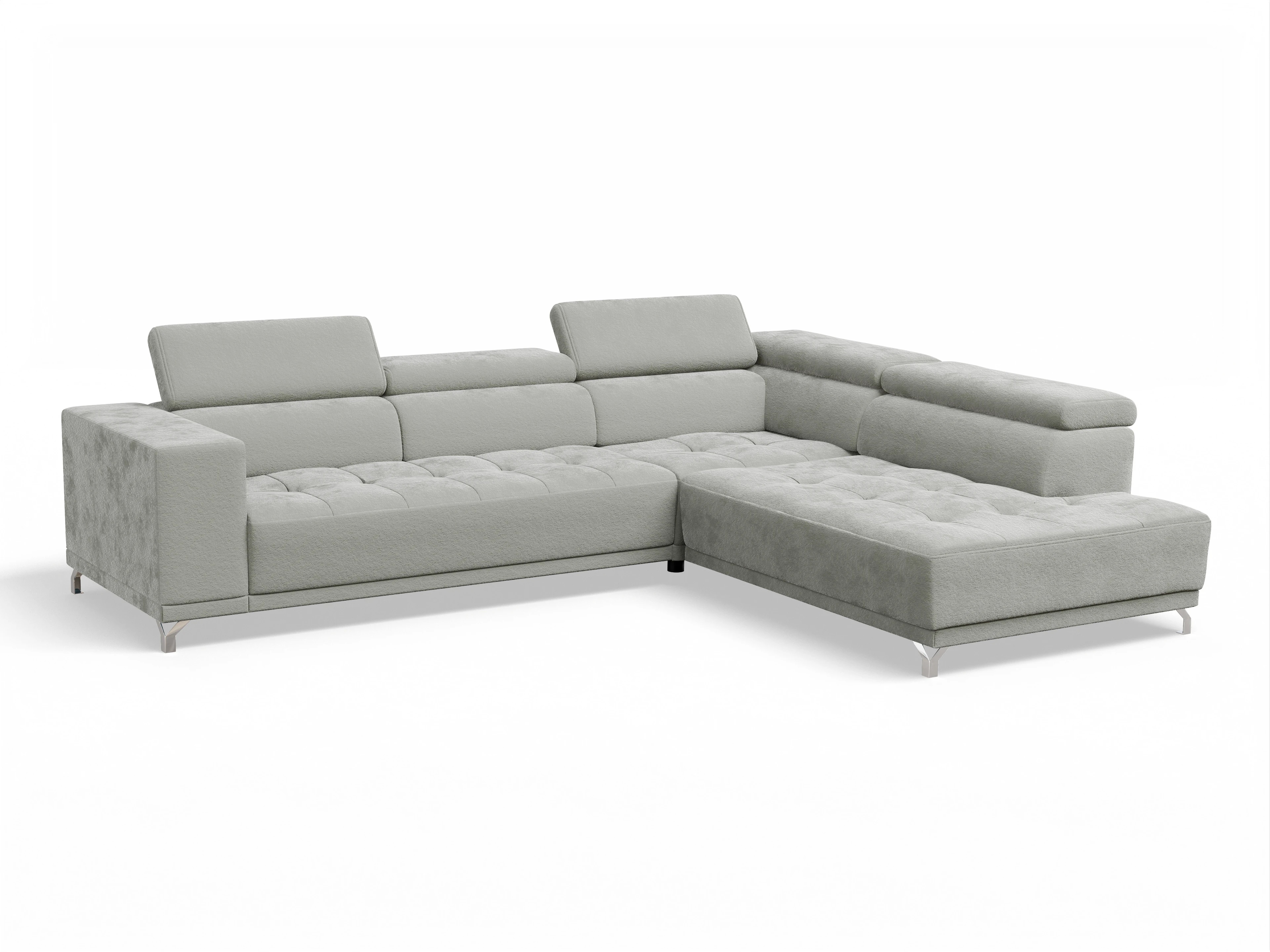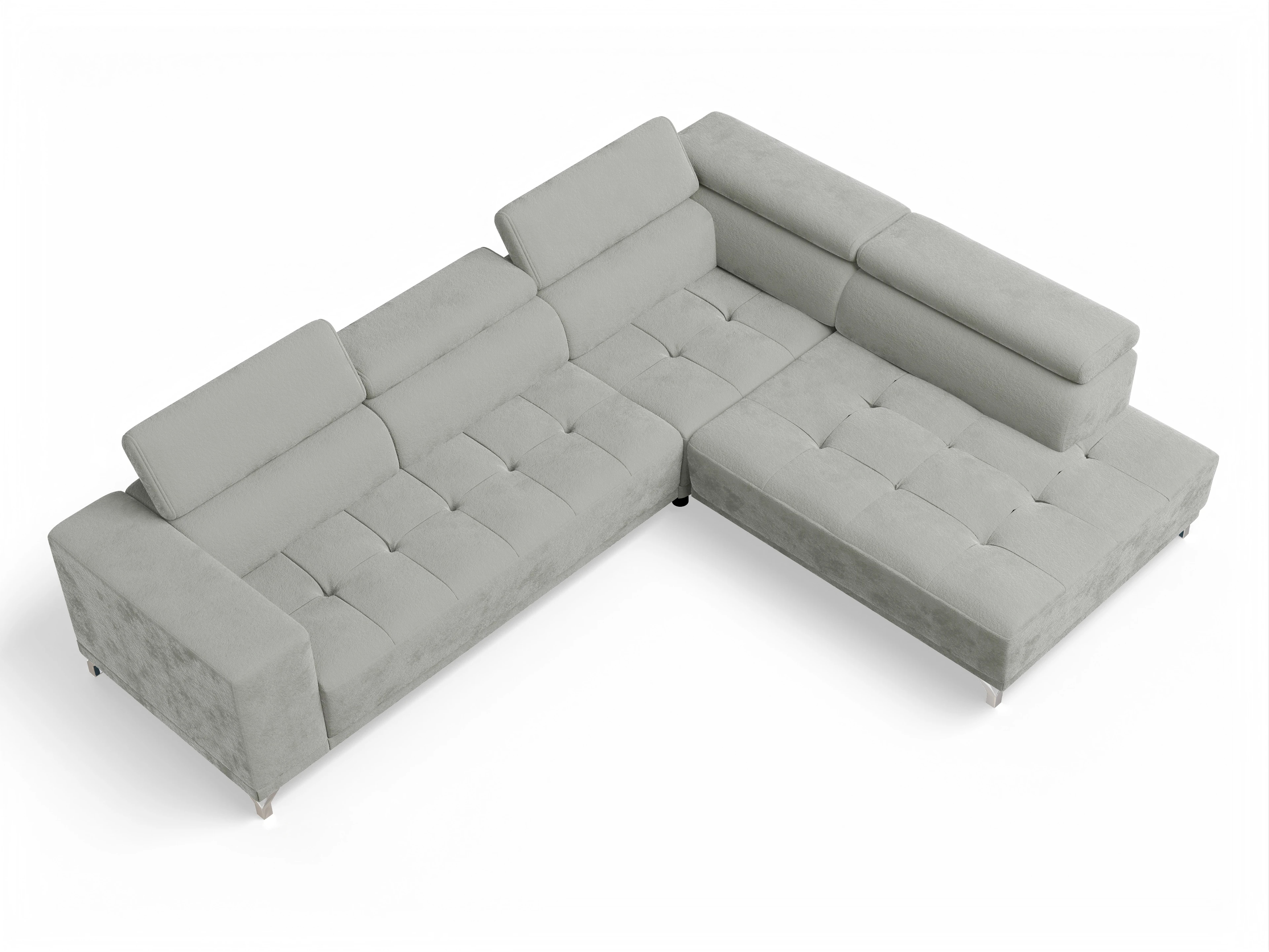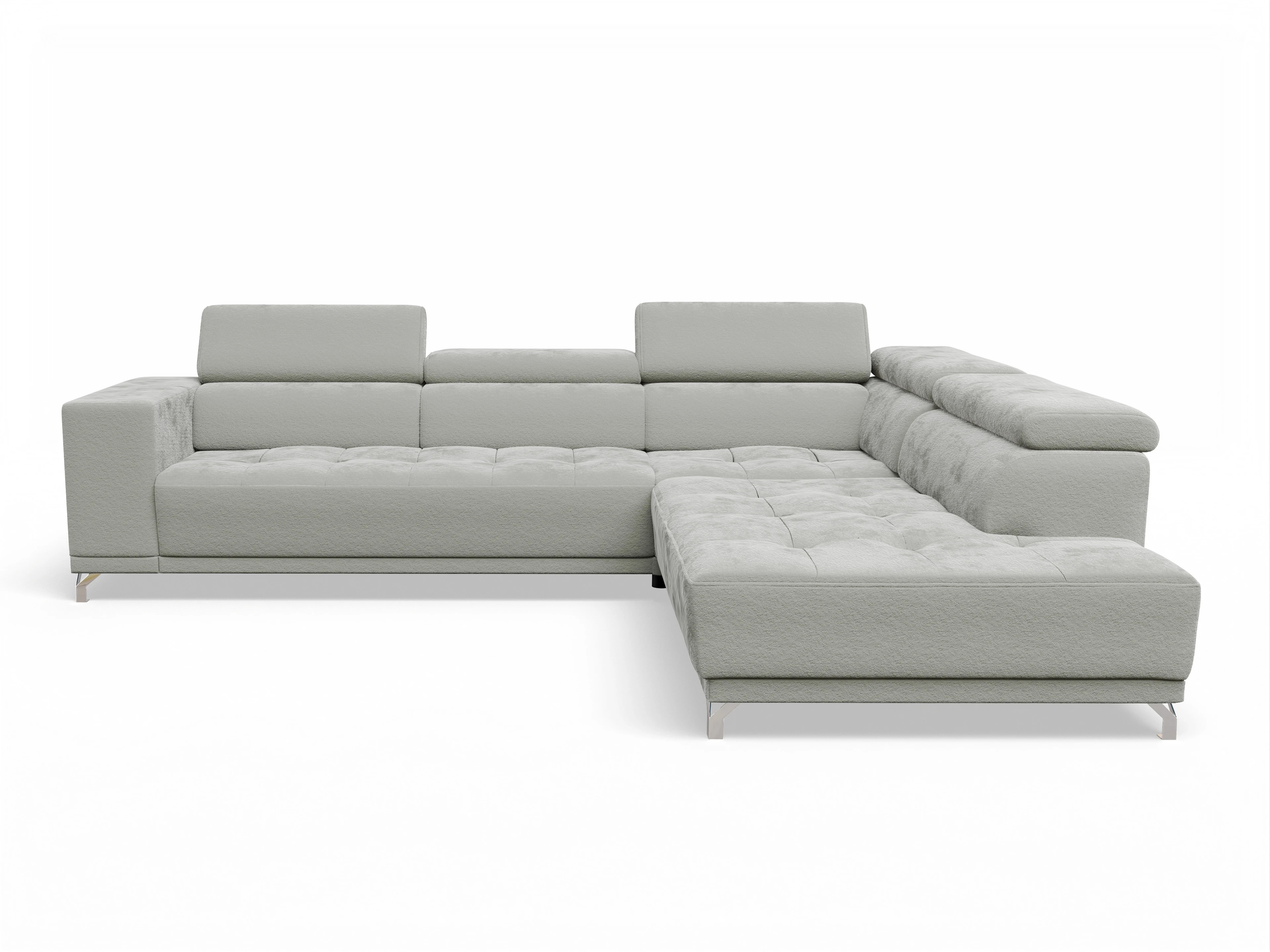 Das Ecksofa besteht aus einem 2,5-Sitzer mit Armlehne links, einer Winkelecke groß sowie einem Abschlussteil rechts. Das Sofa kommt inklusive 5x Kopfteilverstellung und 1x Sitztiefenverstellung im Abschlussteil.