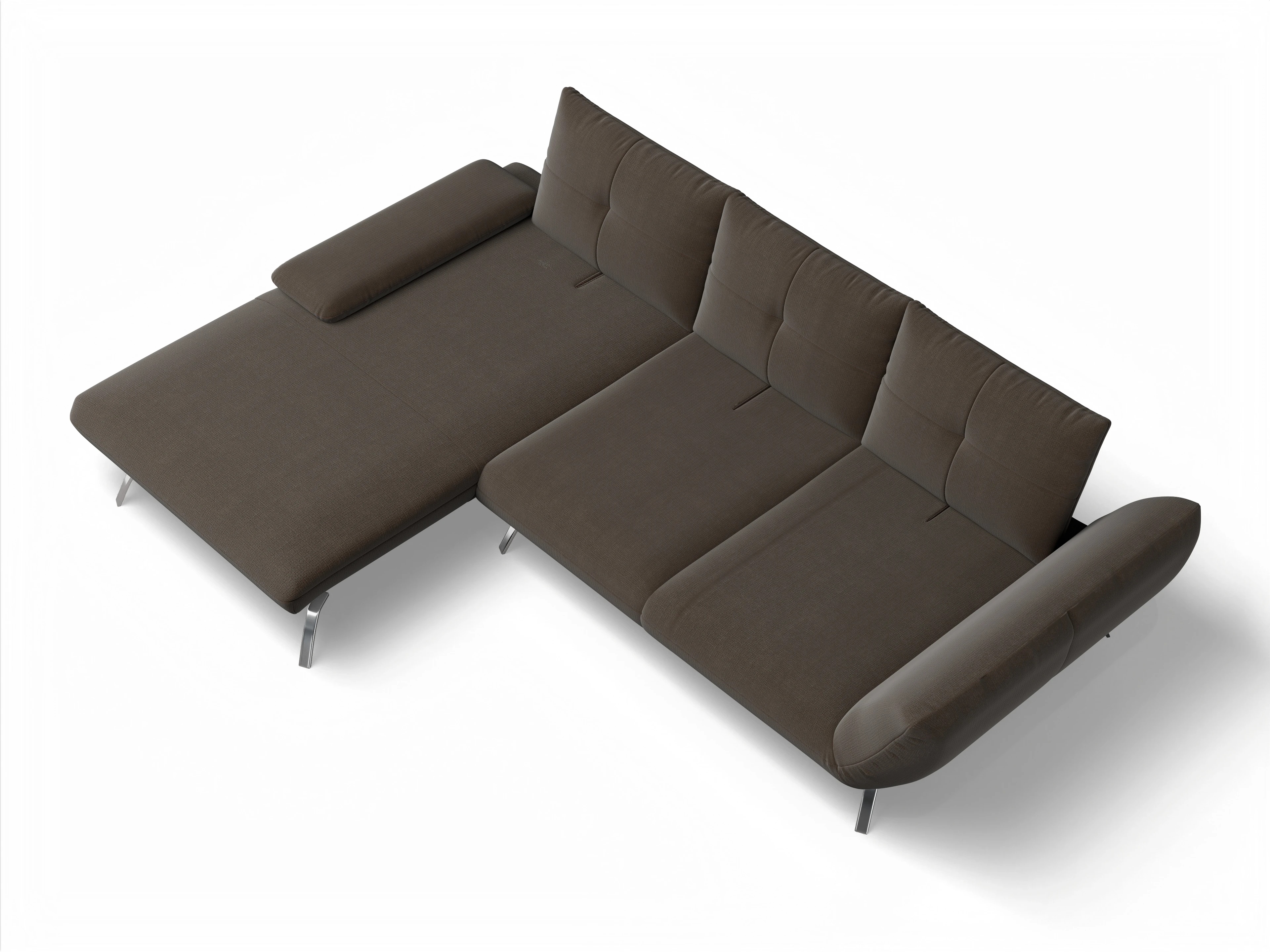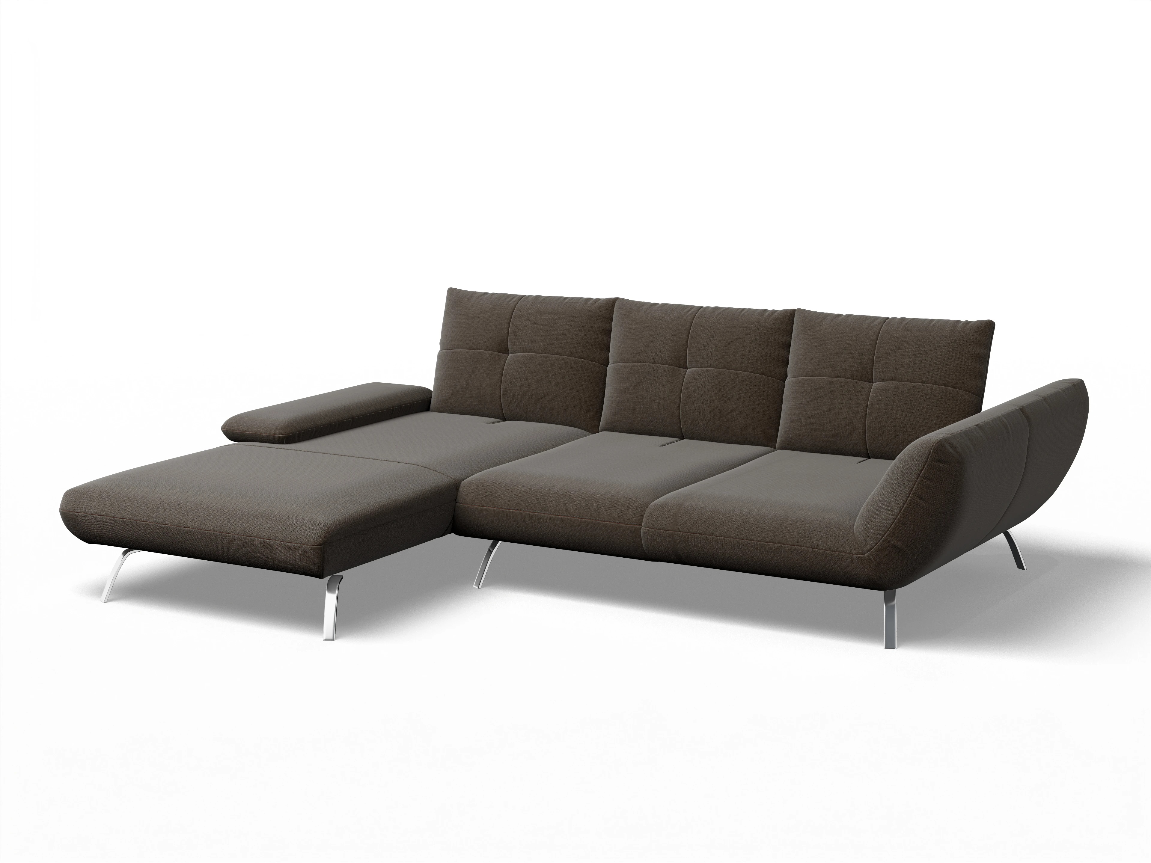 Das moderne und schwungvolle Modell Dubai, präsentiert sich auf filigranen Metallfüßen fast schwebend und verleiht Ihrem Wohnraum eine wunderbare Leichtigkeit. Für gesellige Runden mit Freunden oder Familienversammlungen bietet das Sofa ausreichend Platz, um alle bequem unterzubringen. Designliebhaber werden die vielfältigen Möglichkeiten der Stoffkombinationen für Sitzfläche und Korpus schätzen. Die gesteppten Rückenkissen und die Nierenkissen runden das Sofa gelungen ab. Egal ob als Megasofa, Ecksofa, Wohnlandschaft oder Loveseat – das Sofa lässt sich individuell konfigurieren und passt perfekt in jedes Wohnzimmer. Das besondere Highlight sind die inklusive Schwenkrücken, und mit der optionalen Rückenneigungsfunktion und Armlehnenverstellung können Sie den Komfort noch optimieren.