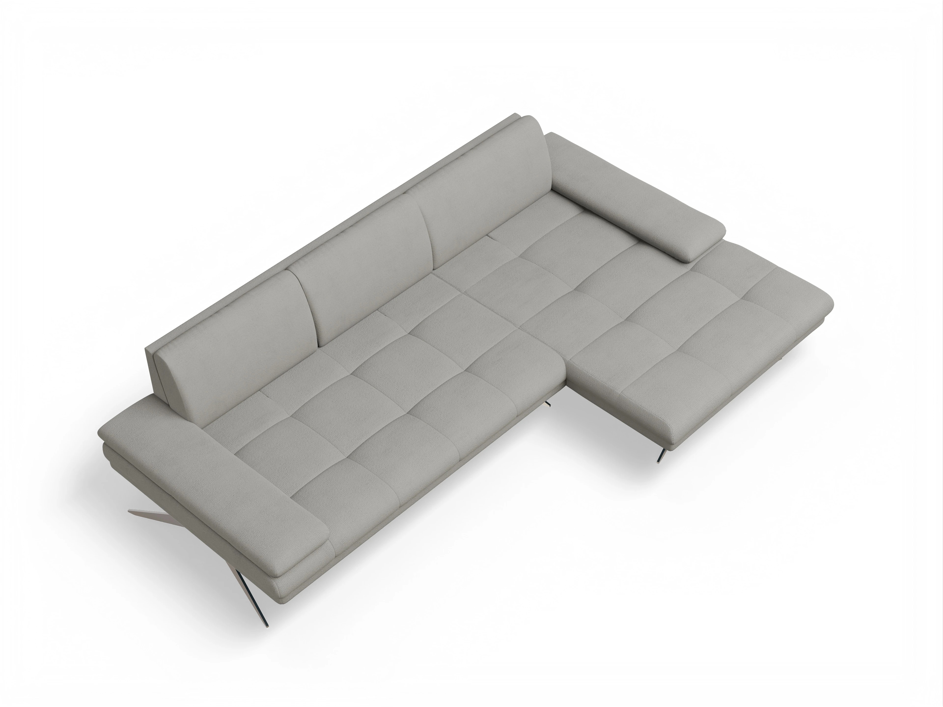 Das Ecksofa besteht aus einem 2,5-Sitzer mit Armlehne links und einem Longchair mit Armlehne rechts. Das Ecksofa wird mit 3x Sitztiefenverstelllung inklusive geliefert.