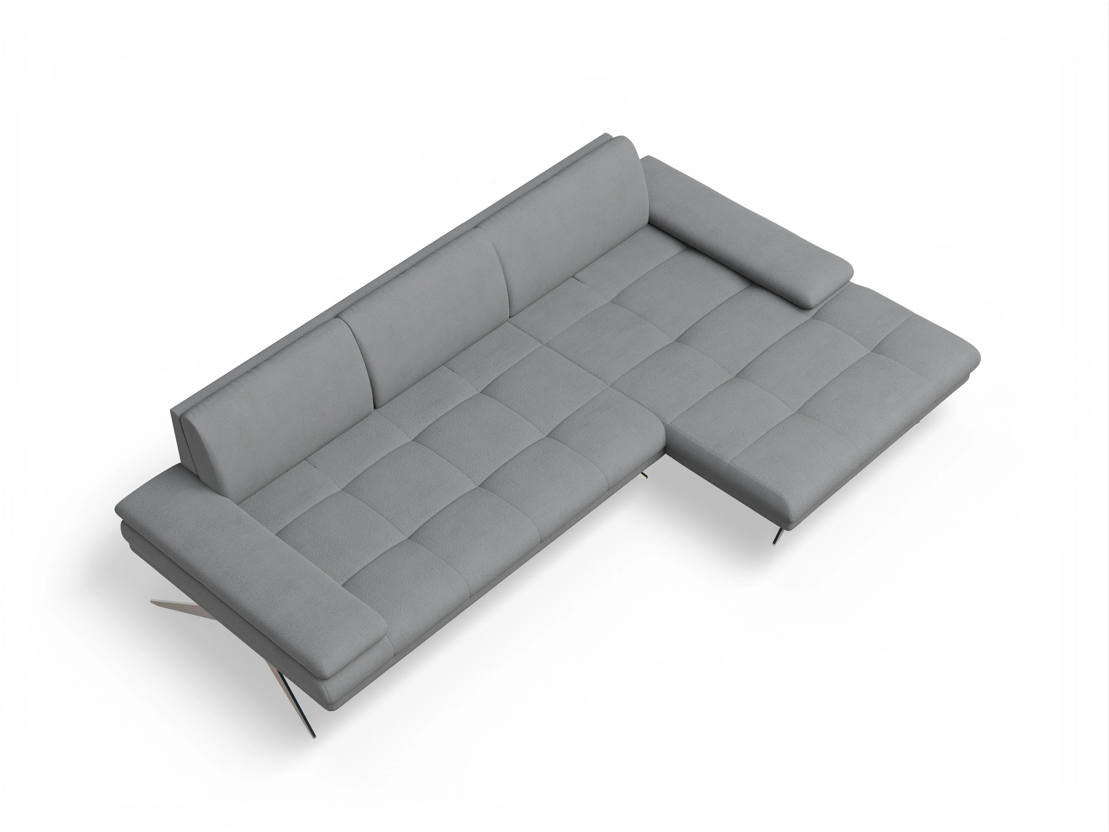 Das Ecksofa besteht aus einem 2,5-Sitzer mit Armlehne links und einem Longchair mit Armlehne rechts. Das Ecksofa wird mit 3x Sitztiefenverstelllung inklusive geliefert.