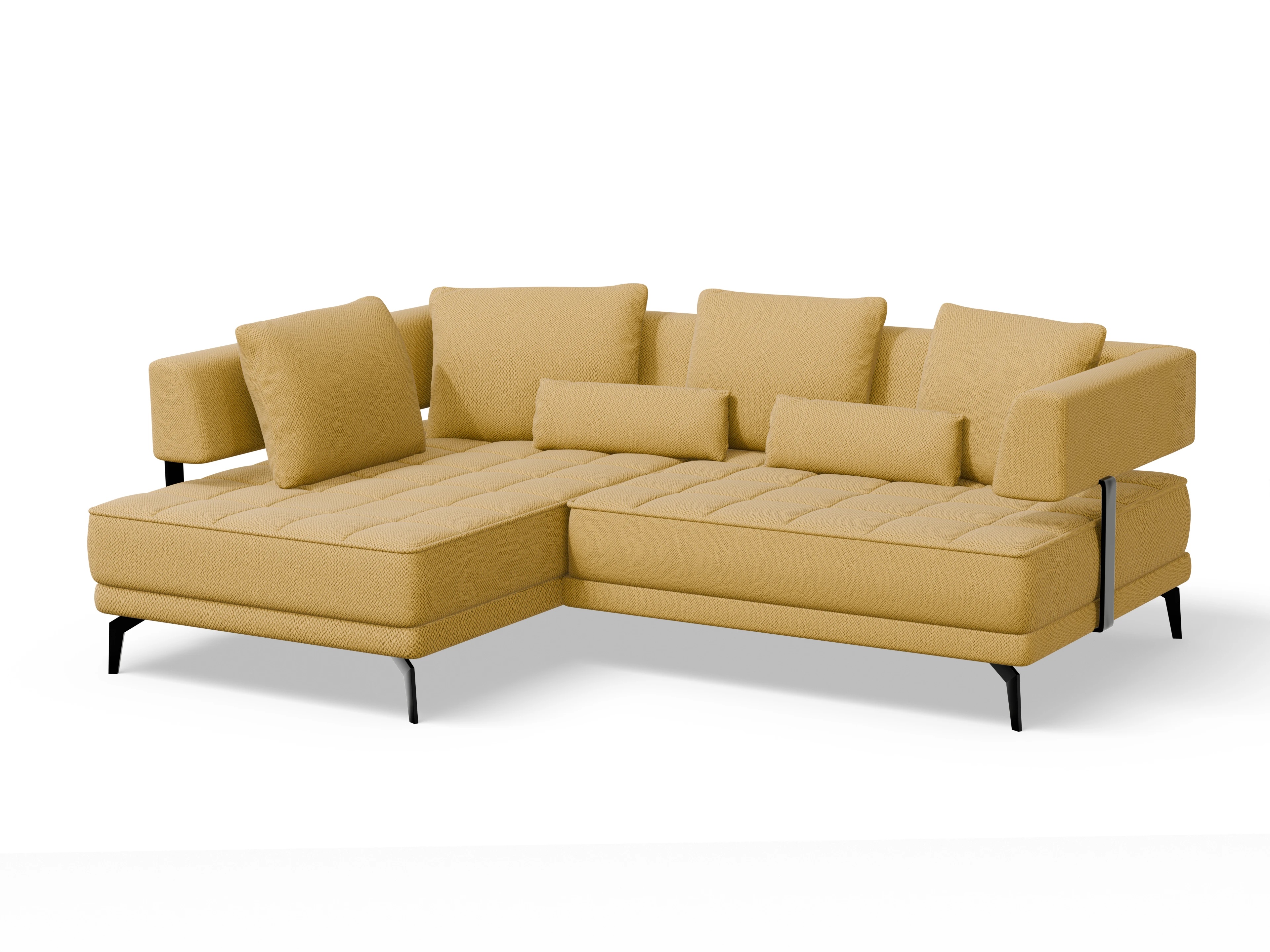Das Ecksofa besteht aus einer Umbauecke links und einem 2-Sitzer mit Armlehne rechts inkl. motorischer Sitztiefenverstellung. Das Ecksofa wird mit 4x Rückenkissen und 2x Nierenkissen geliefert.