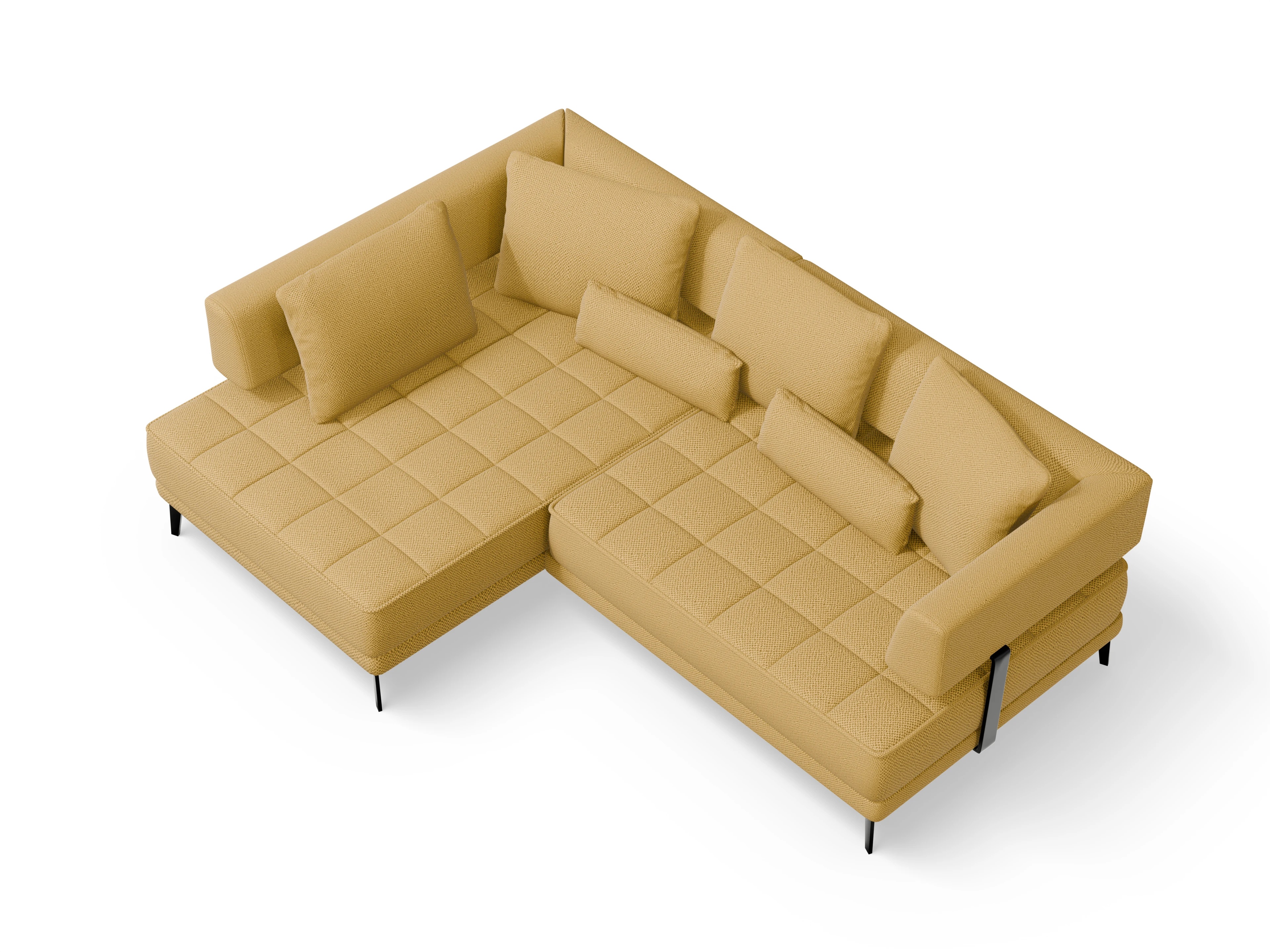 Genua fügt sich perfekt in moderne Innenräume ein und setzt mit markanten Rückenlehnen sowie einem exklusiven Kissen-Set – welches aus 4 Rückenkissen und 2 Nierenkissen besteht - designstarke Akzente. Als freistehendes Ecksofa hebt es sich vom Raum ab und wird zum imposanten Mittelpunkt – ideal positioniert, um jeden Bereich Ihres Wohnraums in Szene zu setzen.