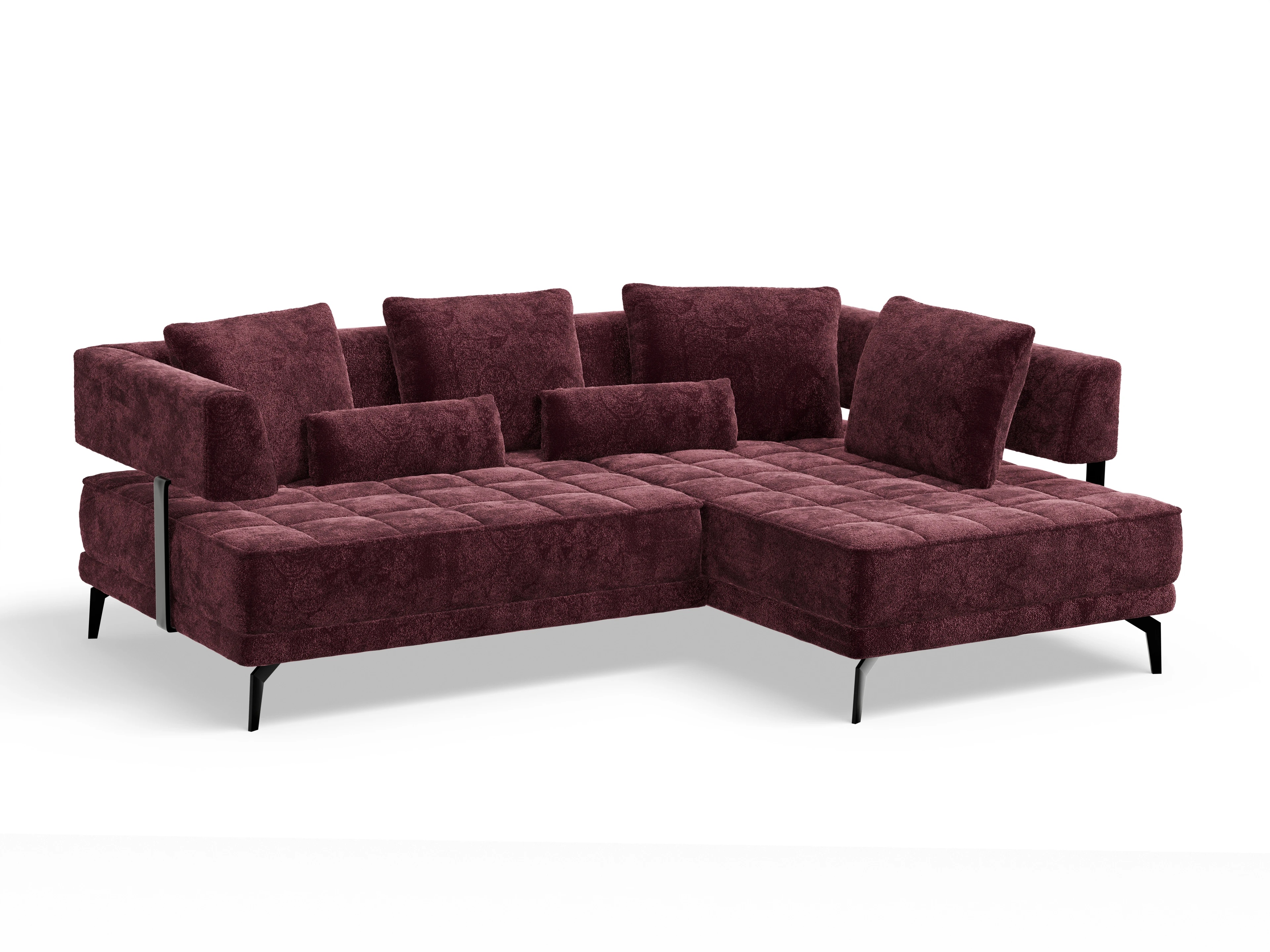 Genua fügt sich perfekt in moderne Innenräume ein und setzt mit markanten Rückenlehnen sowie einem exklusiven Kissen-Set – welches aus 4 Rückenkissen und 2 Nierenkissen besteht - designstarke Akzente. Als freistehendes Ecksofa hebt es sich vom Raum ab und wird zum imposanten Mittelpunkt – ideal positioniert, um jeden Bereich Ihres Wohnraums in Szene zu setzen.