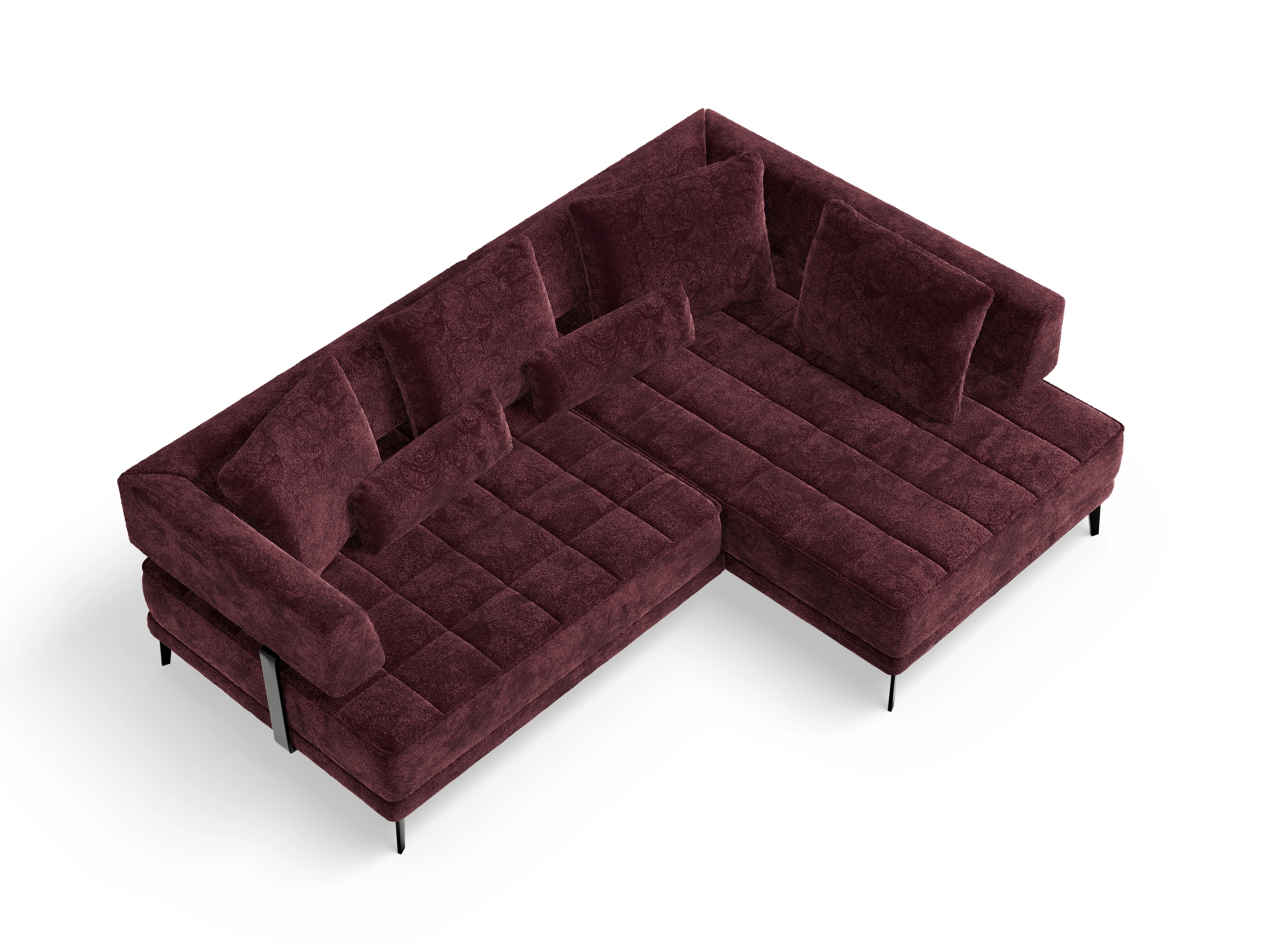Entdecken Sie Genua – das moderne Ecksofa, das Eleganz und Komfort neu definiert. Auf wirkungsvollen, stilvollen Beinen präsentiert es sich als dominantes Zentrum Ihres Wohnraums und besticht durch ein klassisch zeitloses Design. Die klare Formensprache wird durch die umlaufende, gepolsterte Reling betont, die bequeme Rückenkissen souverän trägt. Die seitlichen Metallbügel dienen nicht nur der Konstruktion, sondern verleihen dem Modell sein markantes Erscheinungsbild.