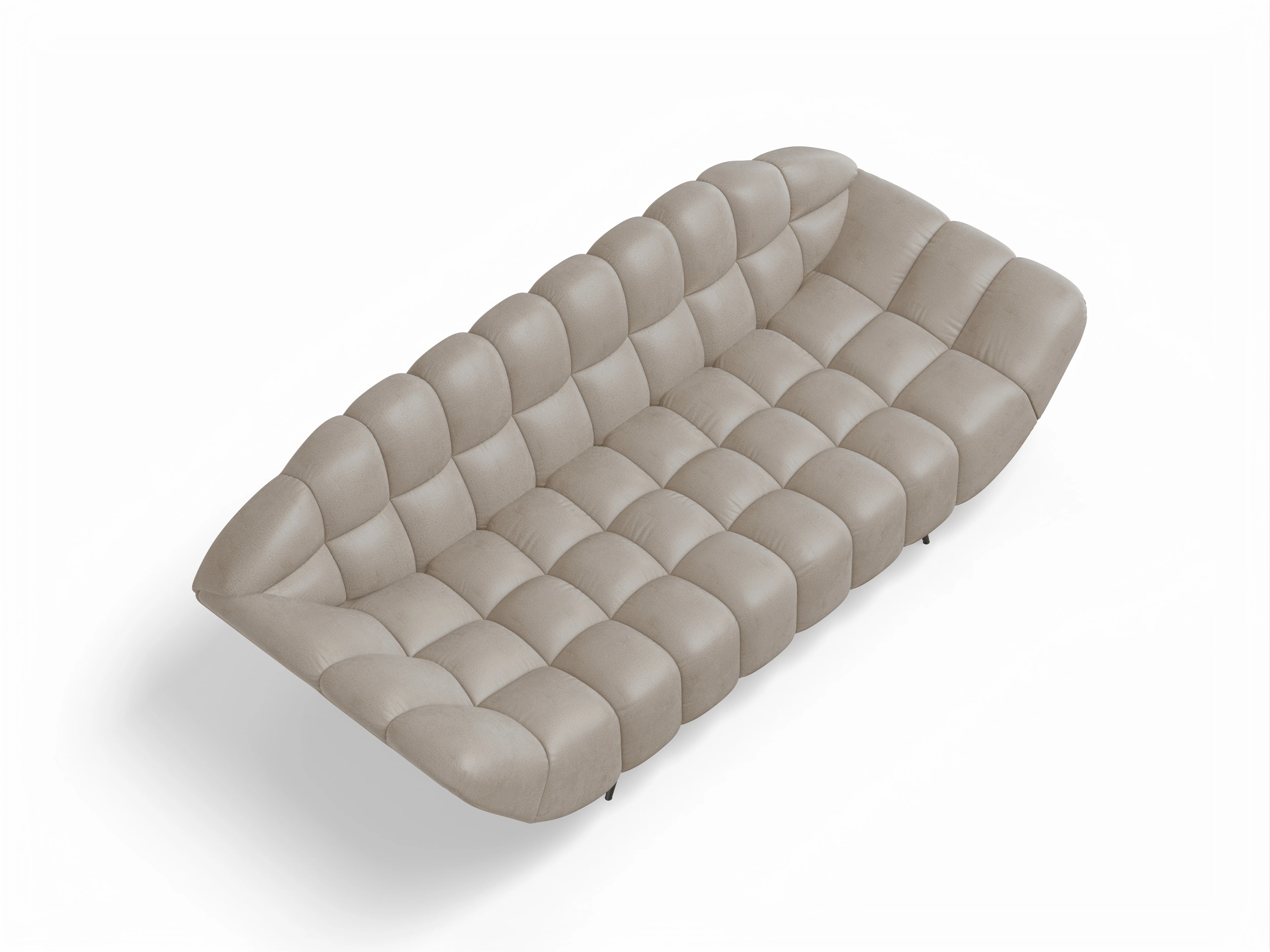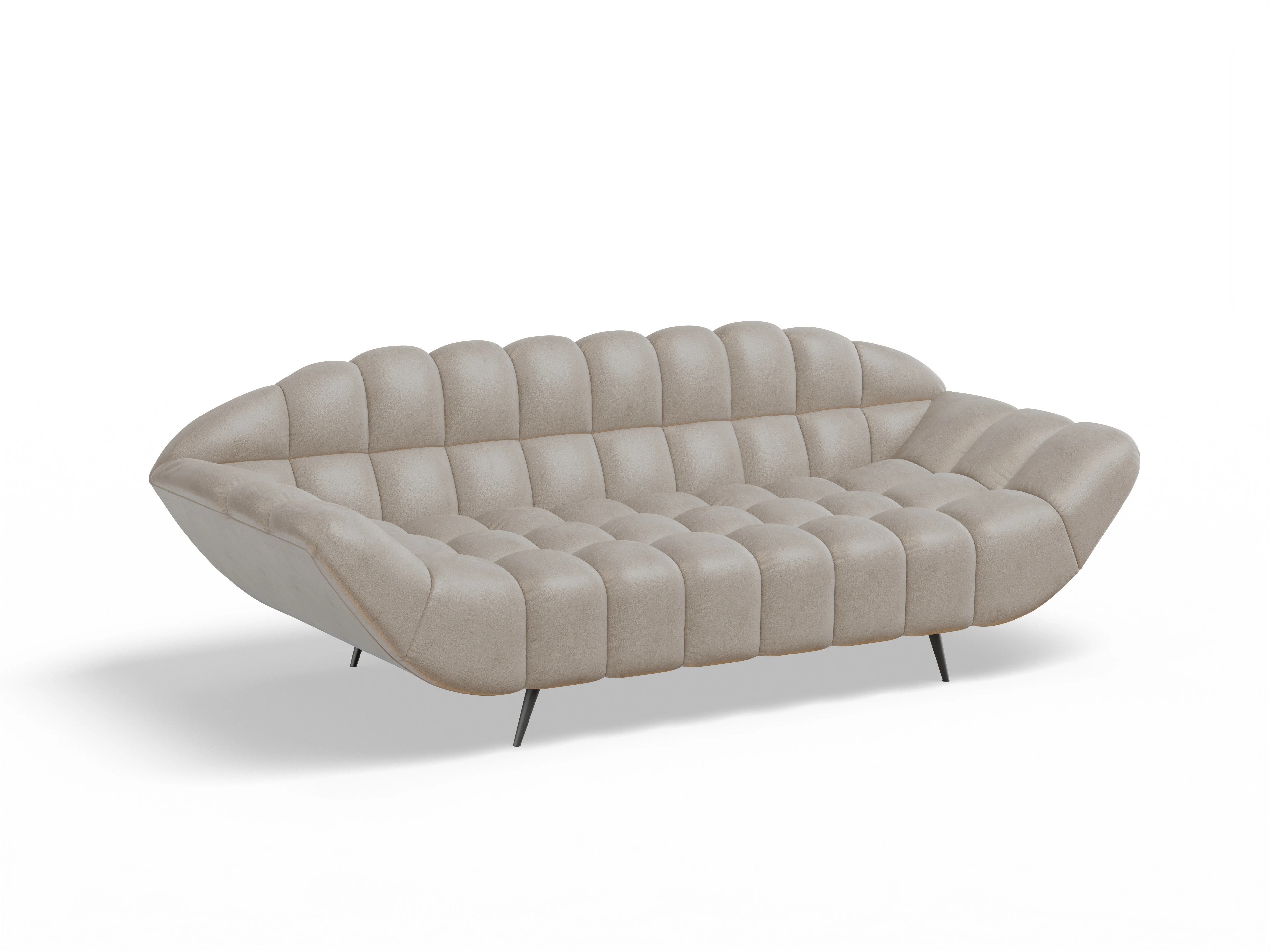 Das Sofa Girona bietet den perfekten Platz zum Ausruhen und Entspannen. Für alle, die auffällige Designs lieben und dennoch auf Gemütlichkeit Wert legen, ist dieses Sofa die ideale Wahl. Mit seinen großzügigen Abmessungen und der hochwertigen Polsterung wird das Sitzen zum echten Vergnügen. Die geschwungenen Linien und stilvolle Steppung verleihen dem Sofa einen dekorativen Charme. Schwarze Metallfüße sorgen für Bodenfreiheit und unterstreichen das moderne Design.