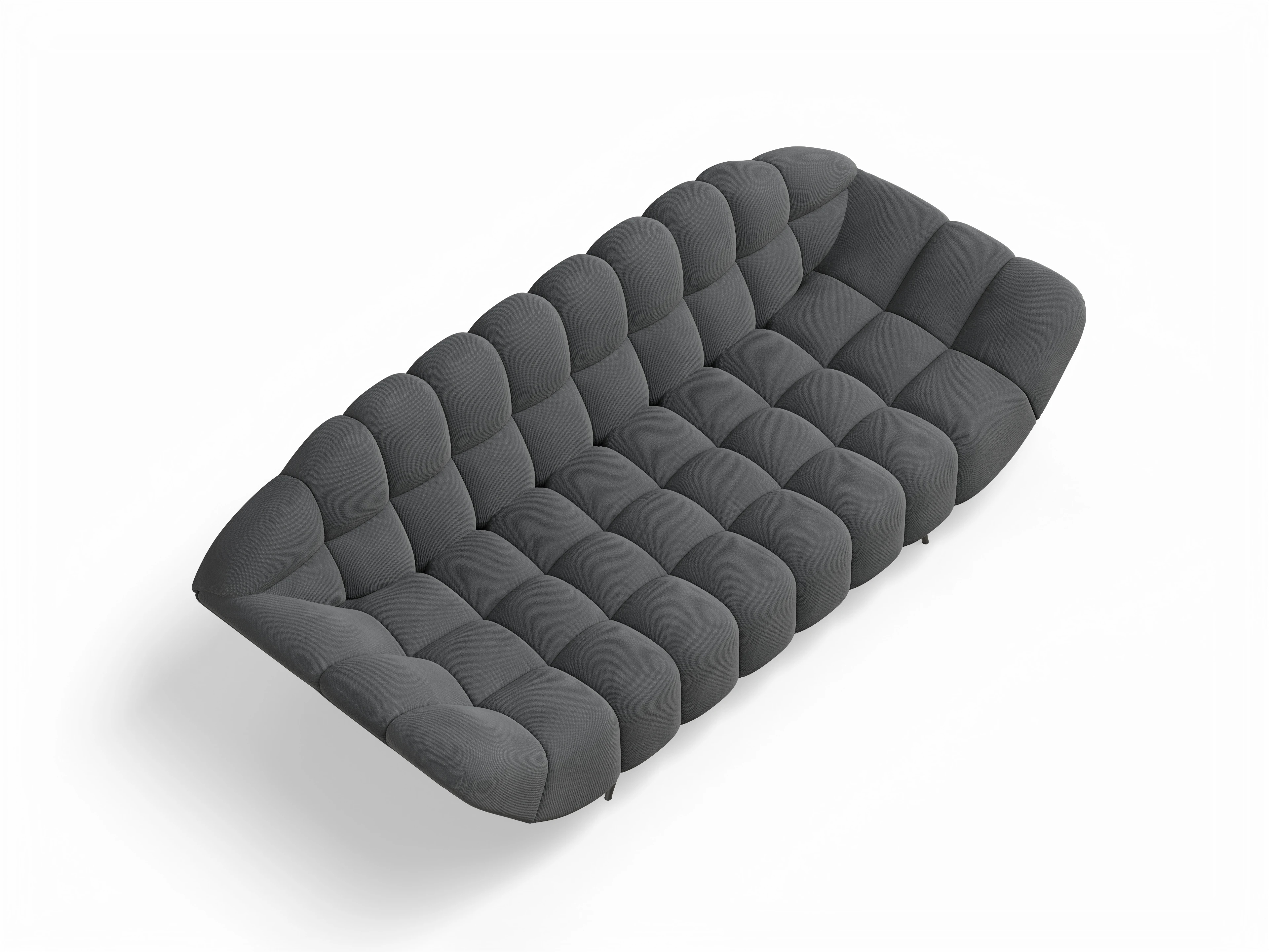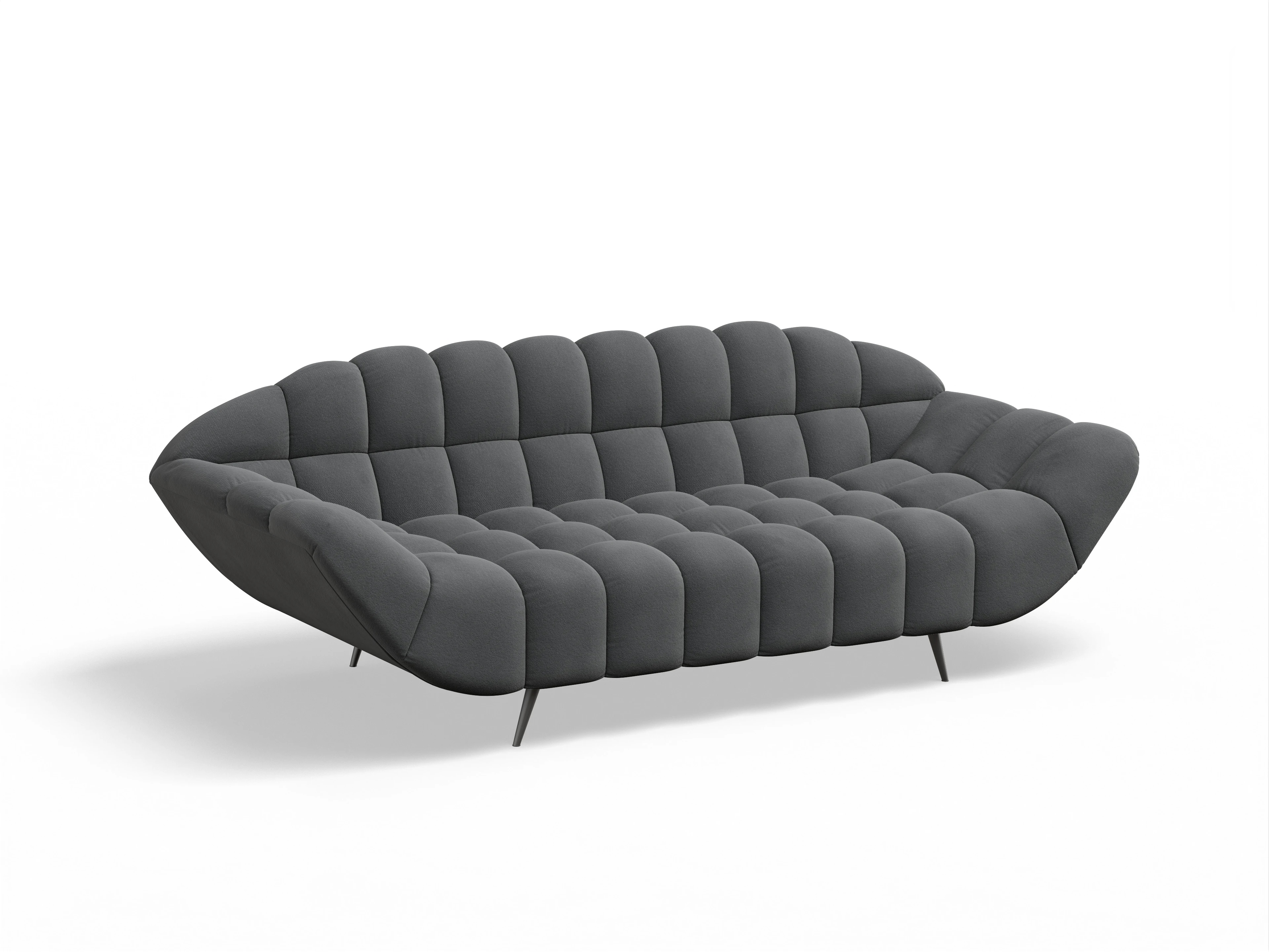 Das Sofa Girona bietet den perfekten Platz zum Ausruhen und Entspannen. Für alle, die auffällige Designs lieben und dennoch auf Gemütlichkeit Wert legen, ist dieses Sofa die ideale Wahl. Mit seinen großzügigen Abmessungen und der hochwertigen Polsterung wird das Sitzen zum echten Vergnügen. Die geschwungenen Linien und stilvolle Steppung verleihen dem Sofa einen dekorativen Charme. Schwarze Metallfüße sorgen für Bodenfreiheit und unterstreichen das moderne Design.