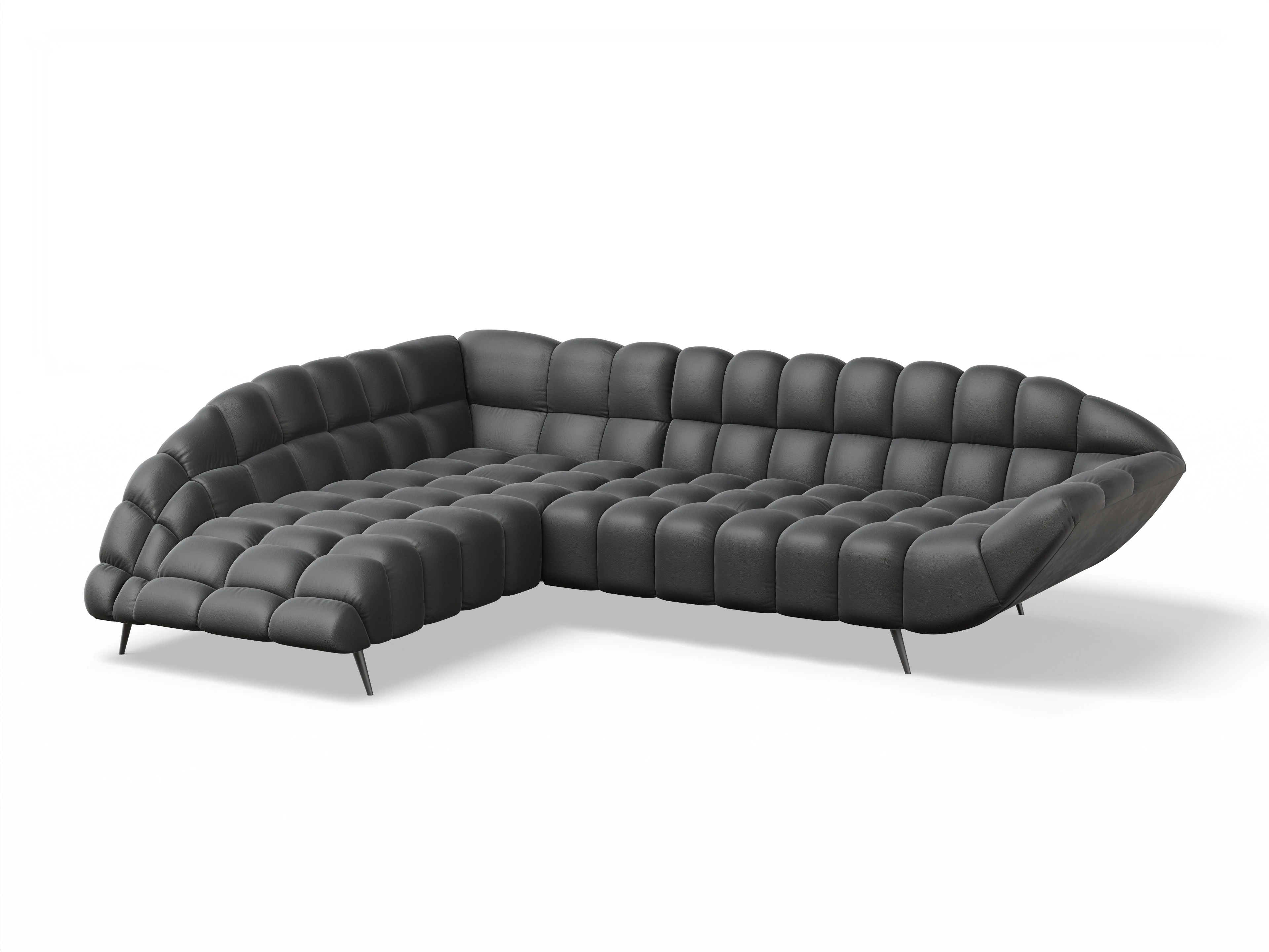 Das Sofa Girona bietet den perfekten Platz zum Ausruhen und Entspannen. Für alle, die auffällige Designs lieben und dennoch auf Gemütlichkeit Wert legen, ist dieses Sofa die ideale Wahl. Mit seinen großzügigen Abmessungen und der hochwertigen Polsterung wird das Sitzen zum echten Vergnügen. Die geschwungenen Linien und stilvolle Steppung verleihen dem Sofa einen dekorativen Charme. Schwarze Metallfüße sorgen für Bodenfreiheit und unterstreichen das moderne Design.