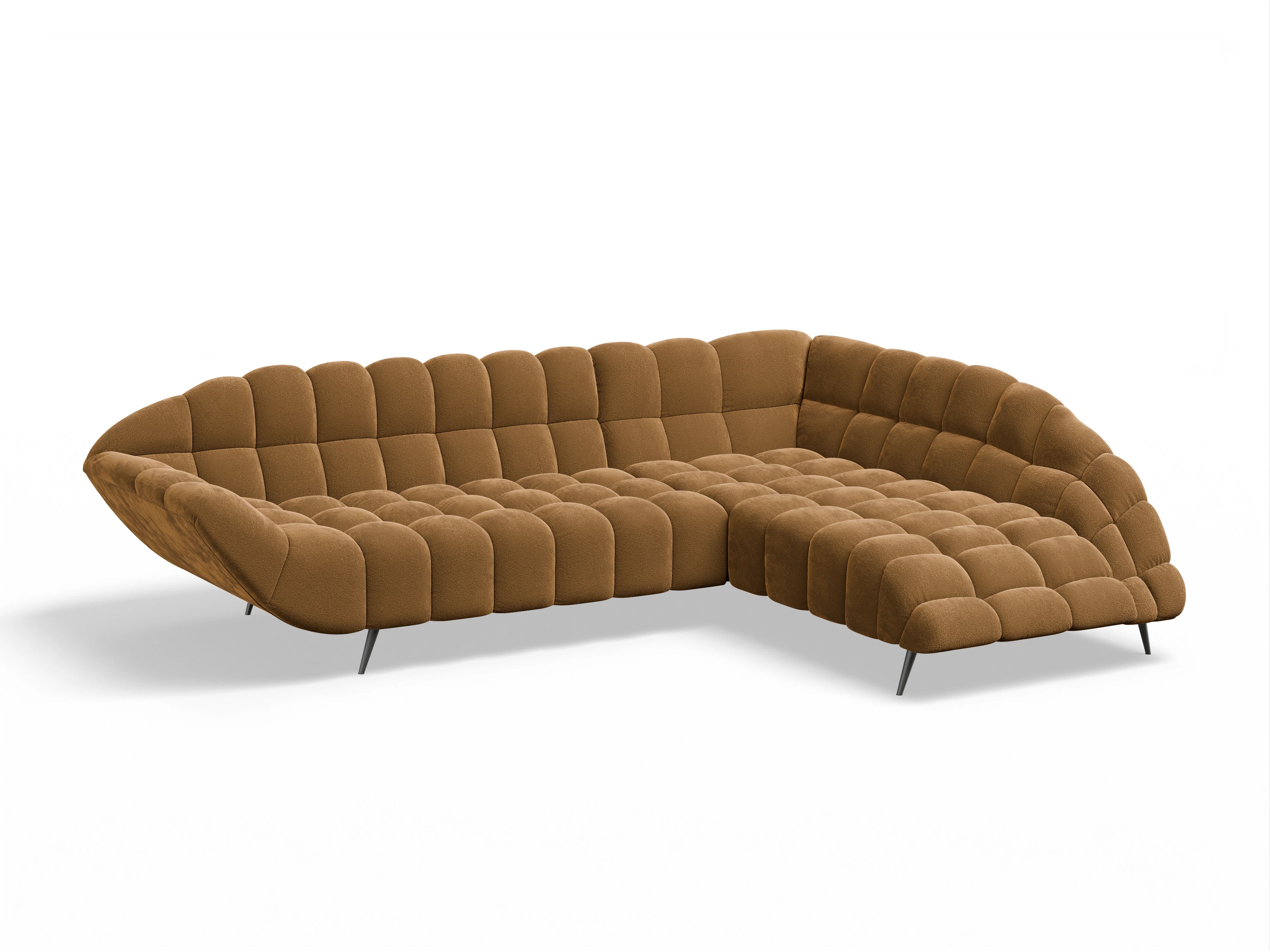 Das Sofa Girona bietet den perfekten Platz zum Ausruhen und Entspannen. Für alle, die auffällige Designs lieben und dennoch auf Gemütlichkeit Wert legen, ist dieses Sofa die ideale Wahl. Mit seinen großzügigen Abmessungen und der hochwertigen Polsterung wird das Sitzen zum echten Vergnügen. Die geschwungenen Linien und stilvolle Steppung verleihen dem Sofa einen dekorativen Charme. Schwarze Metallfüße sorgen für Bodenfreiheit und unterstreichen das moderne Design.