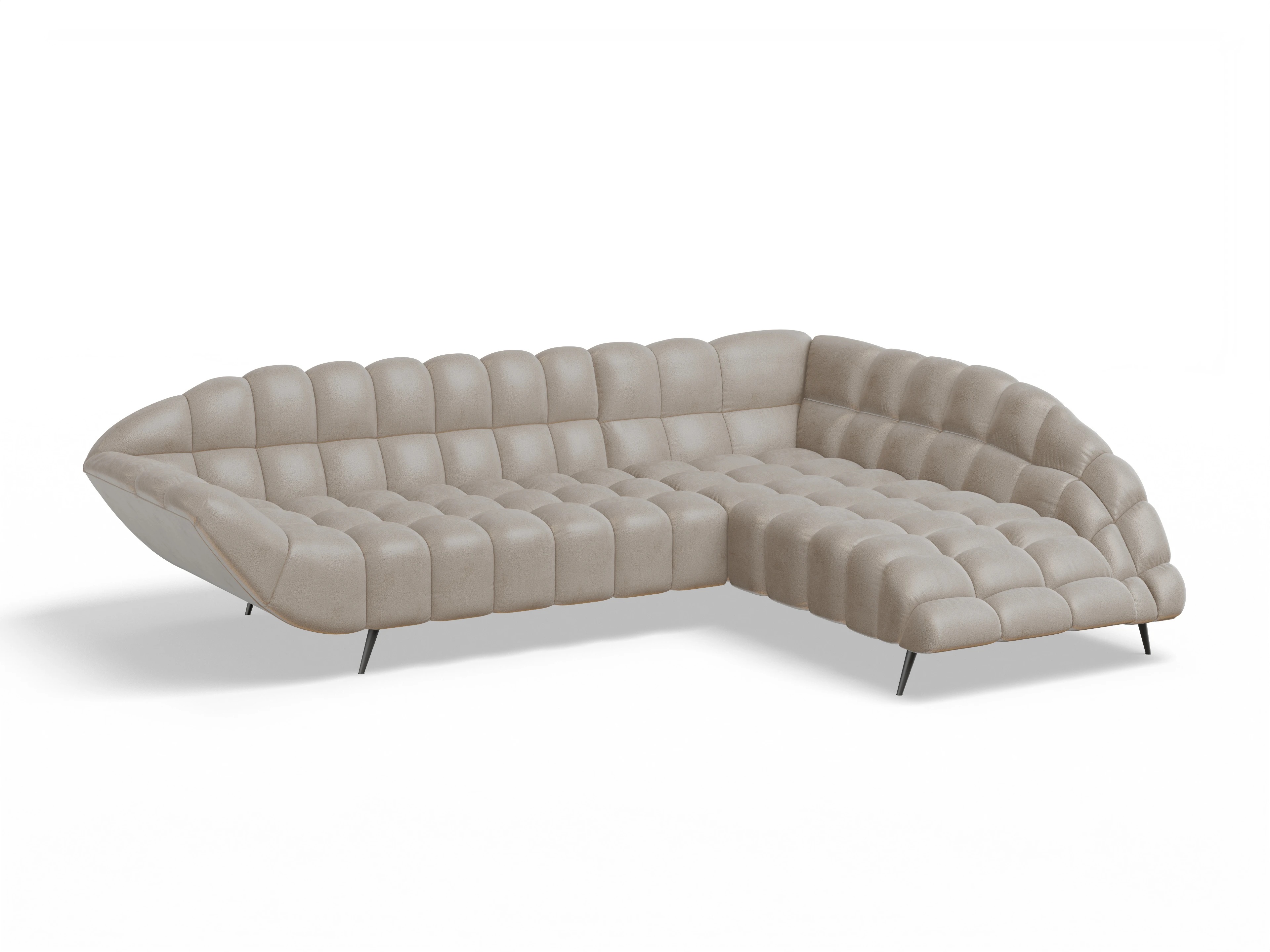 Das Sofa Girona bietet den perfekten Platz zum Ausruhen und Entspannen. Für alle, die auffällige Designs lieben und dennoch auf Gemütlichkeit Wert legen, ist dieses Sofa die ideale Wahl. Mit seinen großzügigen Abmessungen und der hochwertigen Polsterung wird das Sitzen zum echten Vergnügen. Die geschwungenen Linien und stilvolle Steppung verleihen dem Sofa einen dekorativen Charme. Schwarze Metallfüße sorgen für Bodenfreiheit und unterstreichen das moderne Design.