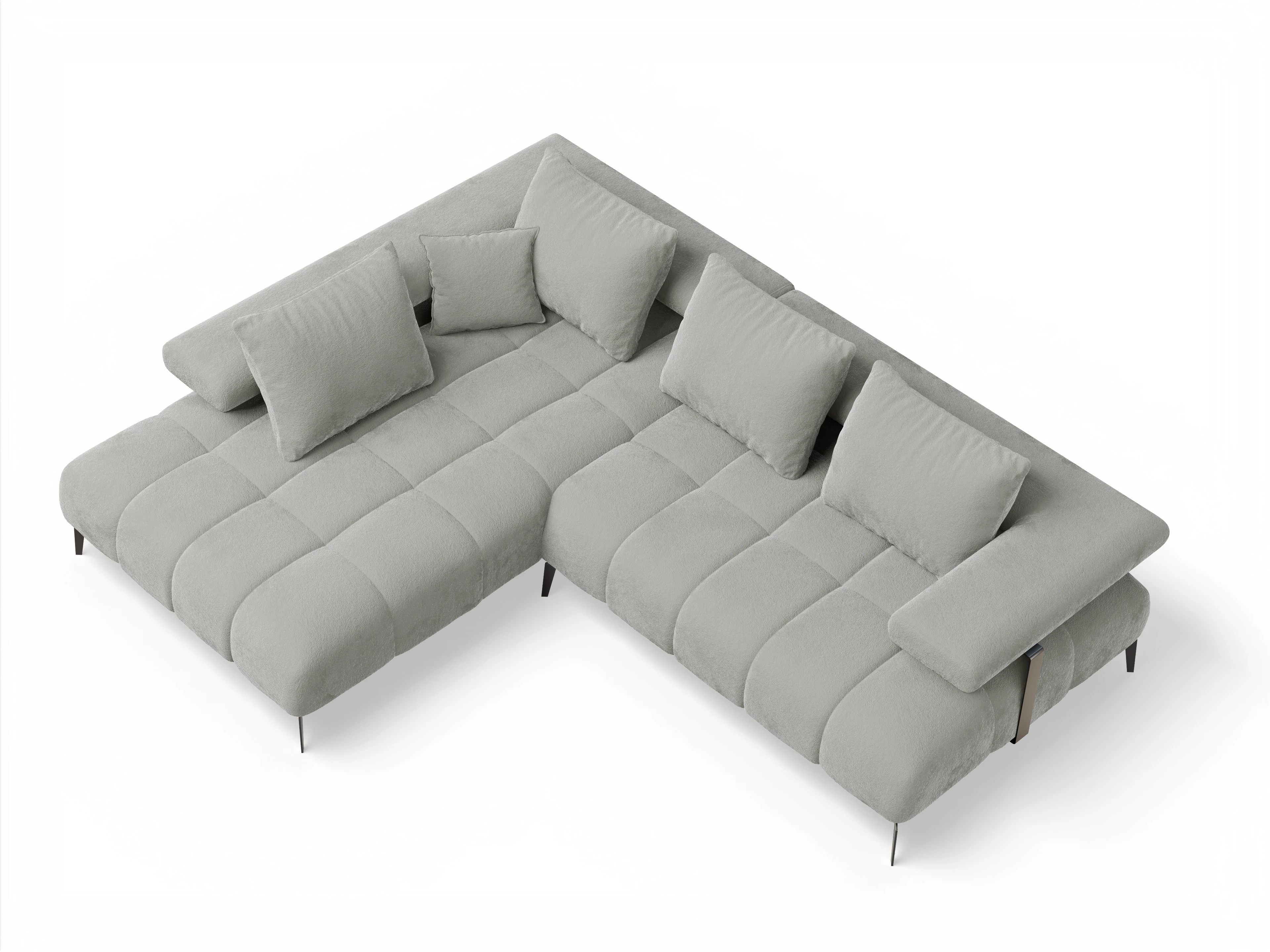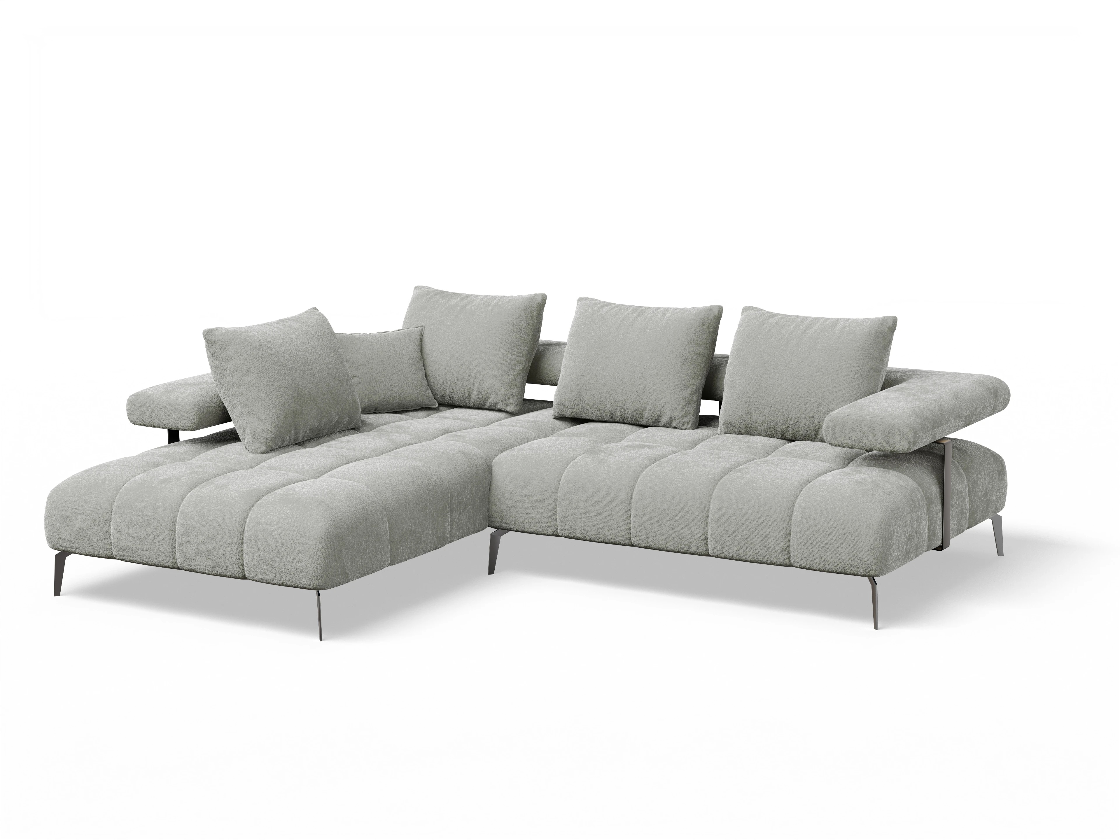 Das Ecksofa besteht aus einer Ottomane links und einem 2-Sitzer mit Armlehne rechts inkl. motorischer Sitztiefenverstellung. Das Ecksofa wird mit 3x Rückenkissen geliefert.