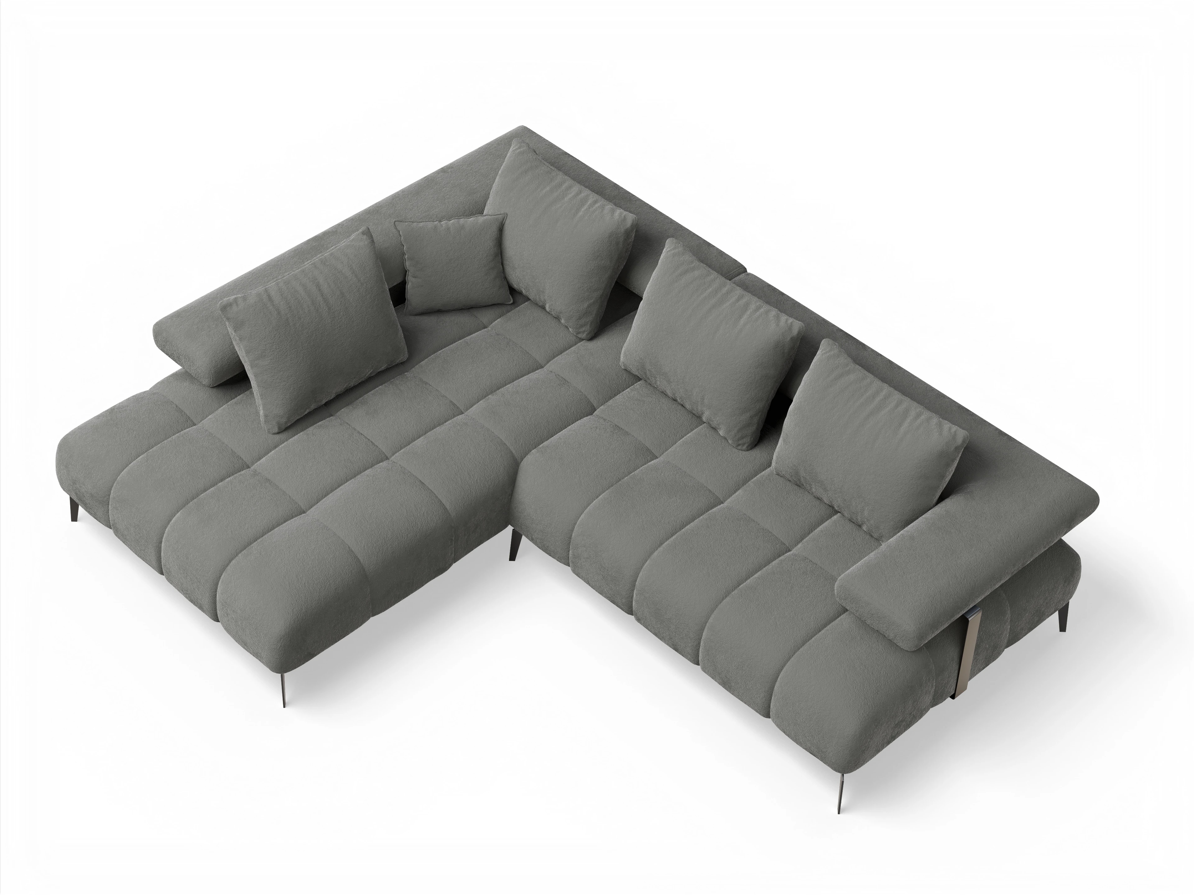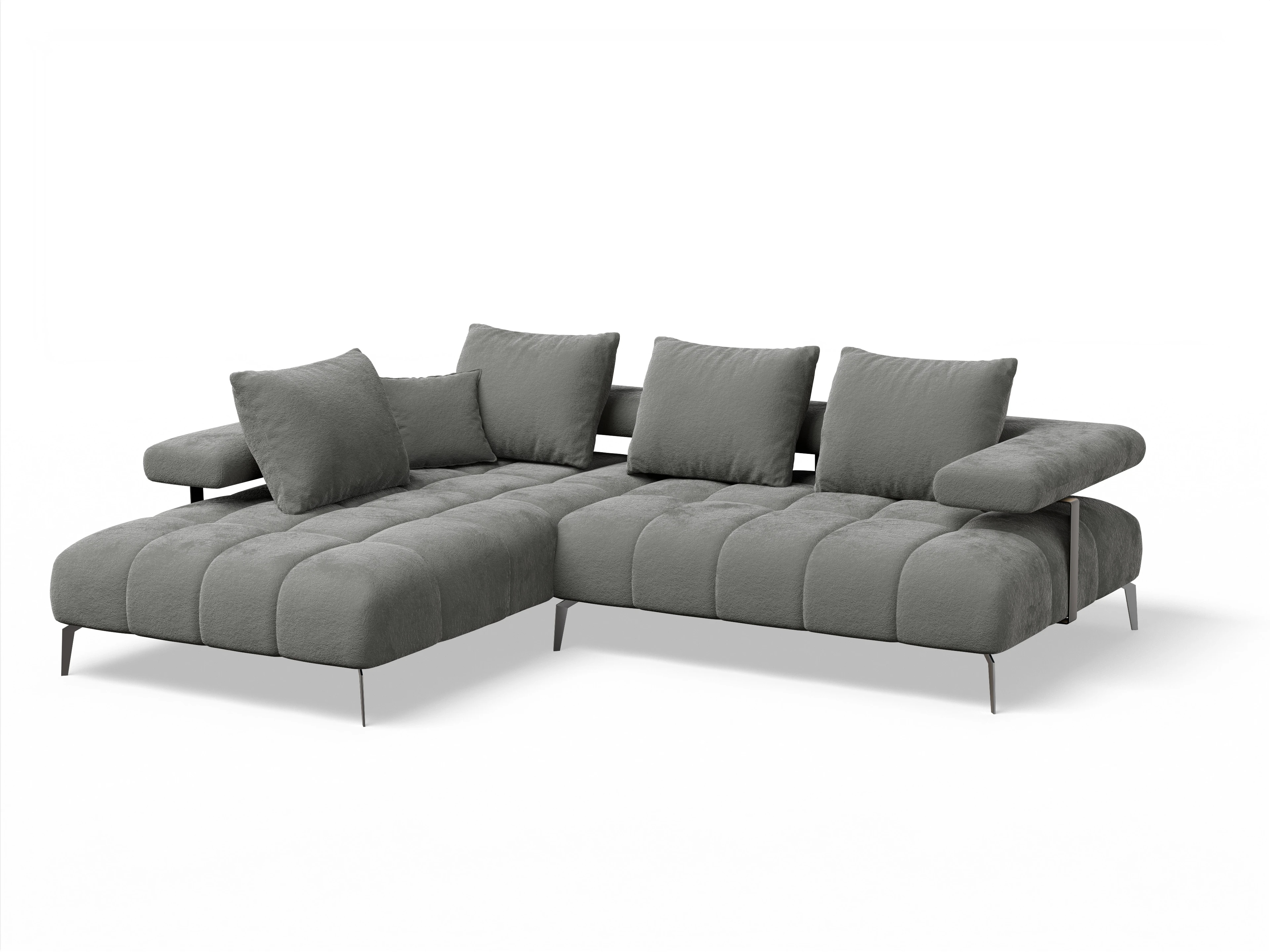 Das Ecksofa besteht aus einer Ottomane links und einem 2-Sitzer mit Armlehne rechts inkl. motorischer Sitztiefenverstellung. Das Ecksofa wird mit 3x Rückenkissen geliefert.