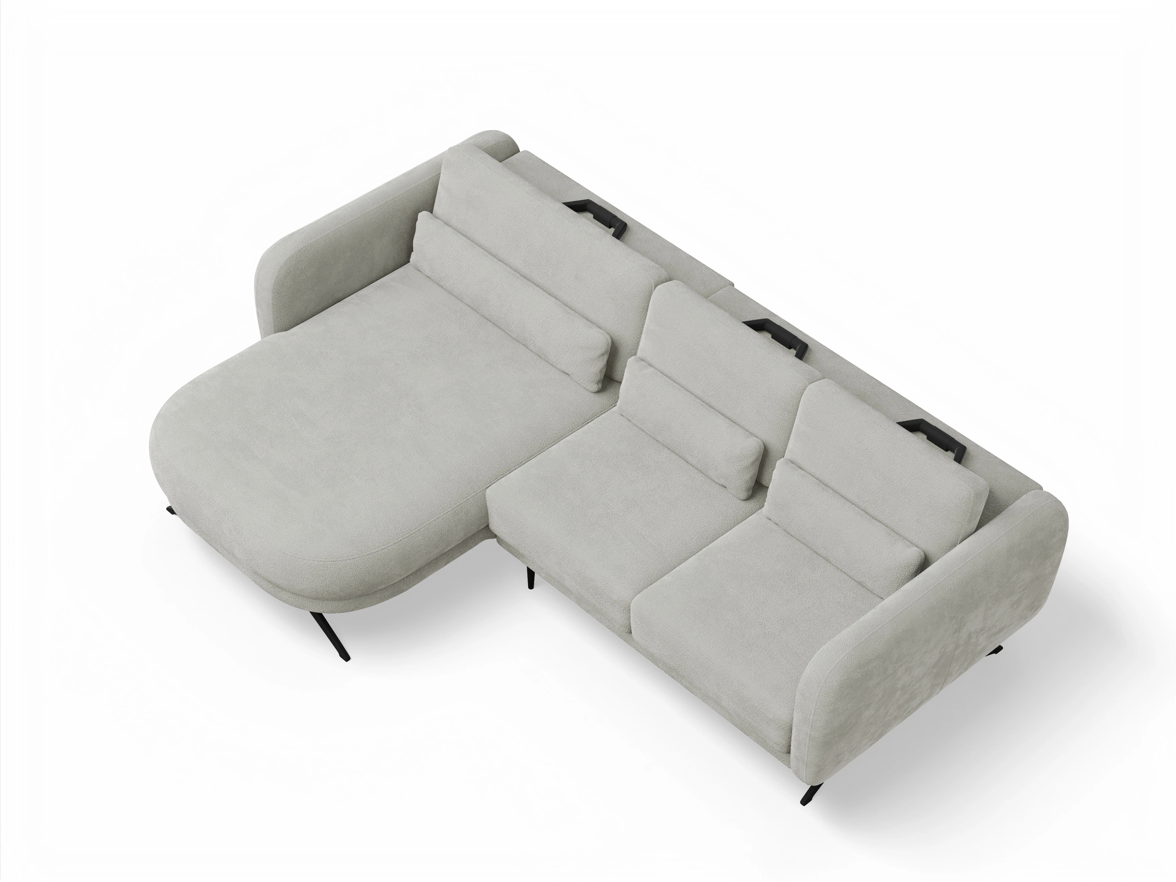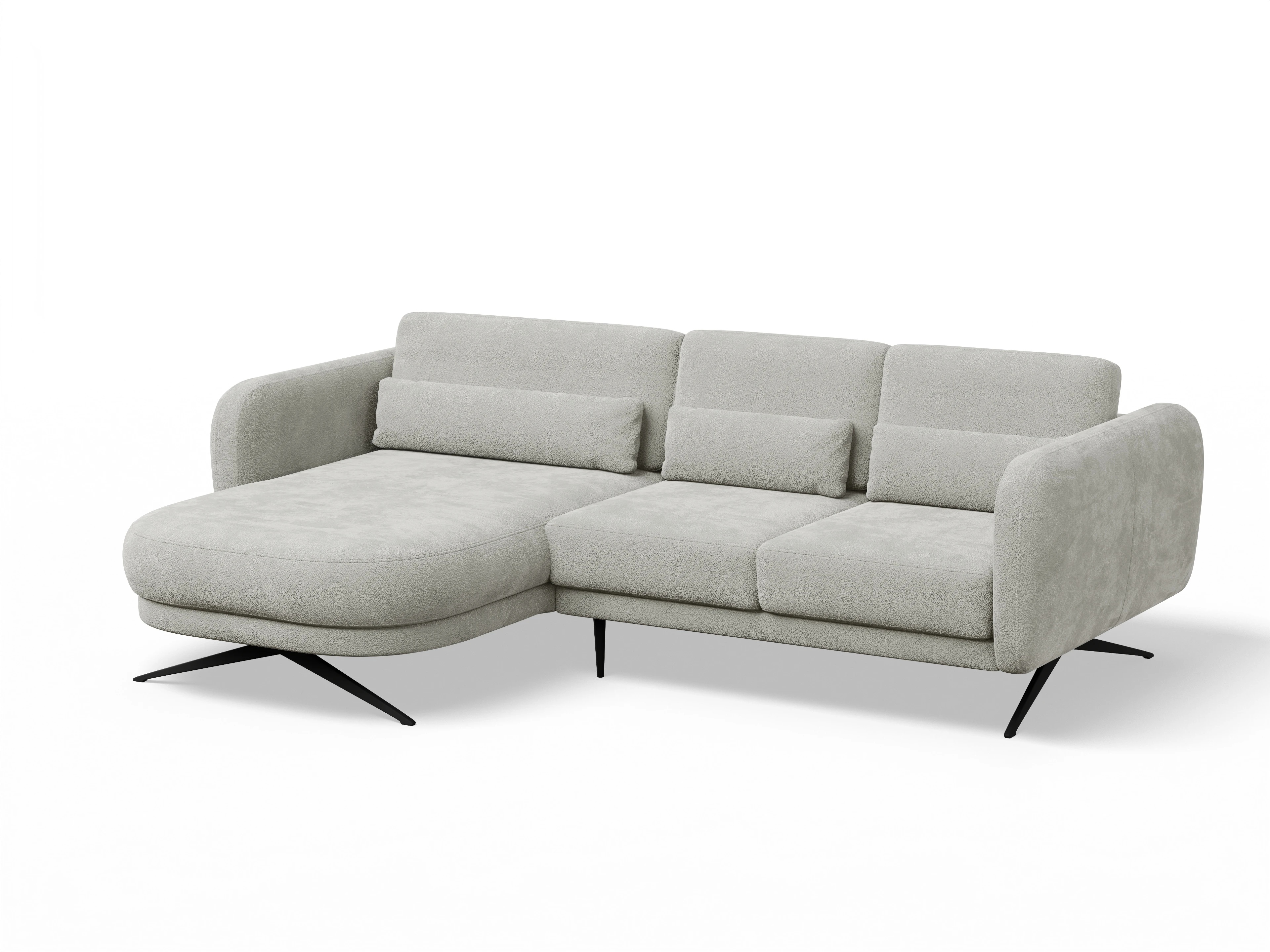 Das Ecksofa besteht aus einer Ottomane mit Armlehne links und einem 2-Sitzer mit Armlehne rechts inkl. motorischer Sitztiefenverstellung. Das Ecksofa wird mit 3 hochstellbaren Rückenpolstern und 3x Nierenkissen geliefert.