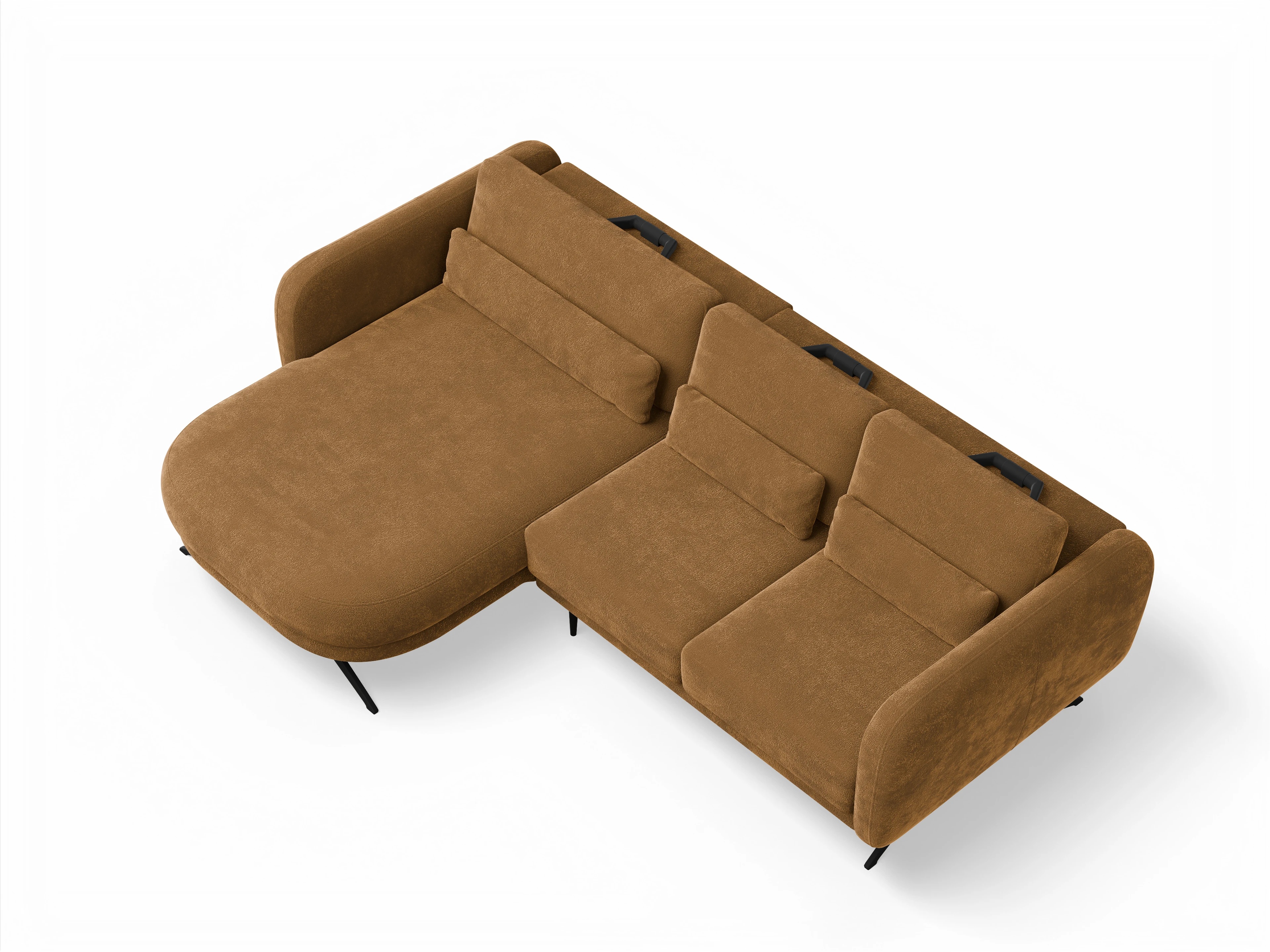 Das Ecksofa besteht aus einer Ottomane mit Armlehne links und einem 2-Sitzer mit Armlehne rechts inkl. motorischer Sitztiefenverstellung. Das Ecksofa wird mit 3 hochstellbaren Rückenpolstern und 3x Nierenkissen geliefert.