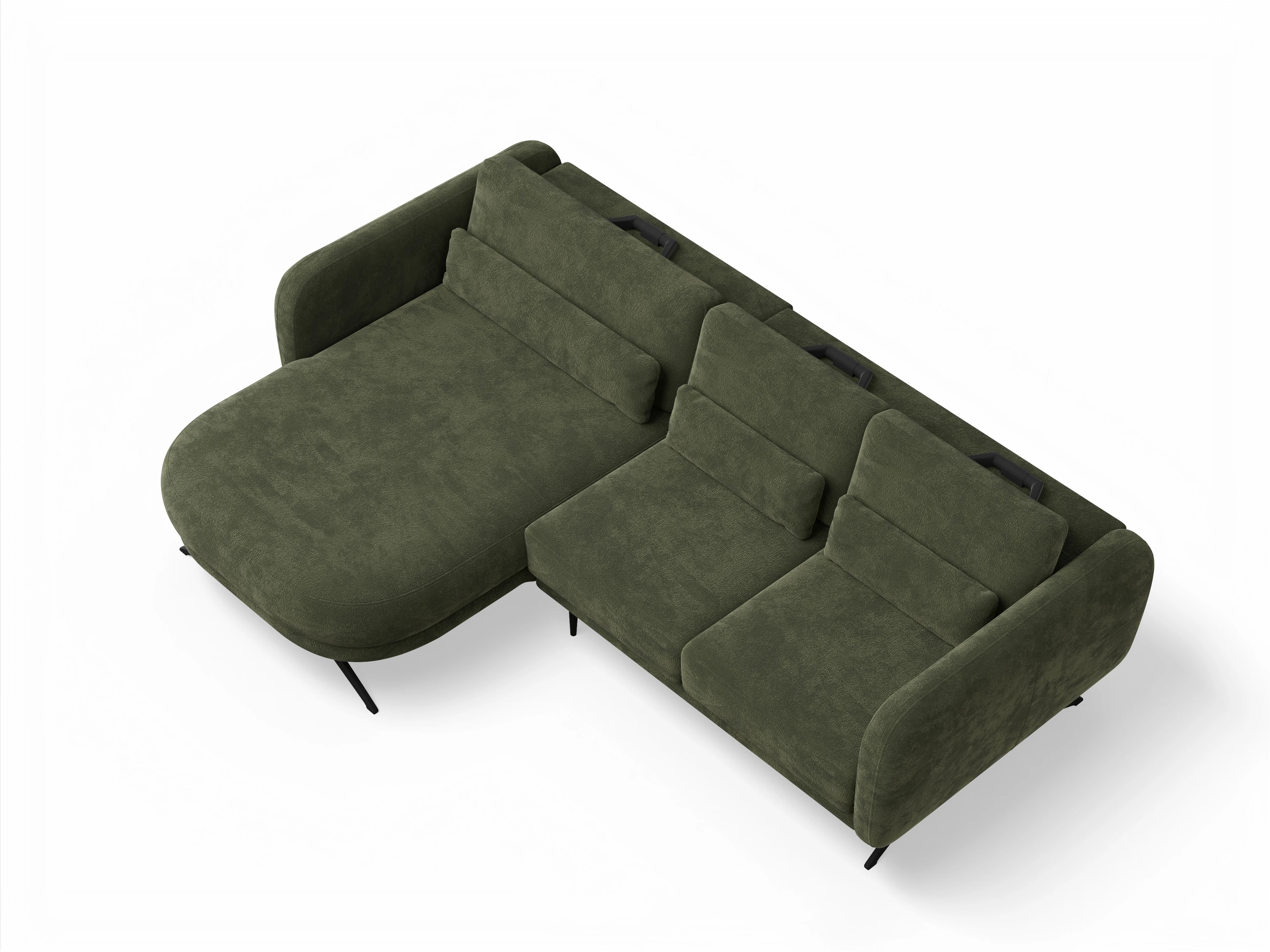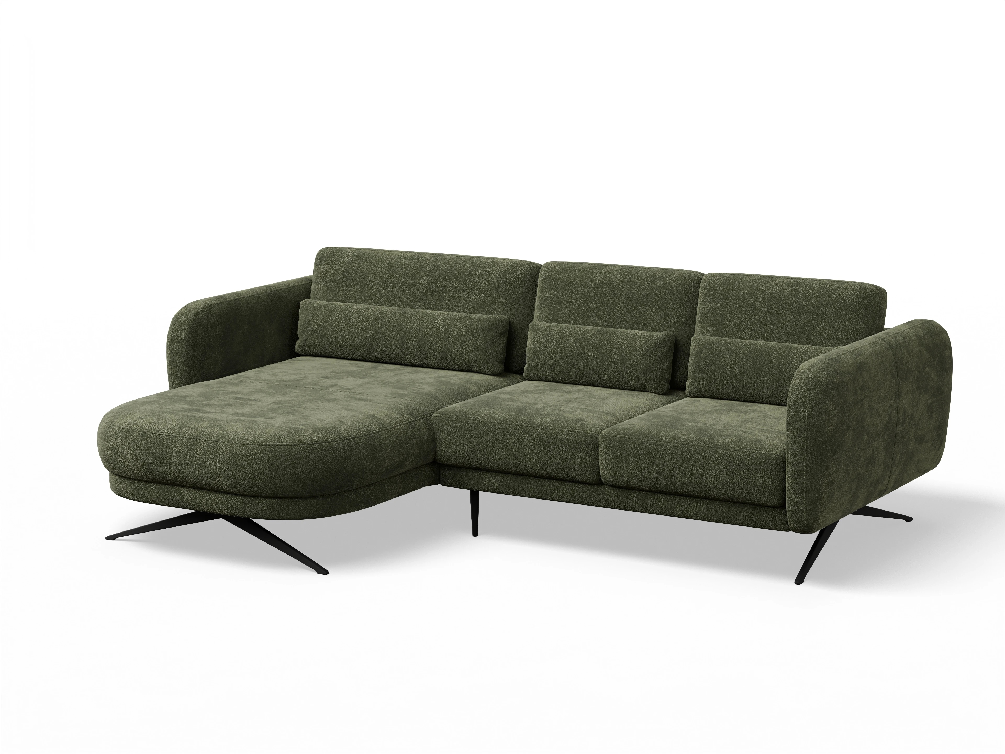 Das Ecksofa besteht aus einer Ottomane mit Armlehne links und einem 2-Sitzer mit Armlehne rechts inkl. motorischer Sitztiefenverstellung. Das Ecksofa wird mit 3 hochstellbaren Rückenpolstern und 3x Nierenkissen geliefert.