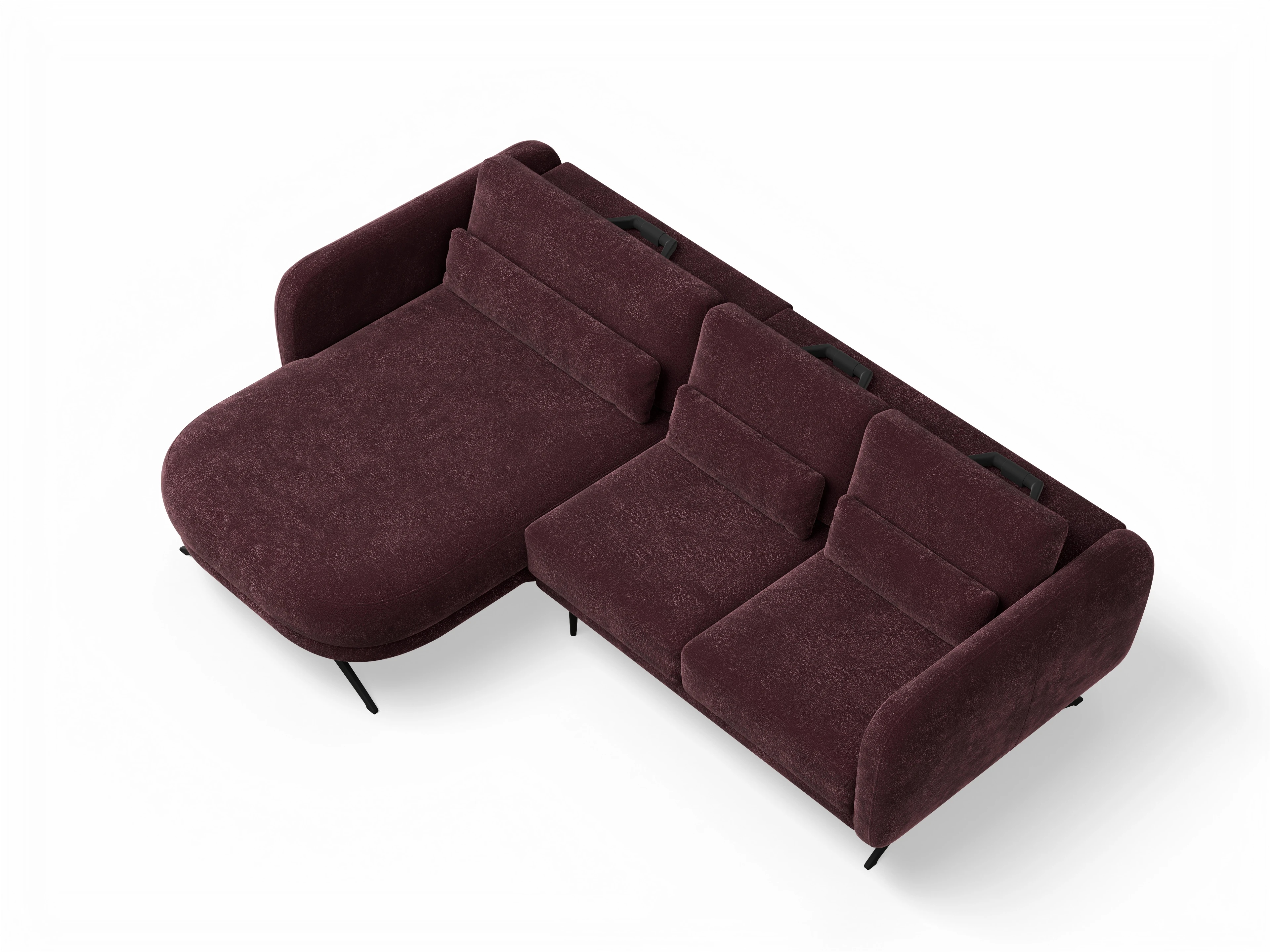 Das Ecksofa besteht aus einer Ottomane mit Armlehne links und einem 2-Sitzer mit Armlehne rechts inkl. motorischer Sitztiefenverstellung. Das Ecksofa wird mit 3 hochstellbaren Rückenpolstern und 3x Nierenkissen geliefert.