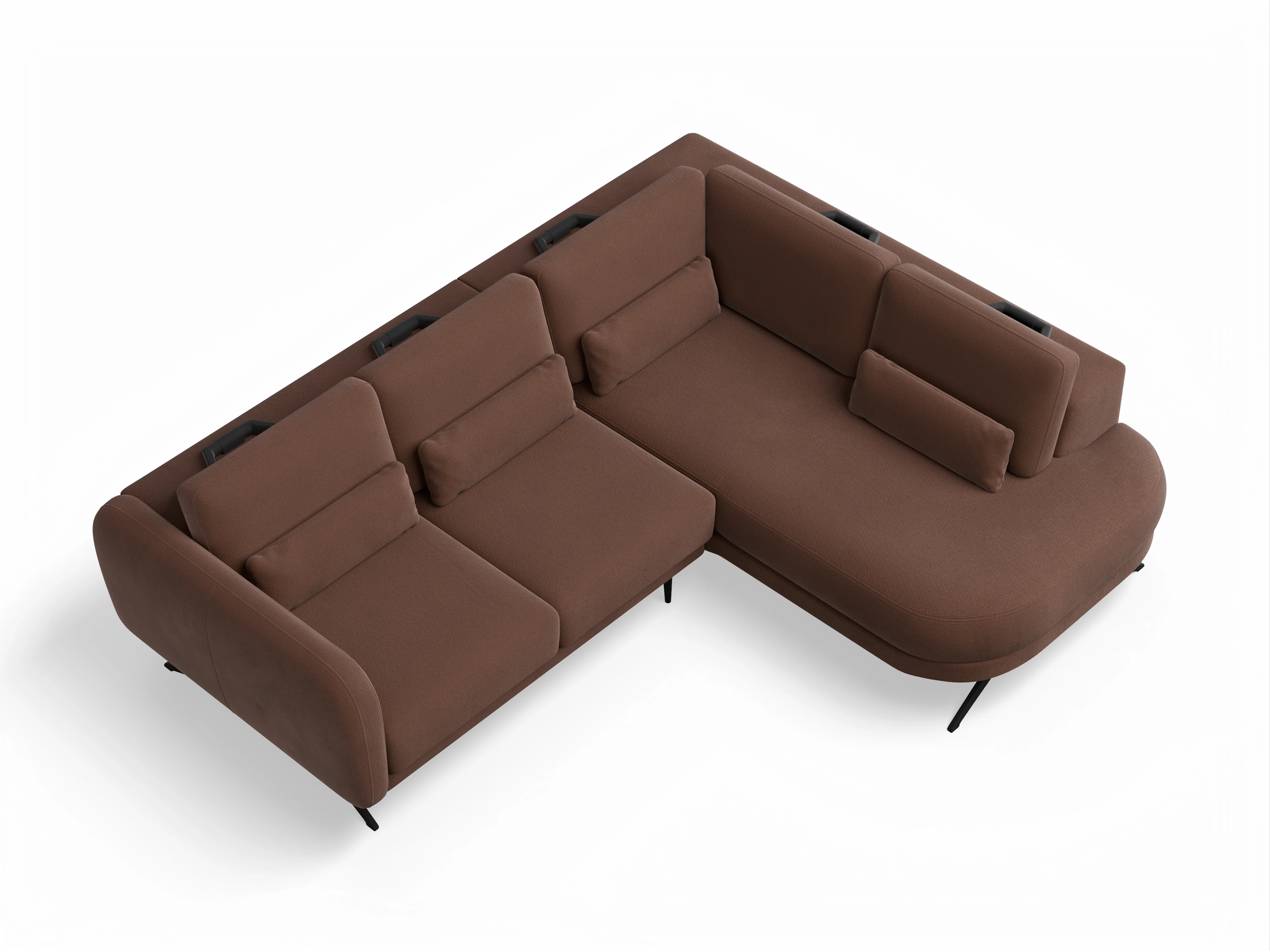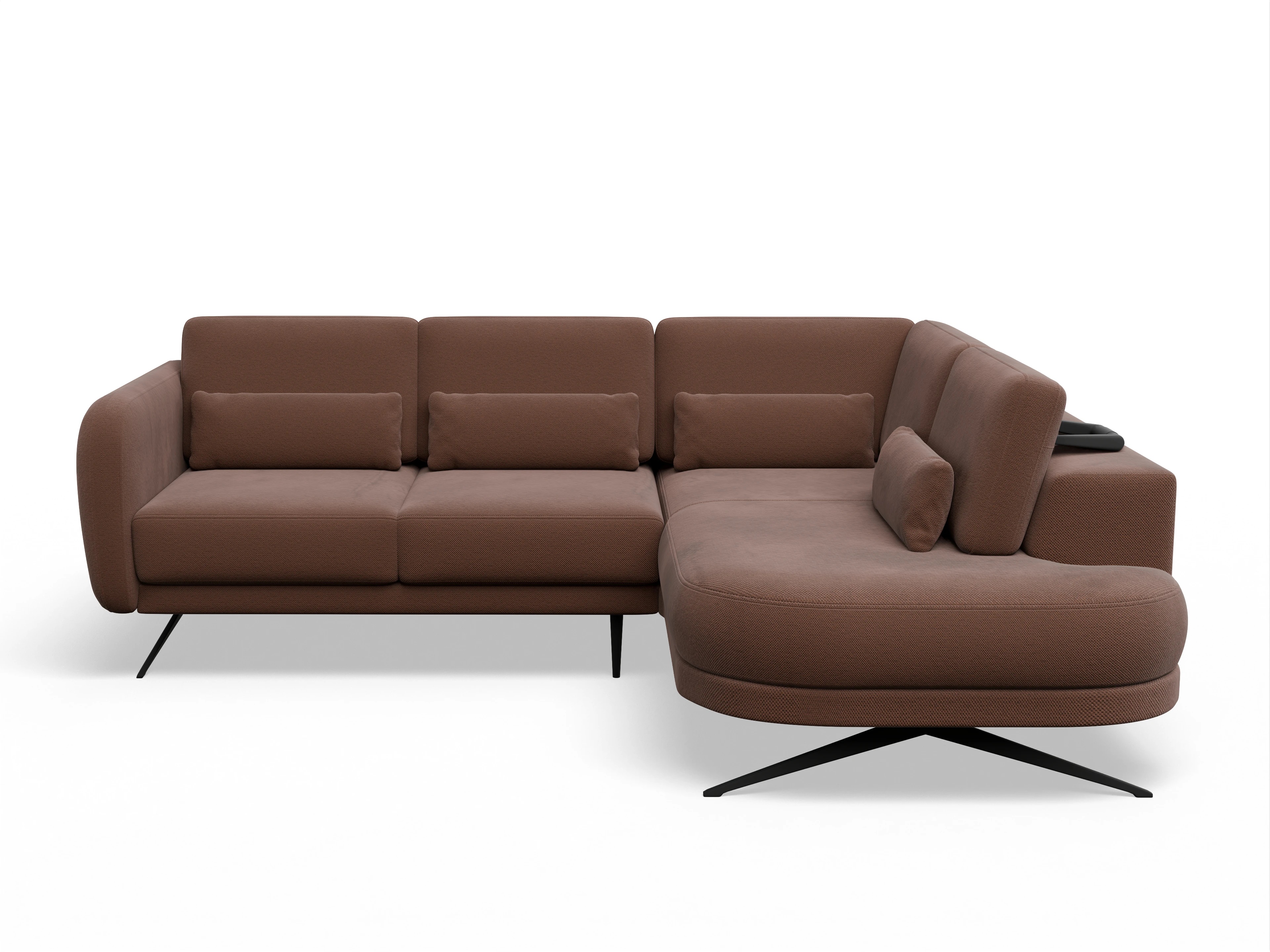 Das Ecksofa besteht aus einem 2-Sitzer mit Armlehne links inkl. motorischer Sitztiefenverstellung und einer Umbauecke rechts. Das Ecksofa wird mit 5 hochstellbaren Rückenpolstern und 4x Nierenkissen geliefert.
