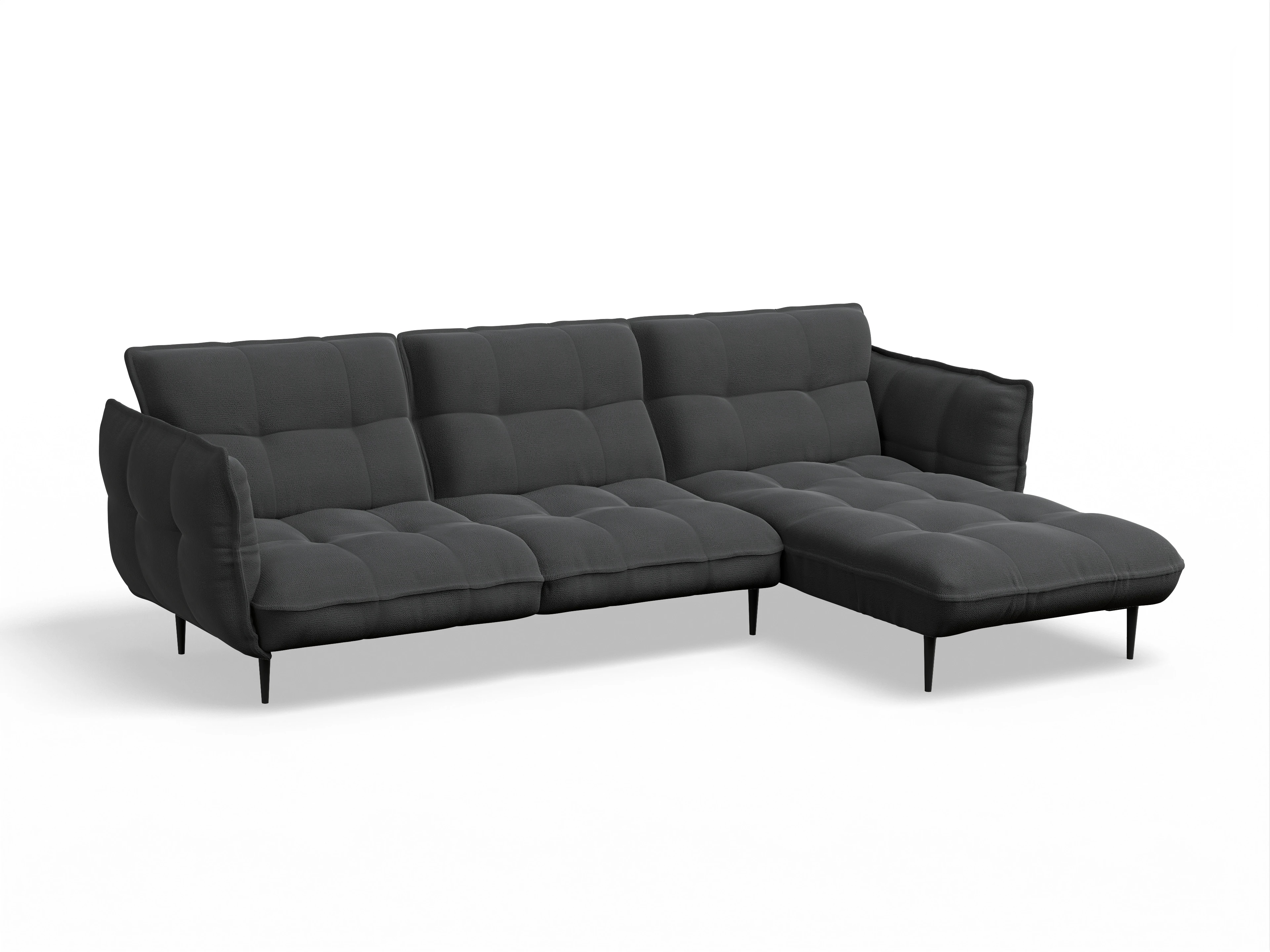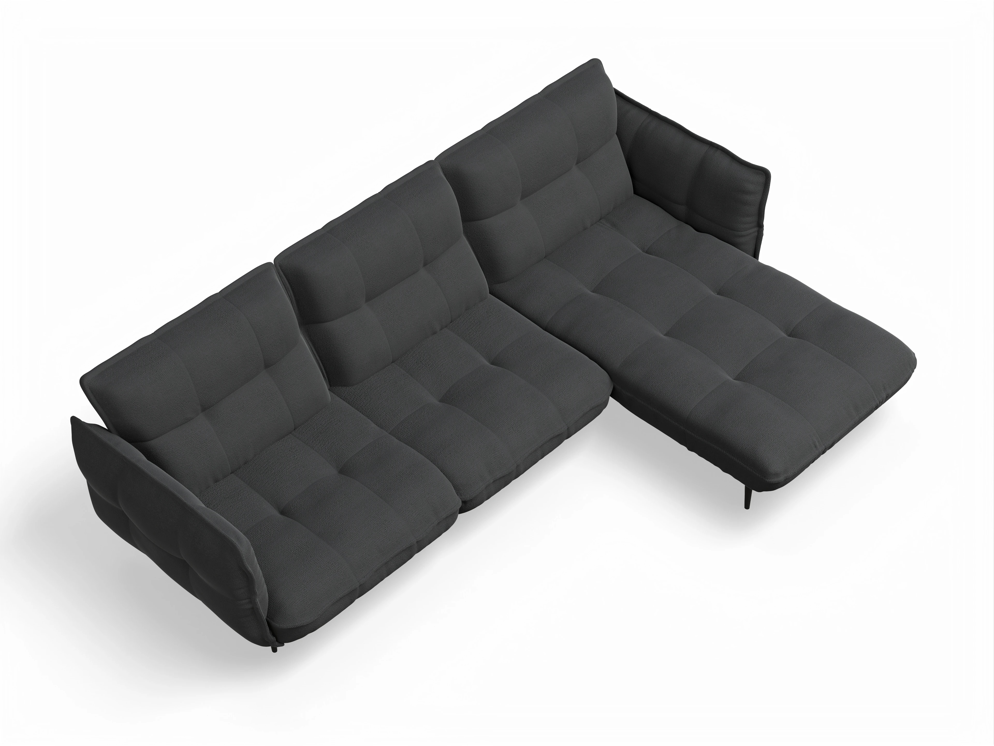 Das Ecksofa besteht aus einem 2,5-Sitzer mit Armlehne links und einem Longchair mit Armlehne rechts.