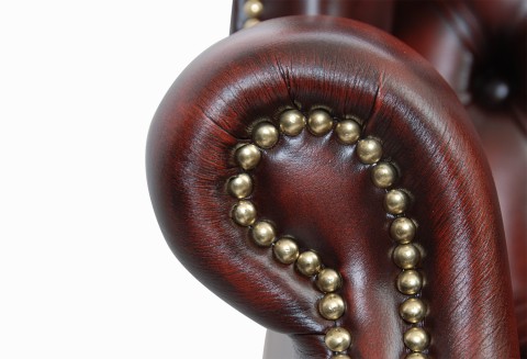 Die Rückenlehne ist mit strapazierfähigen Nosag-Federn ausgestattet, die in Kombination mit hochwertigem Schaumstoff für optimalen Halt und langanhaltenden Sitzkomfort sorgen. Die handgefertigte Kapitonierung verleiht dem Möbelstück seine charakteristische Chesterfield-Optik und unterstreicht die aufwendige Handwerkskunst.