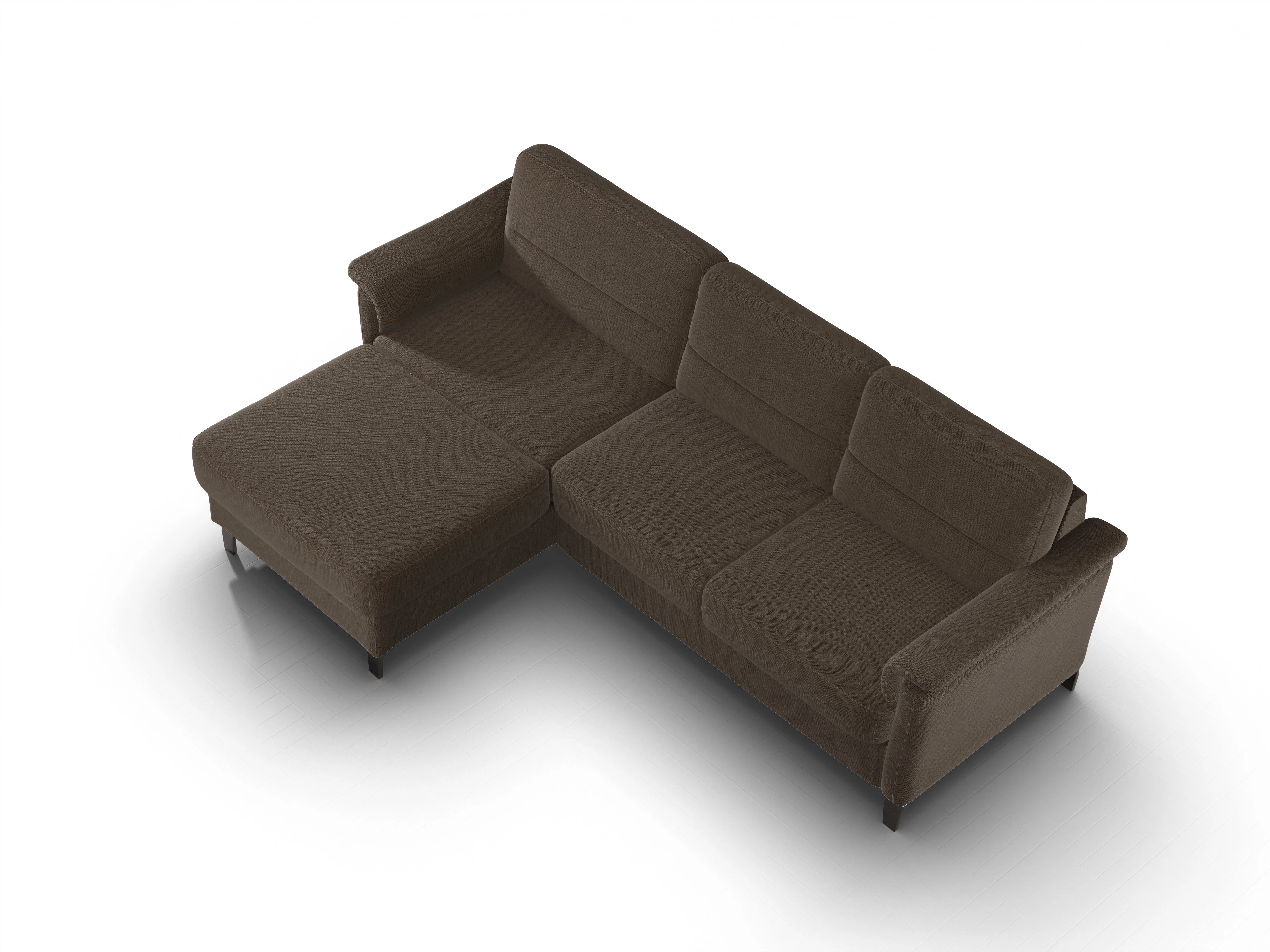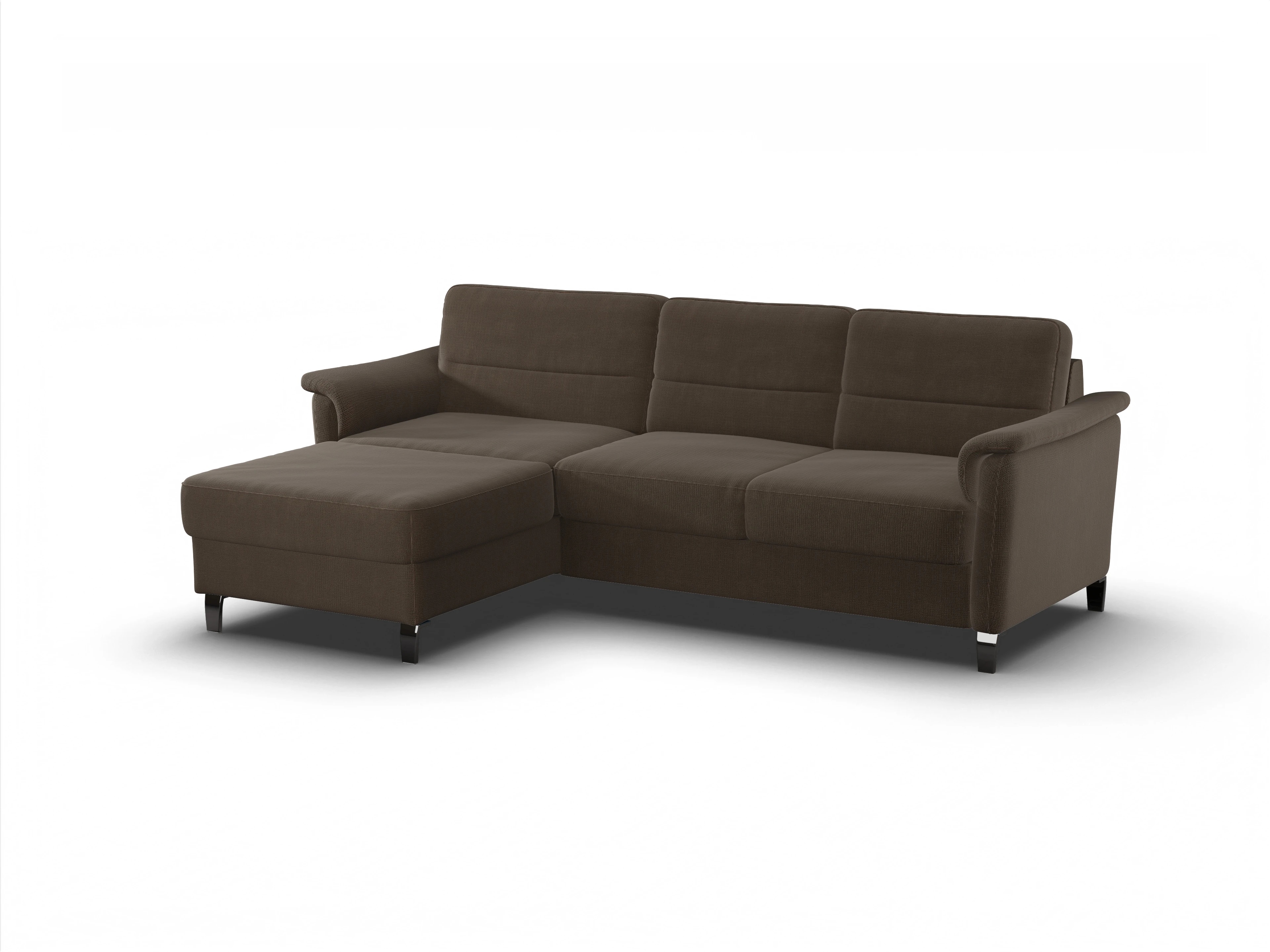 Das Pagall Ecksofa besteht aus einem Longchair links sowie einem 2,5-Sitzer mit einer Armlehne rechts.