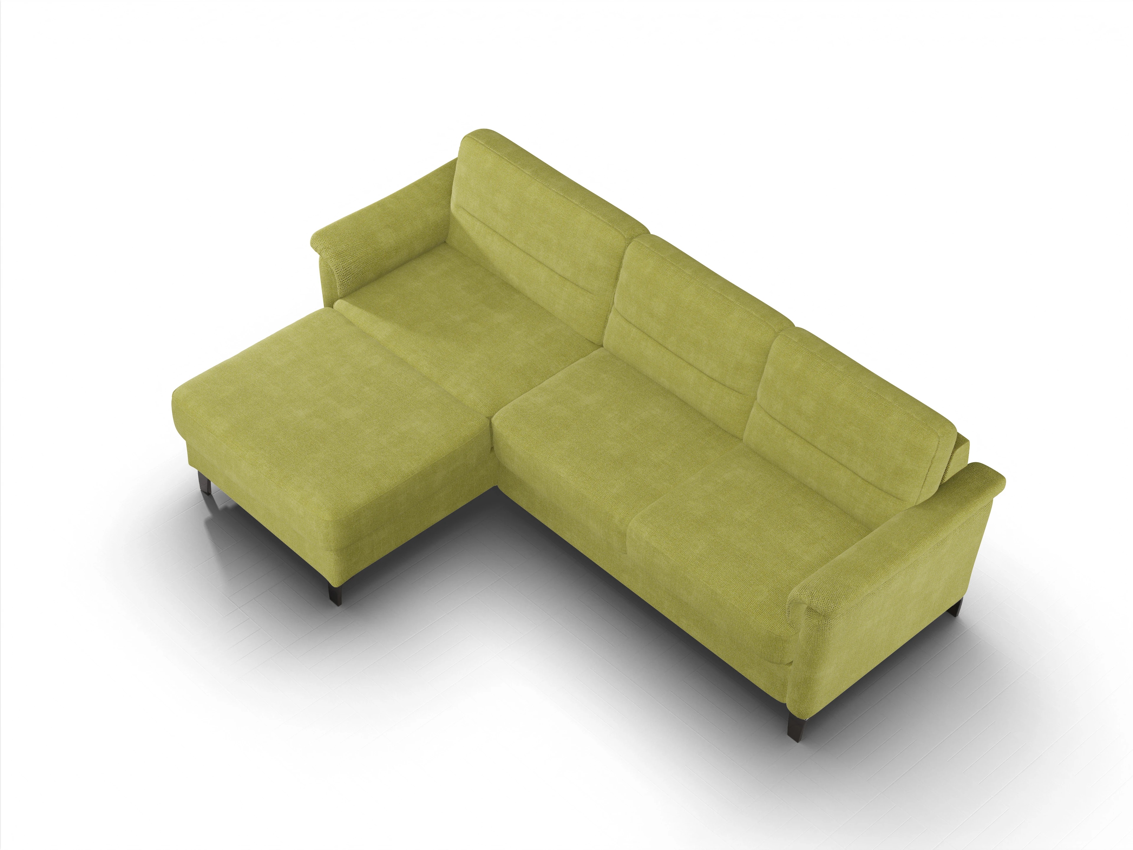 Das Pagall Ecksofa besteht aus einem Longchair links sowie einem 2,5-Sitzer mit einer Armlehne rechts.