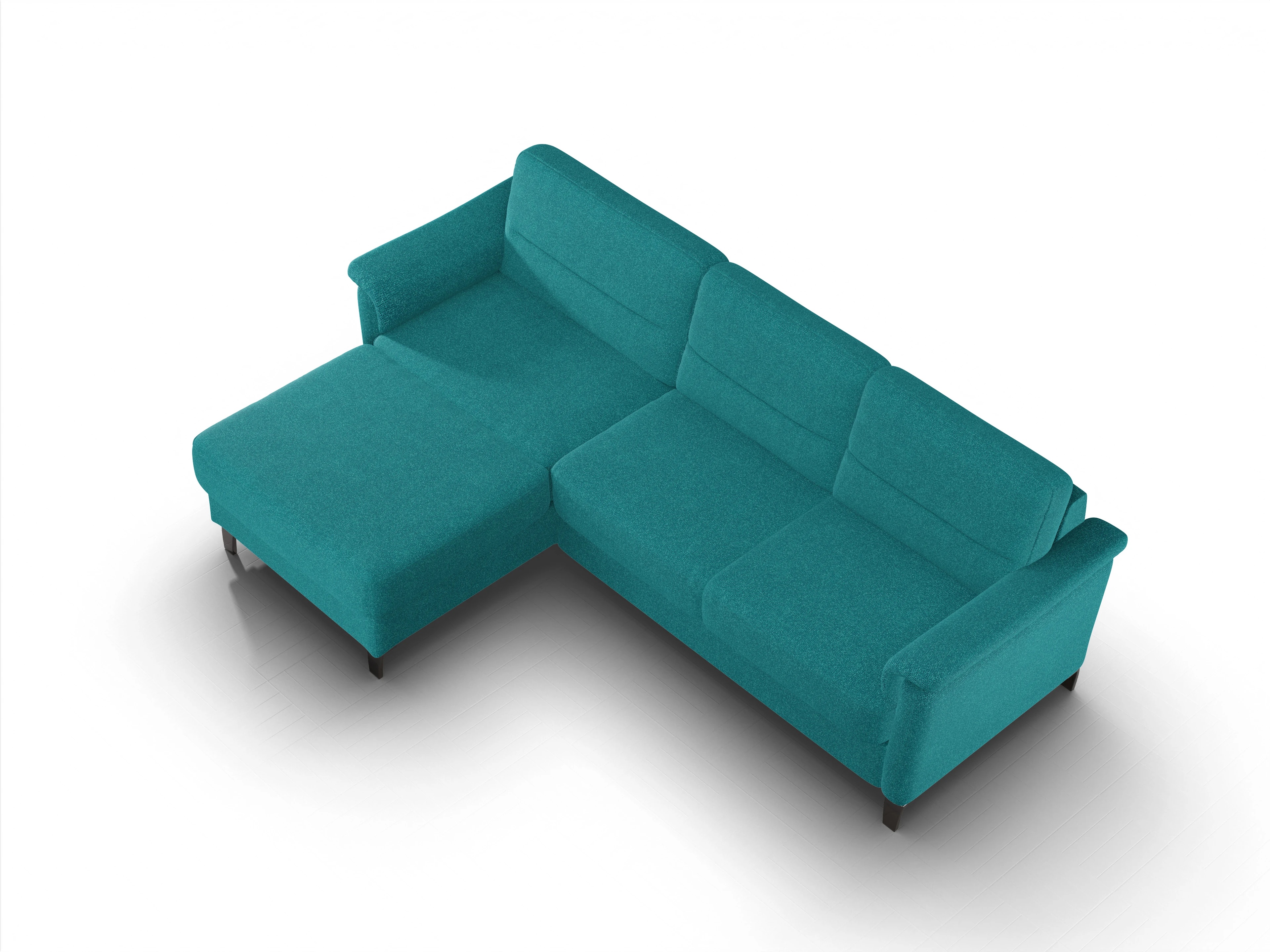 Das Pagall Ecksofa besteht aus einem Longchair links sowie einem 2,5-Sitzer mit einer Armlehne rechts.