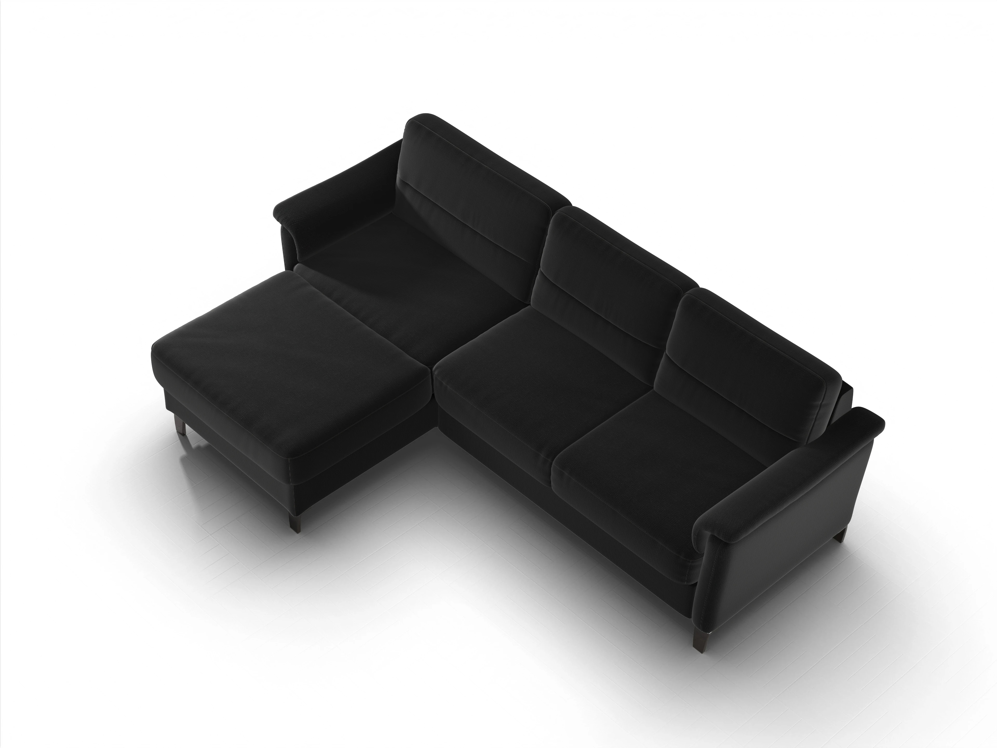 Das Pagall Ecksofa besteht aus einem Longchair links sowie einem 2,5-Sitzer mit einer Armlehne rechts.