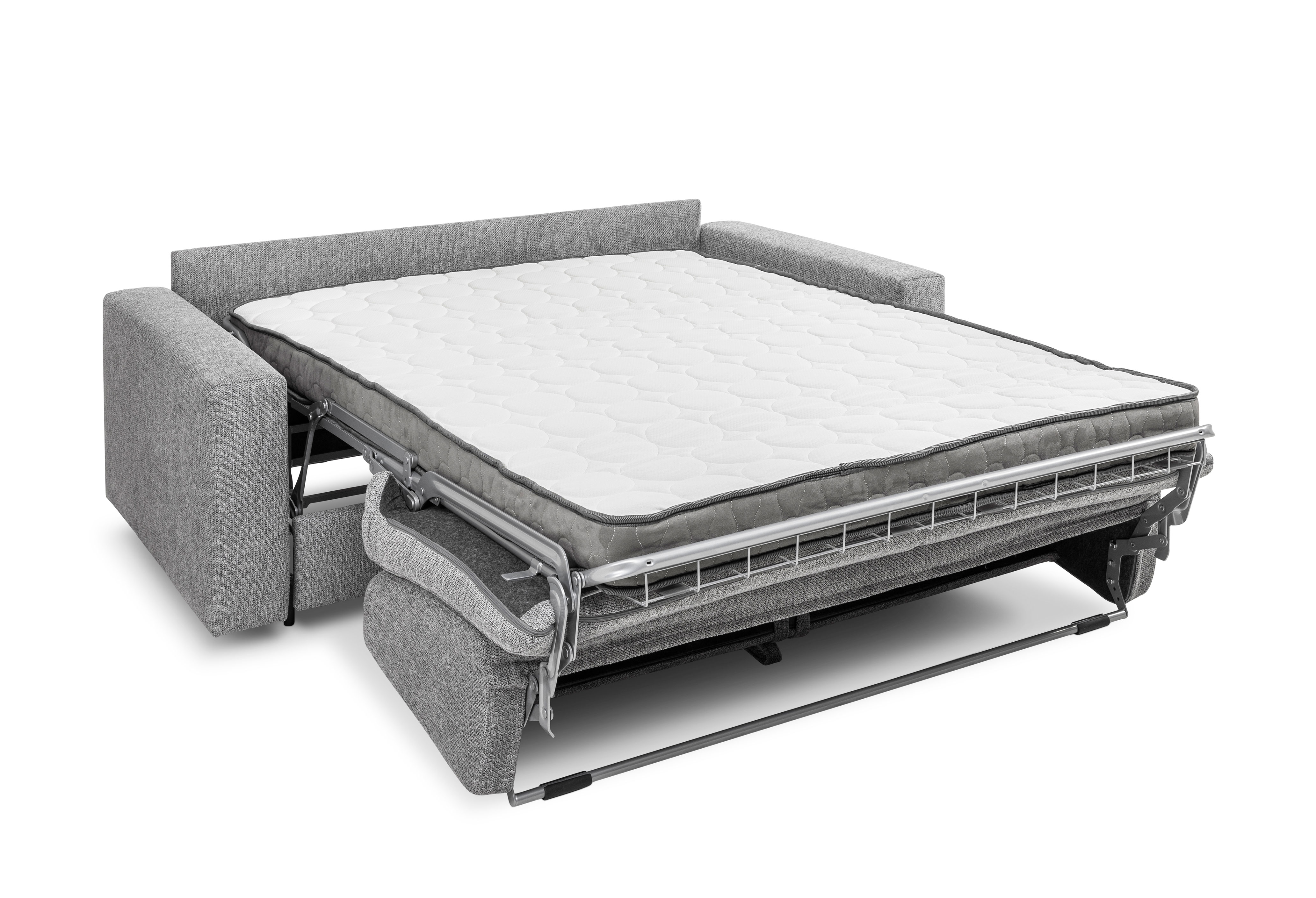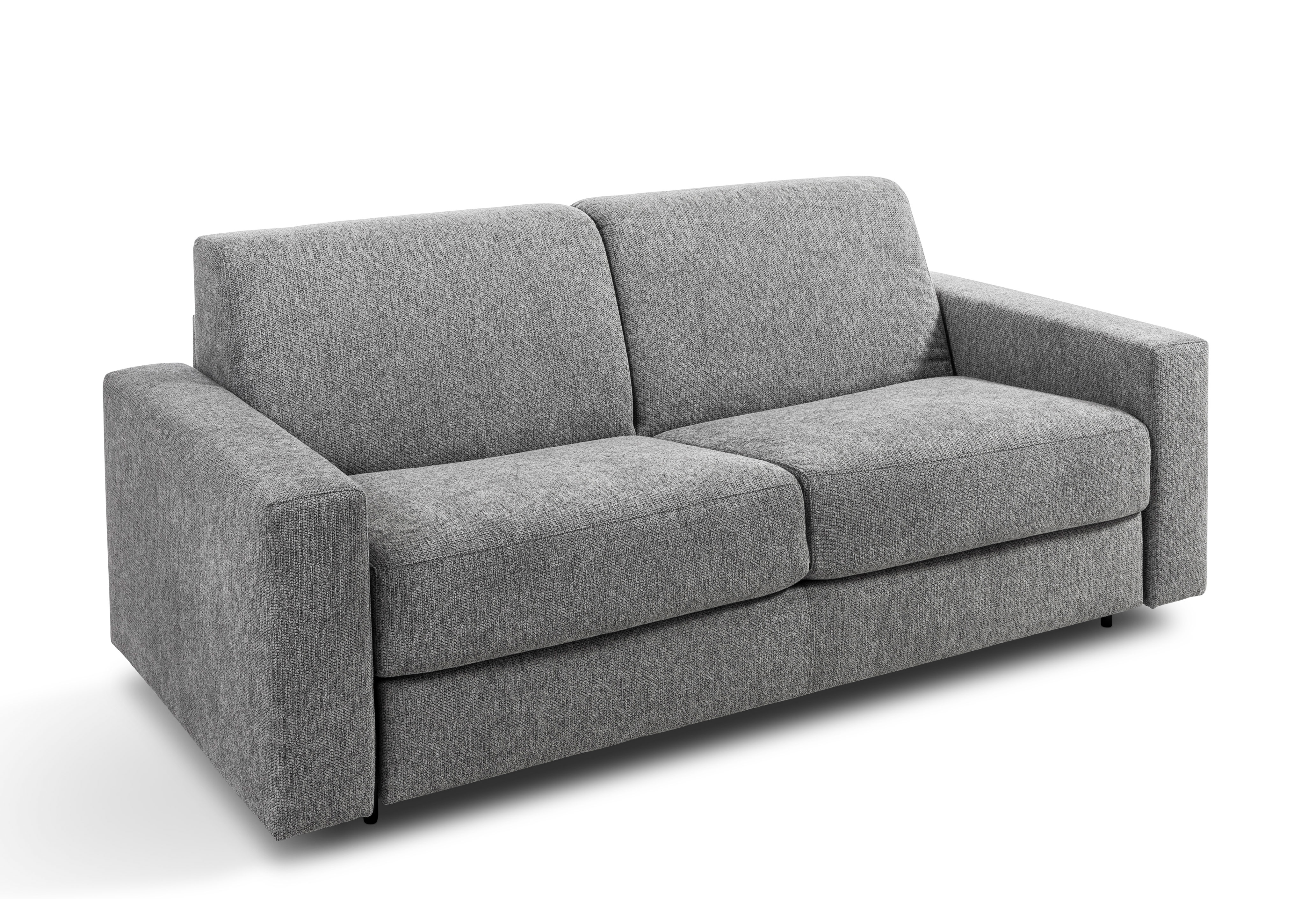 Das 3-Sitzer Schlafsofa besitzt beidseitig je eine Armlehne. Schlaffunktion durch umklappbare Rückenlehne und Sitzfläche (13 cm Matratze).