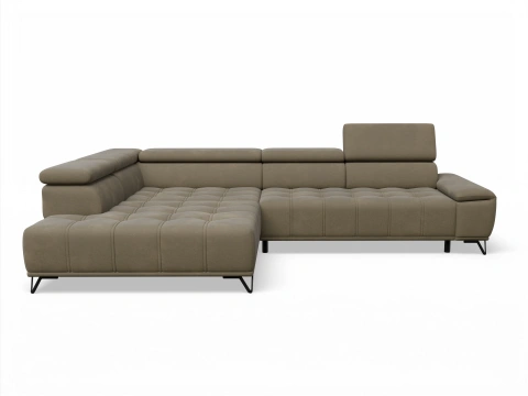 Das Ecksofa besteht aus einem 2-Sitzer mit Armlehne links inkl. motorischer Sitztiefenverstellung und einer Ottomane mit Armlehne rechts. Das Ecksofa wird mit 3 verstellbaren Kopfstützen geliefert.