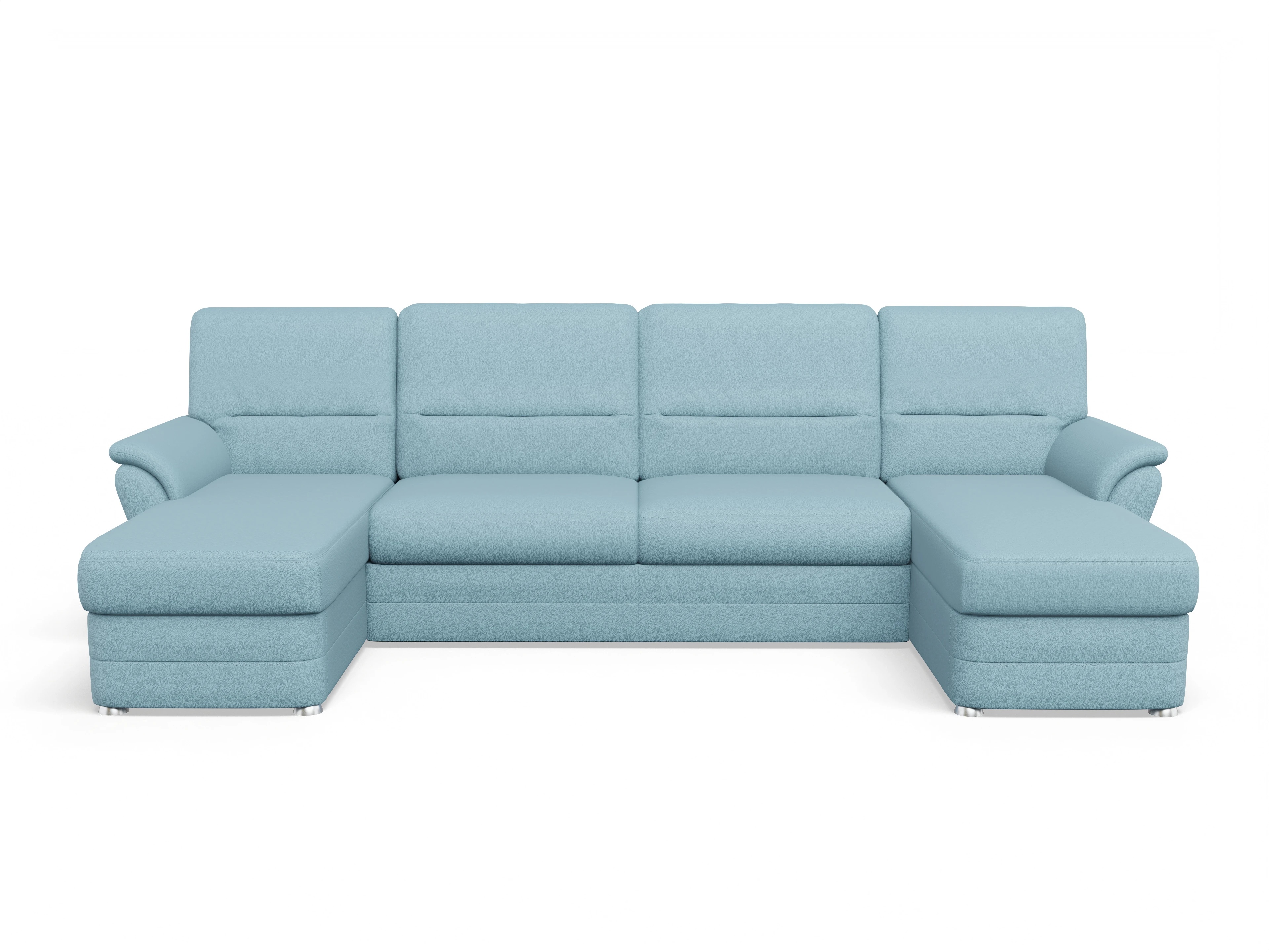 Die Wohnlandschaft besteht aus einem Canapé links, wahlweise mit Bettkasten, einem 3-Sitzer mittig, wahlweise mit Schlaffunktion und einem Canapé rechts, wahlweise mit Bettkasten.