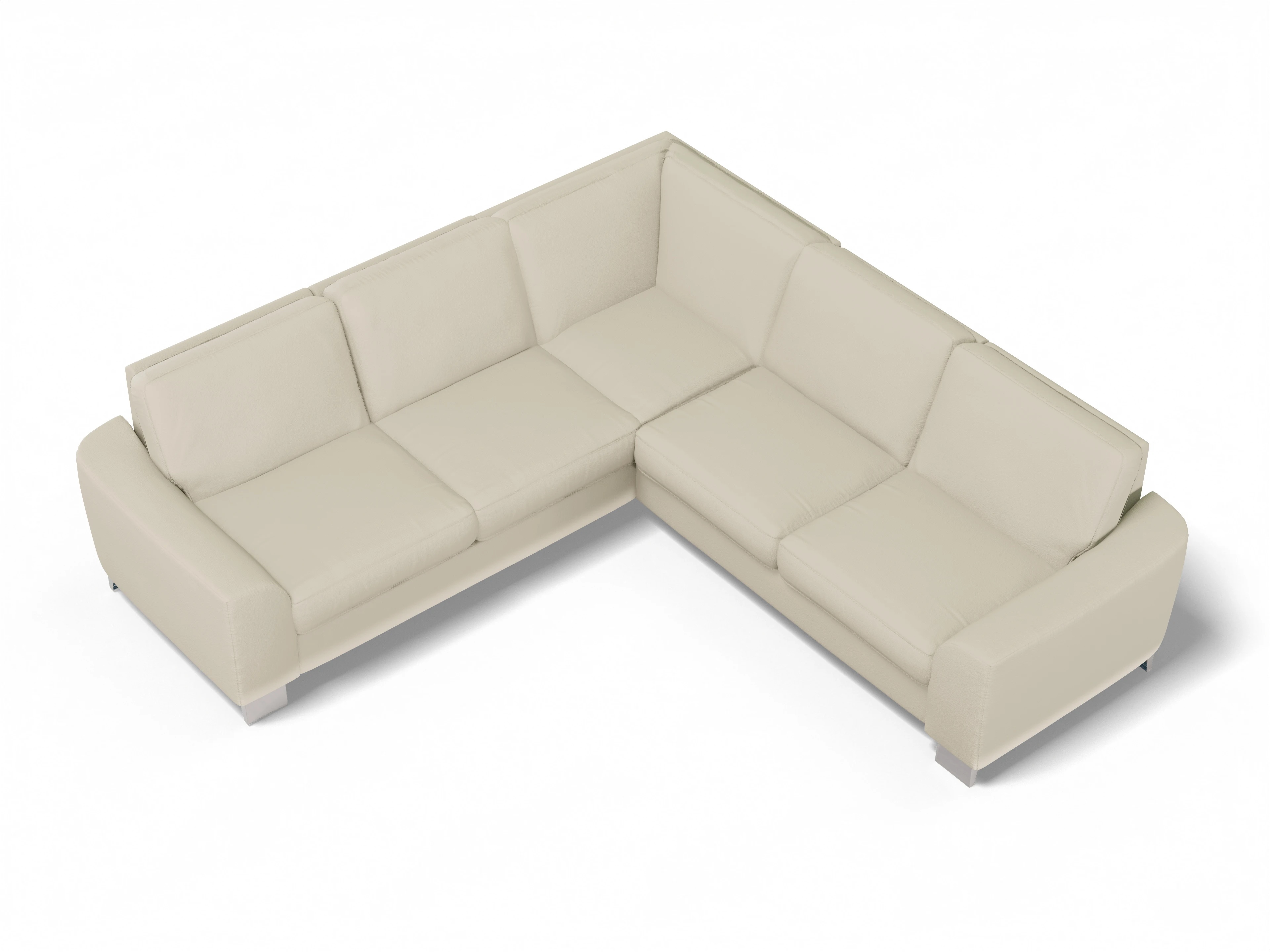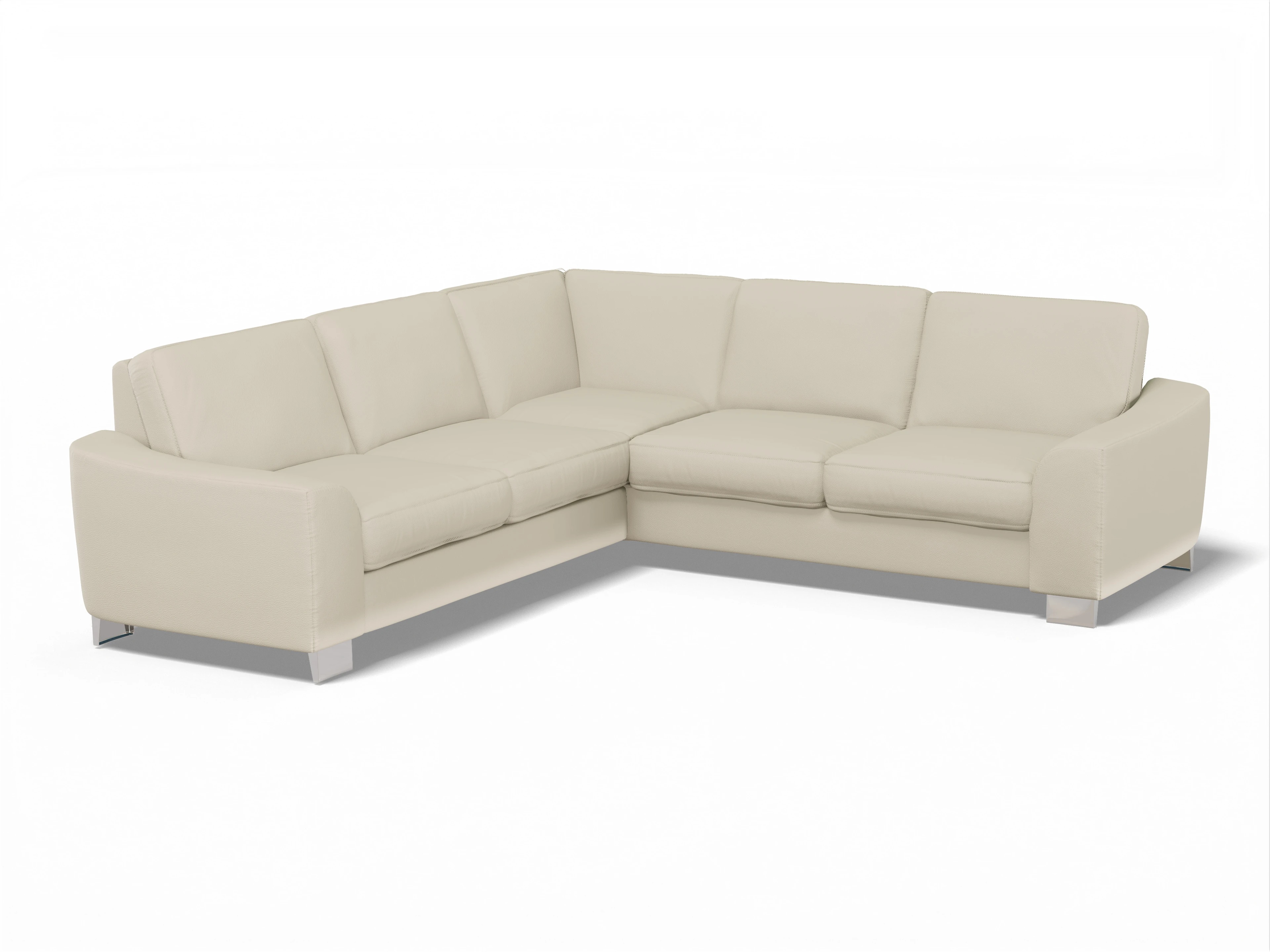 Die Ecksofa besteht aus einem 2,5-Sitzer mir Armlehne links, einer Spitzecke und einem 2,5-Sitzer mit Armlehne rechts.