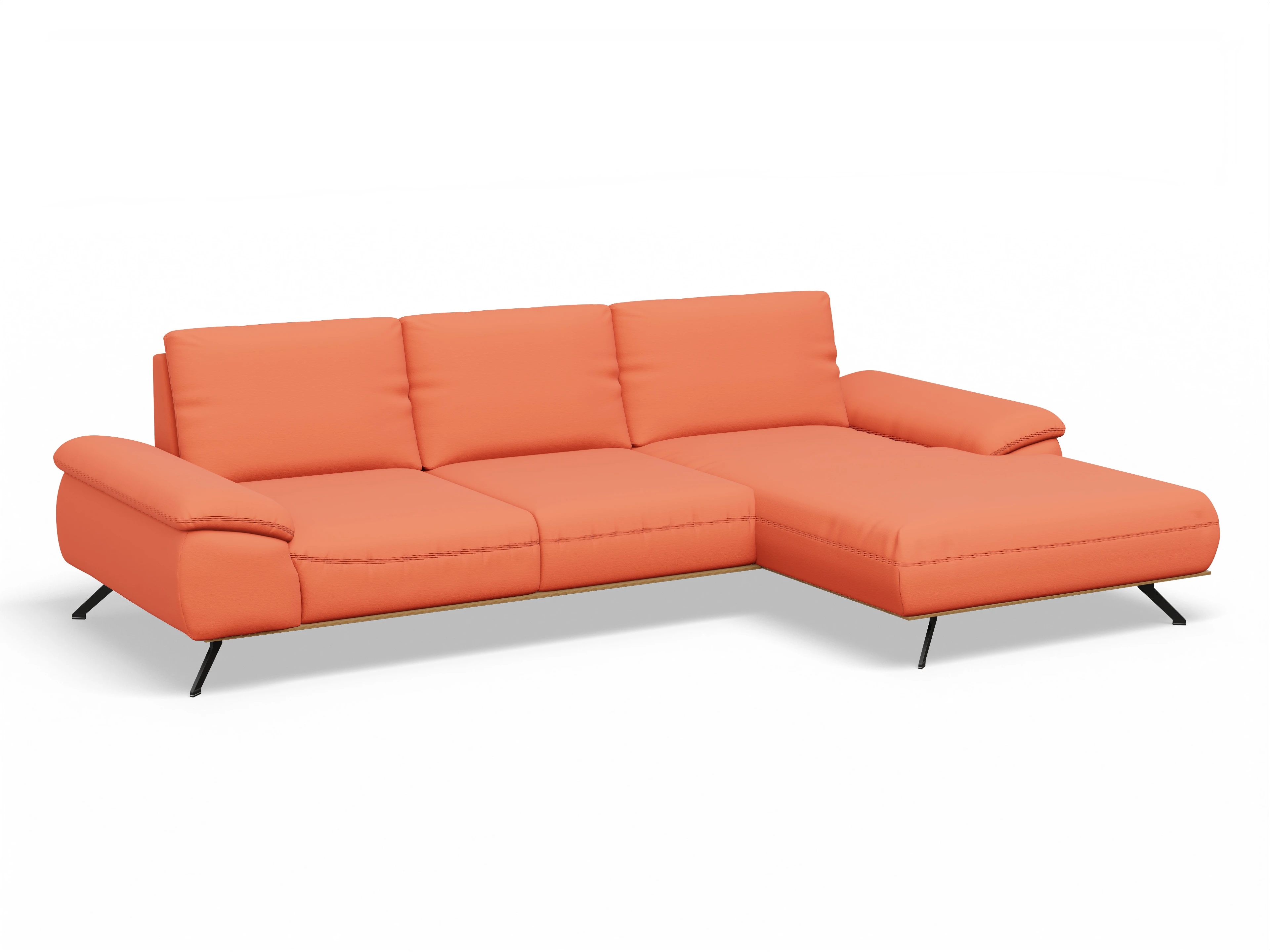 Das Ecksofa besteht aus einem Canape mit Armlehne links und einem 3-Sitzer mit Armlehne rechts.