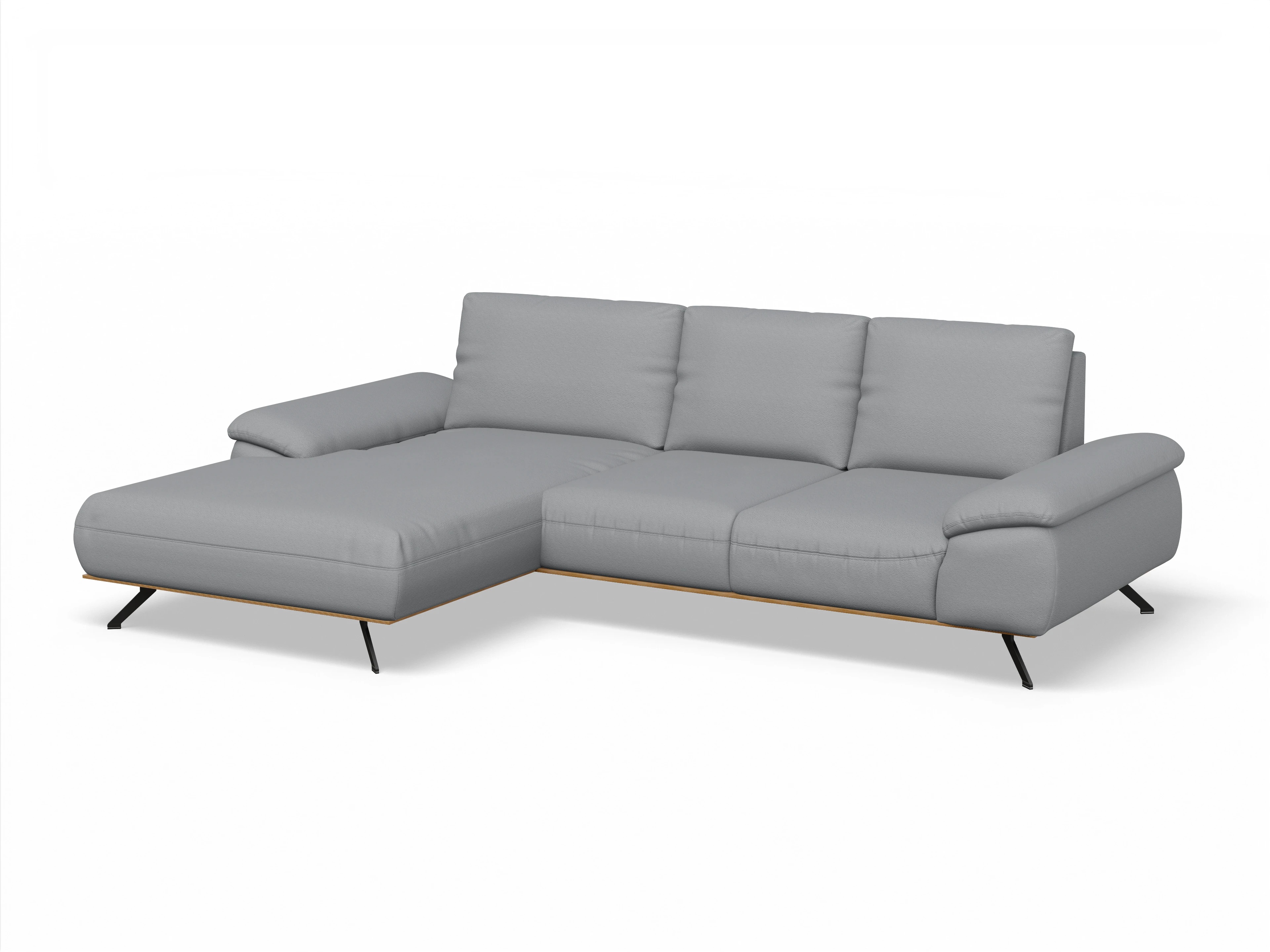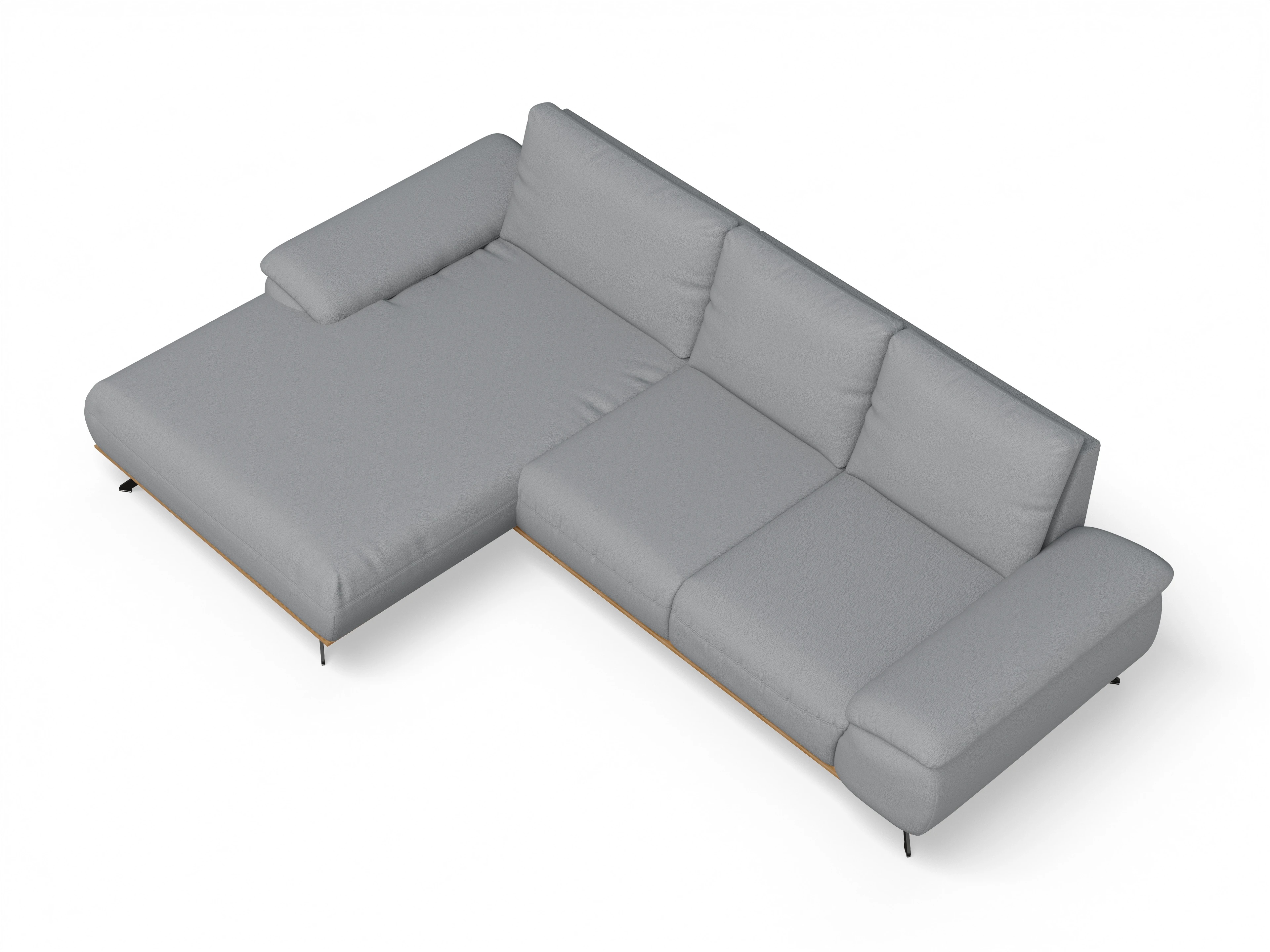 Das Ecksofa besteht aus einem Canapé mit Armlehne links und einem 2,5-Sitzer mit Armlehne rechts.