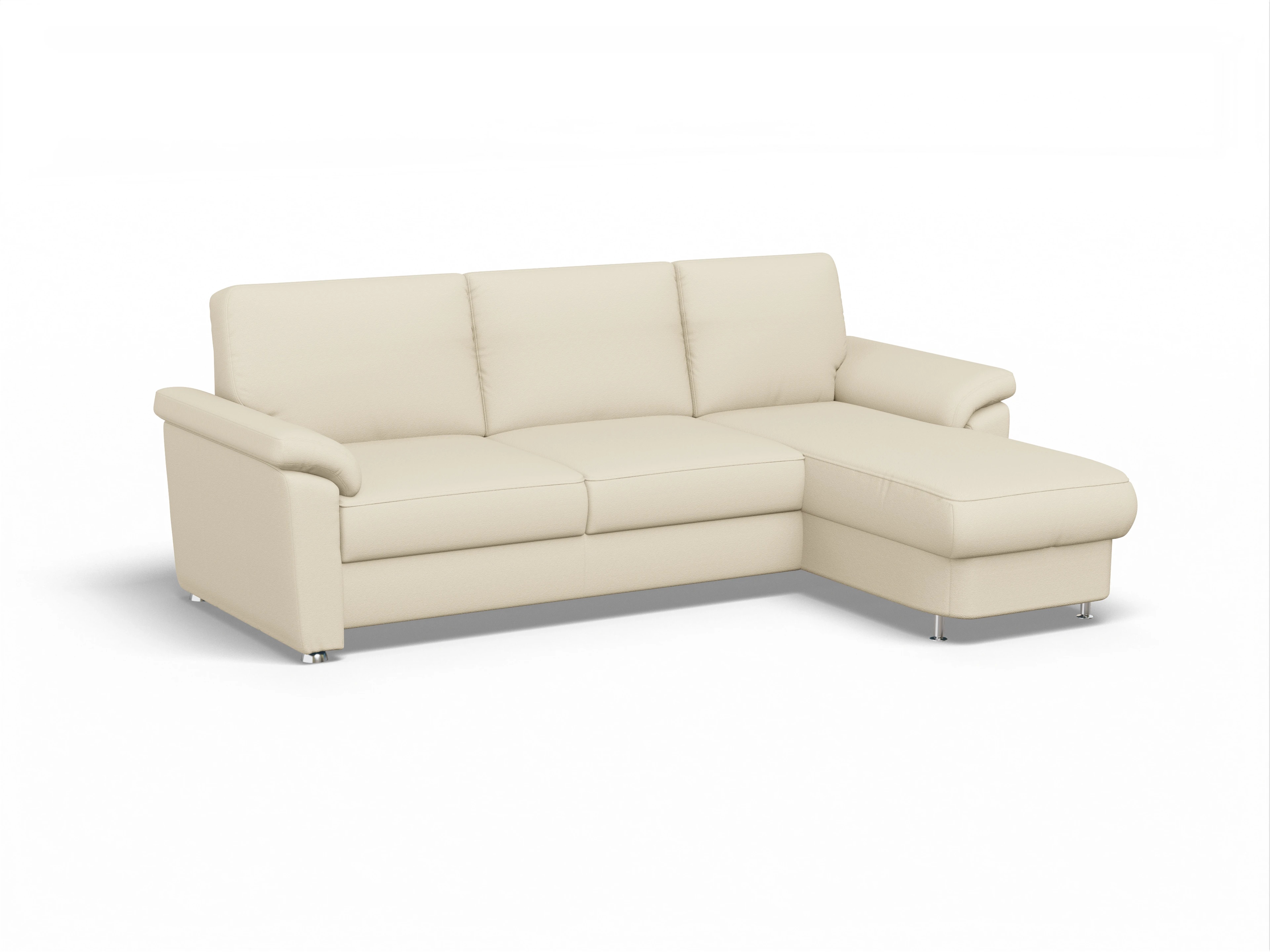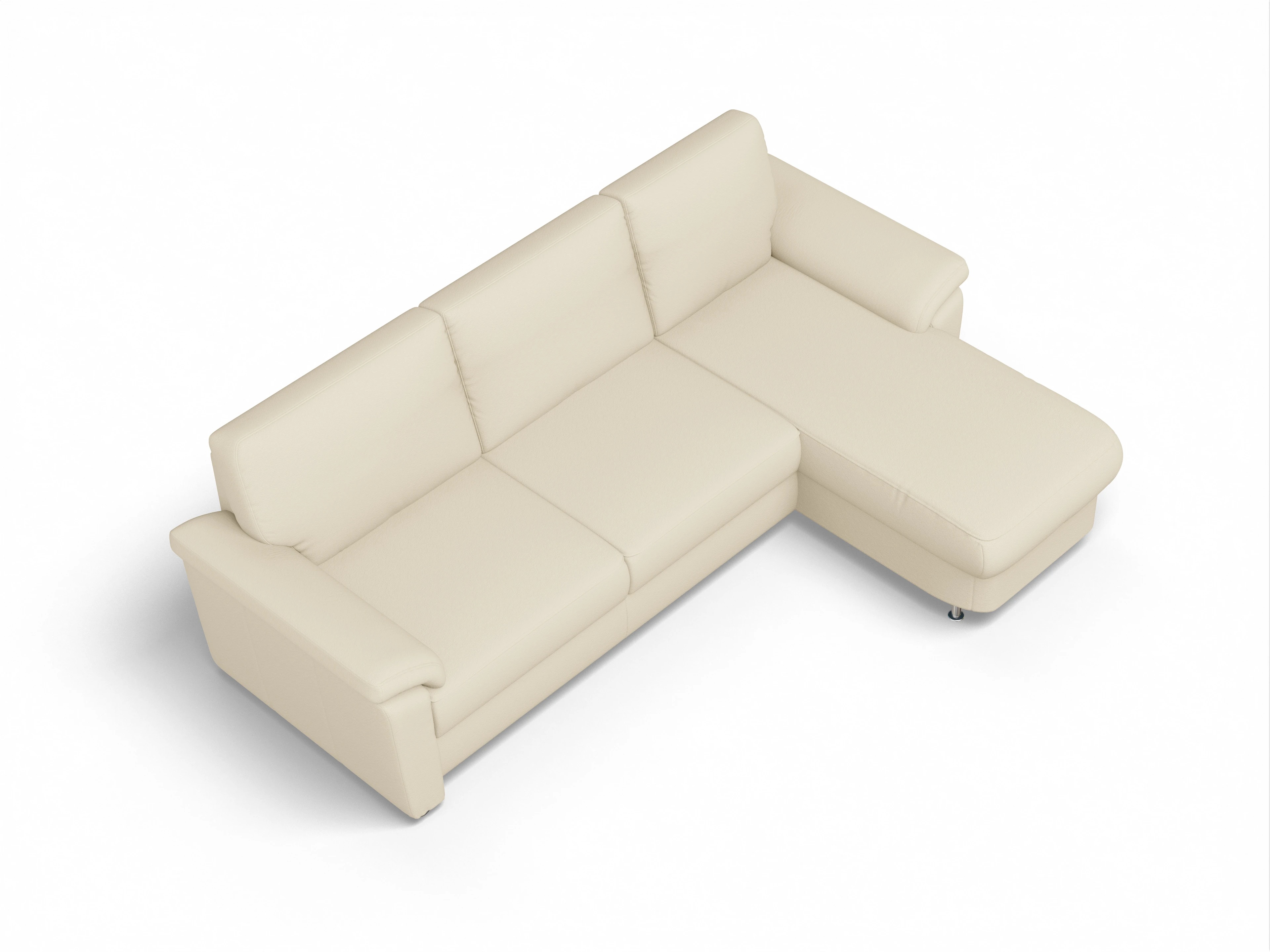 Das Ecksofa besteht aus einem 2,5-Sitzer links mit Armlehne und einem Canapé rechts mit Armlehne.