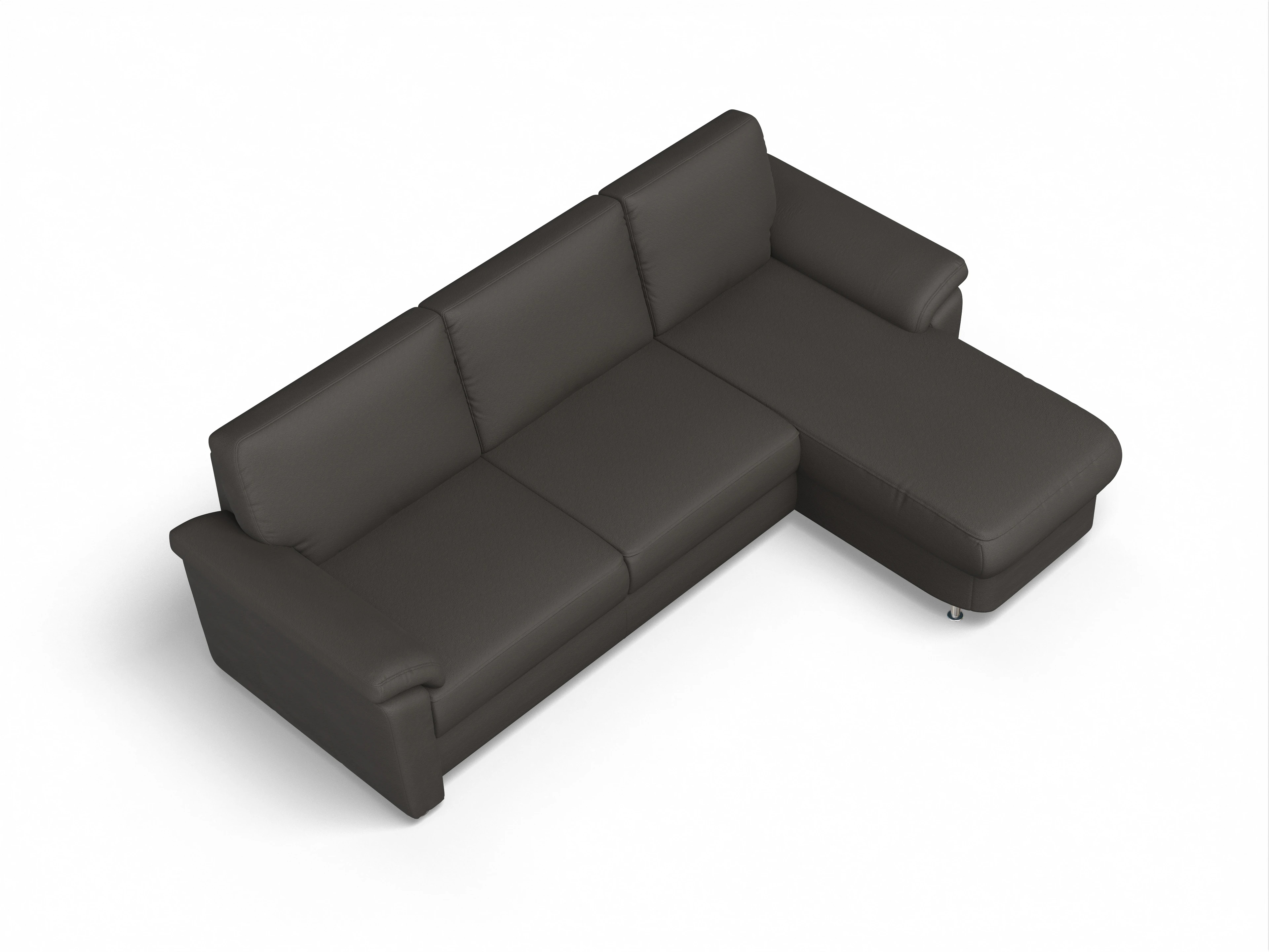 Das Ecksofa besteht aus einem 2,5-Sitzer links mit Armlehne und einem Canapé rechts mit Armlehne.