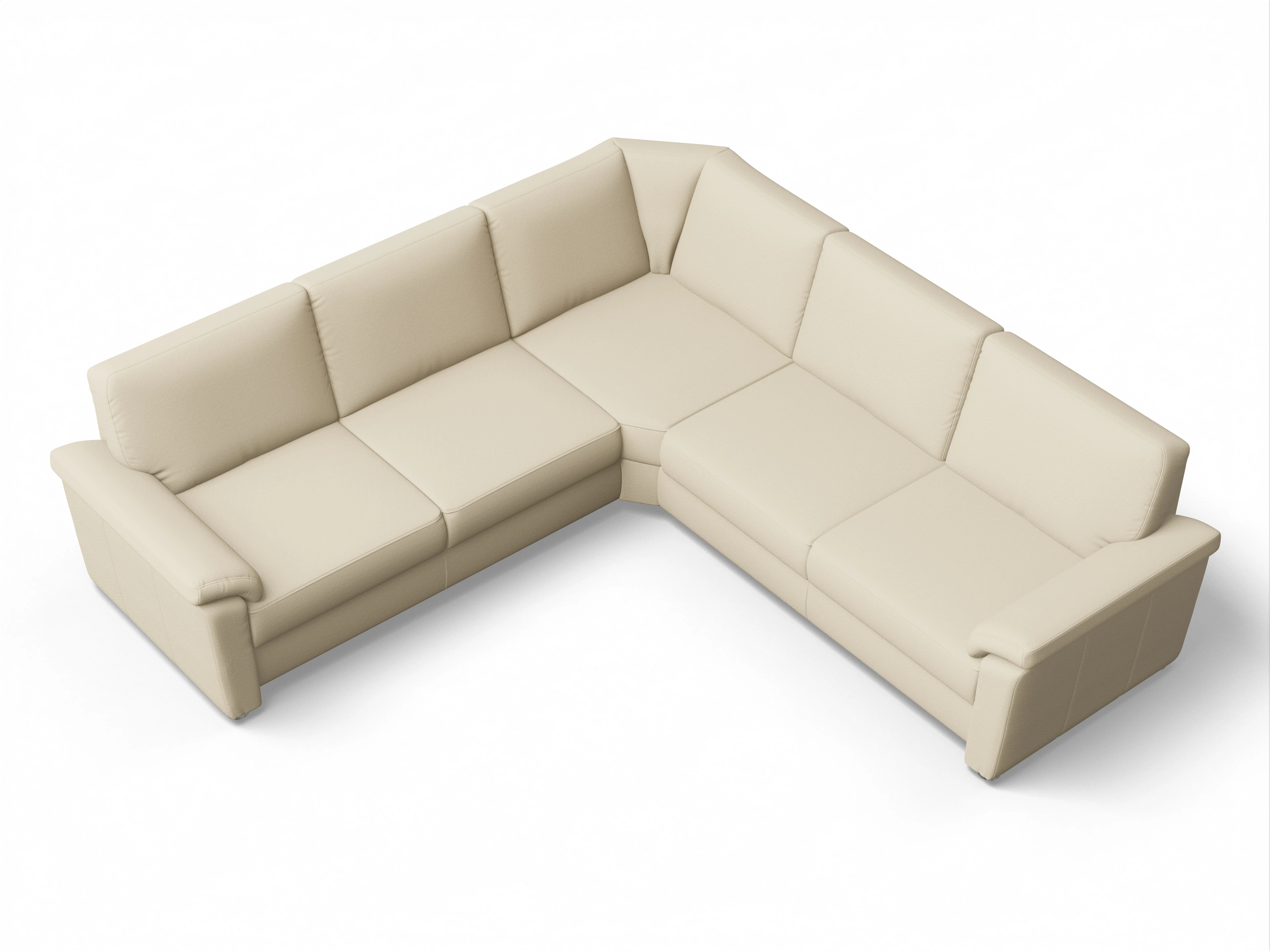 Die Ecksofa besteht aus einem 2,5-Sitzer mir Armlehne links, einer Rundecke und einem 2,5-Sitzer mit Armlehne rechts.