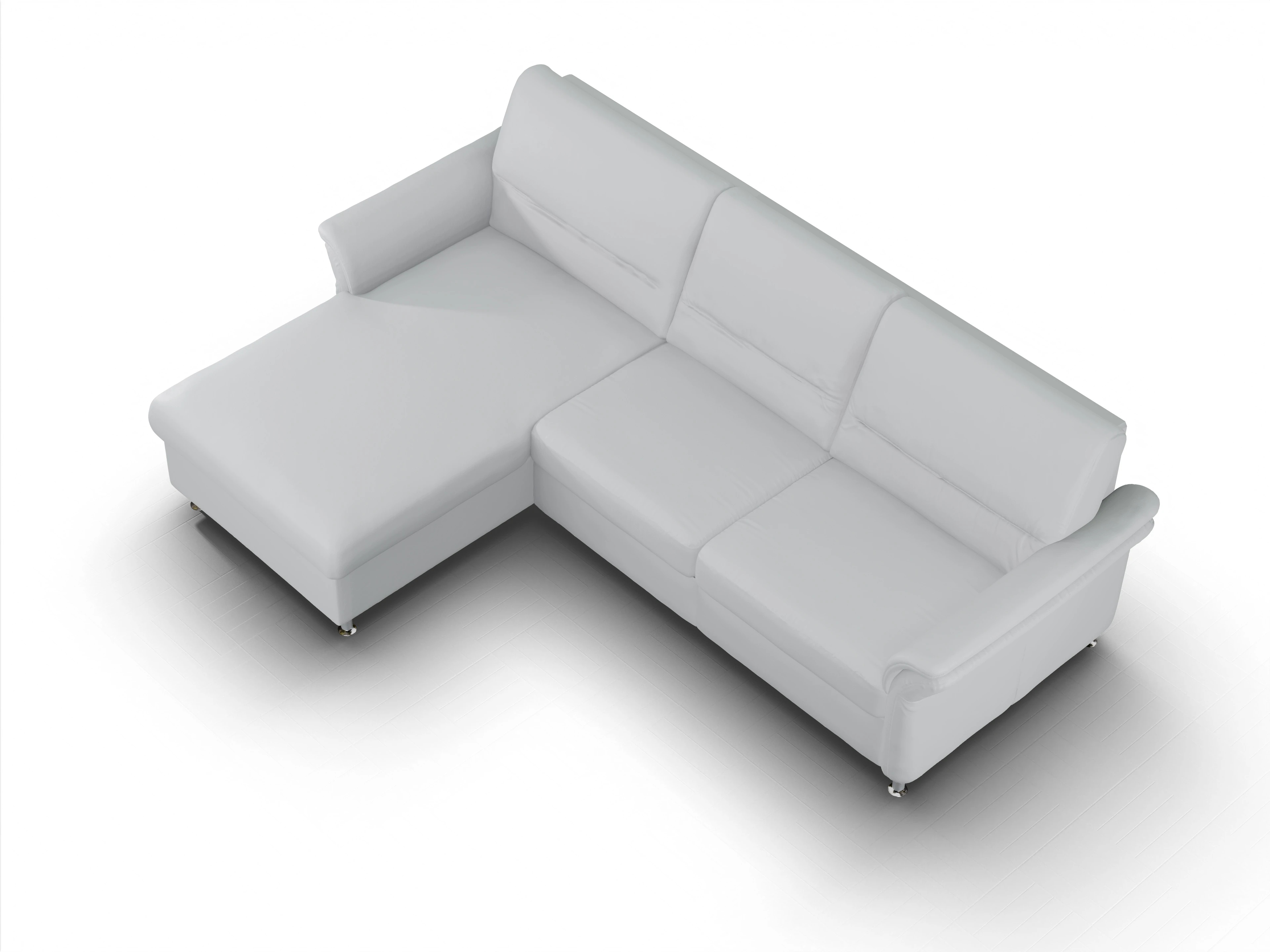 Das Ecksofa besteht aus einem Canapé mit Armlehne links und einem 2,5-Sitzer mit Armlehne rechts.