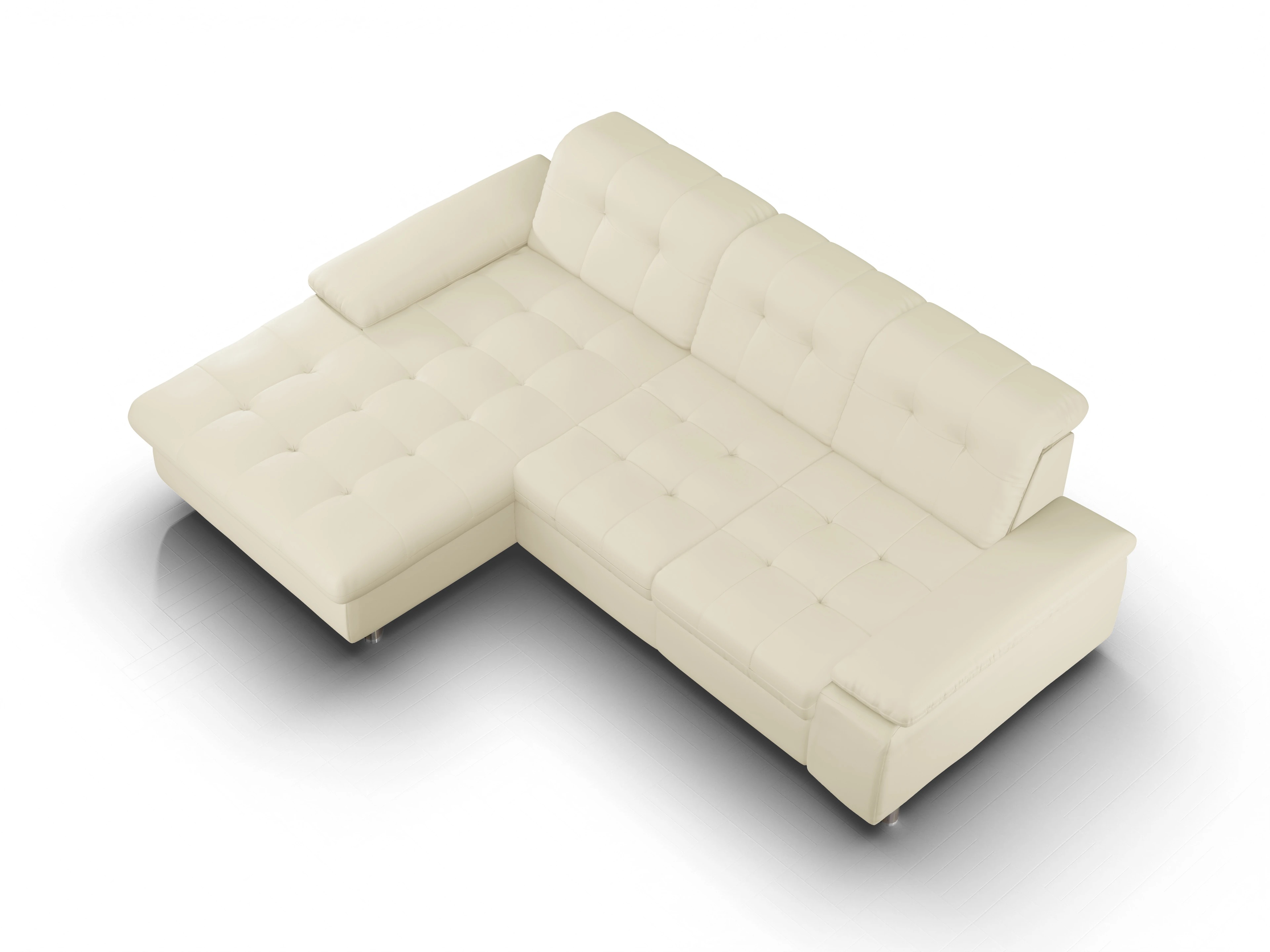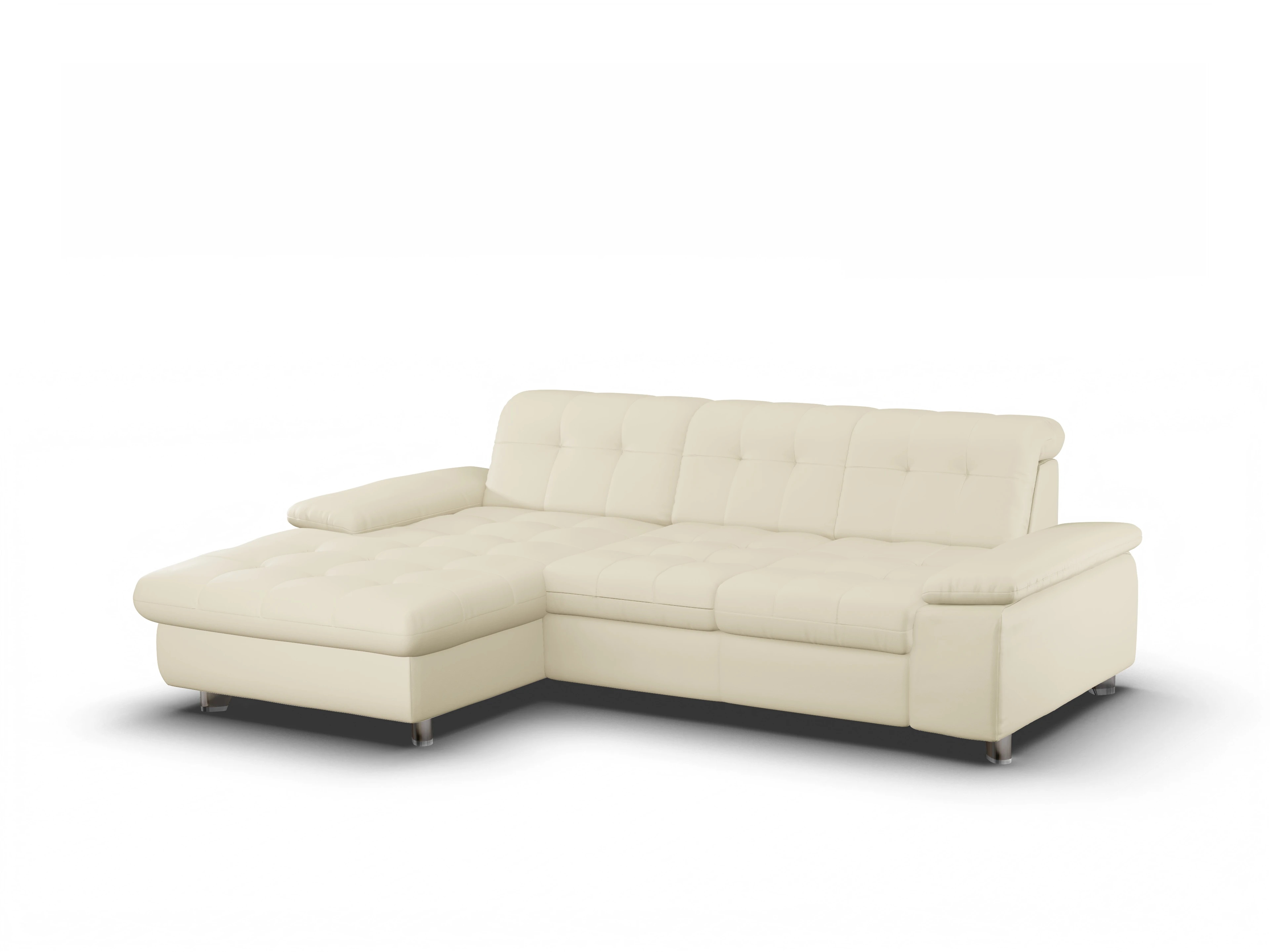 Das Ecksofa besteht aus einem Canape mit einer Armlehne links sowie einem 2,5-Sitzer mit einer Armlehne rechts. Eine Sitztiefenverstellung ist an jedem Sitzplatz inklusive (3x).