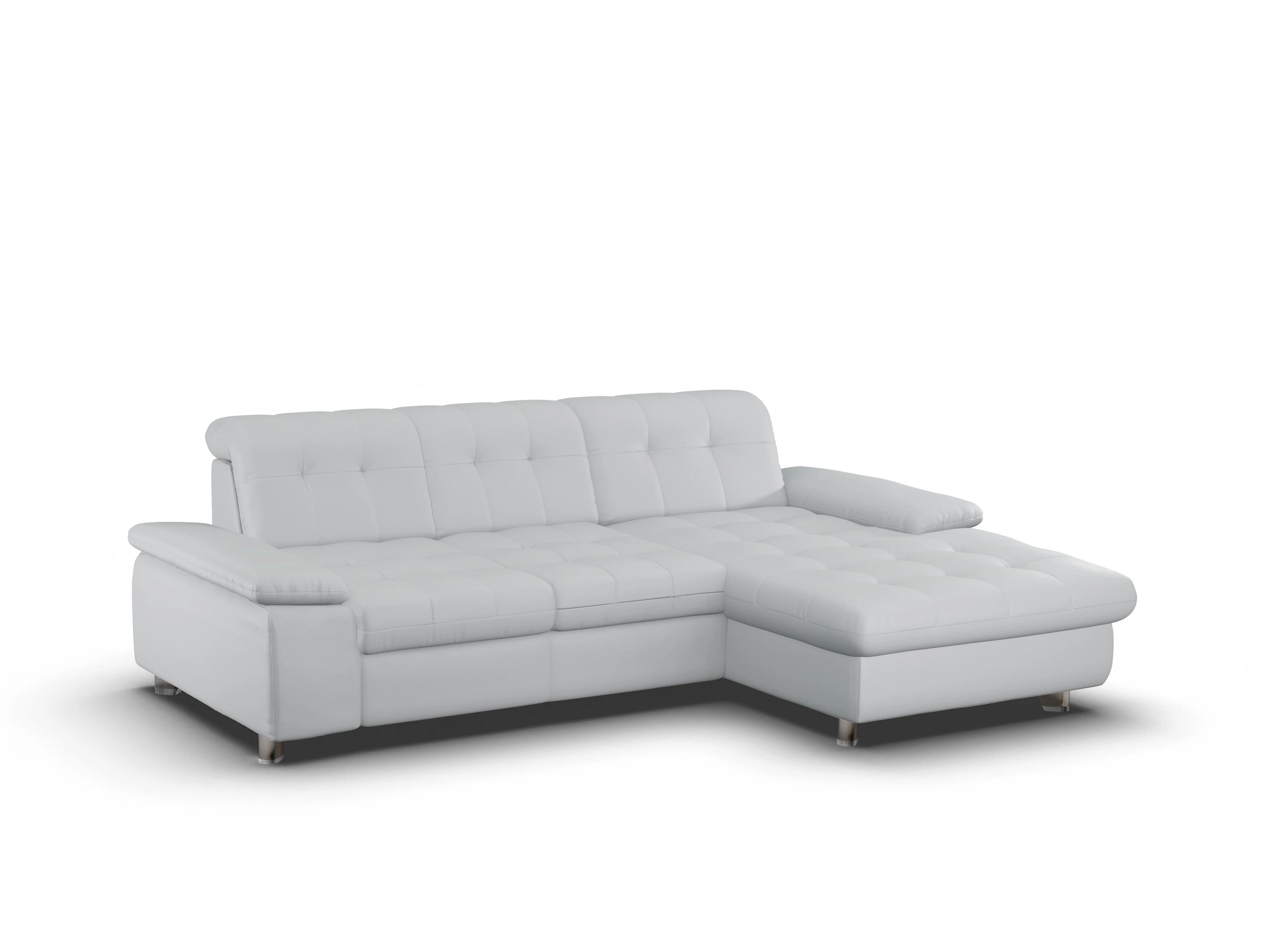 Das Ecksofa besteht aus einem 2,5-Sitzer mit einer Armlehne links und einem Canapé mit einer Armlehne rechts. Eine Sitztiefenverstellung ist an jedem Sitzplatz inklusive (3x).