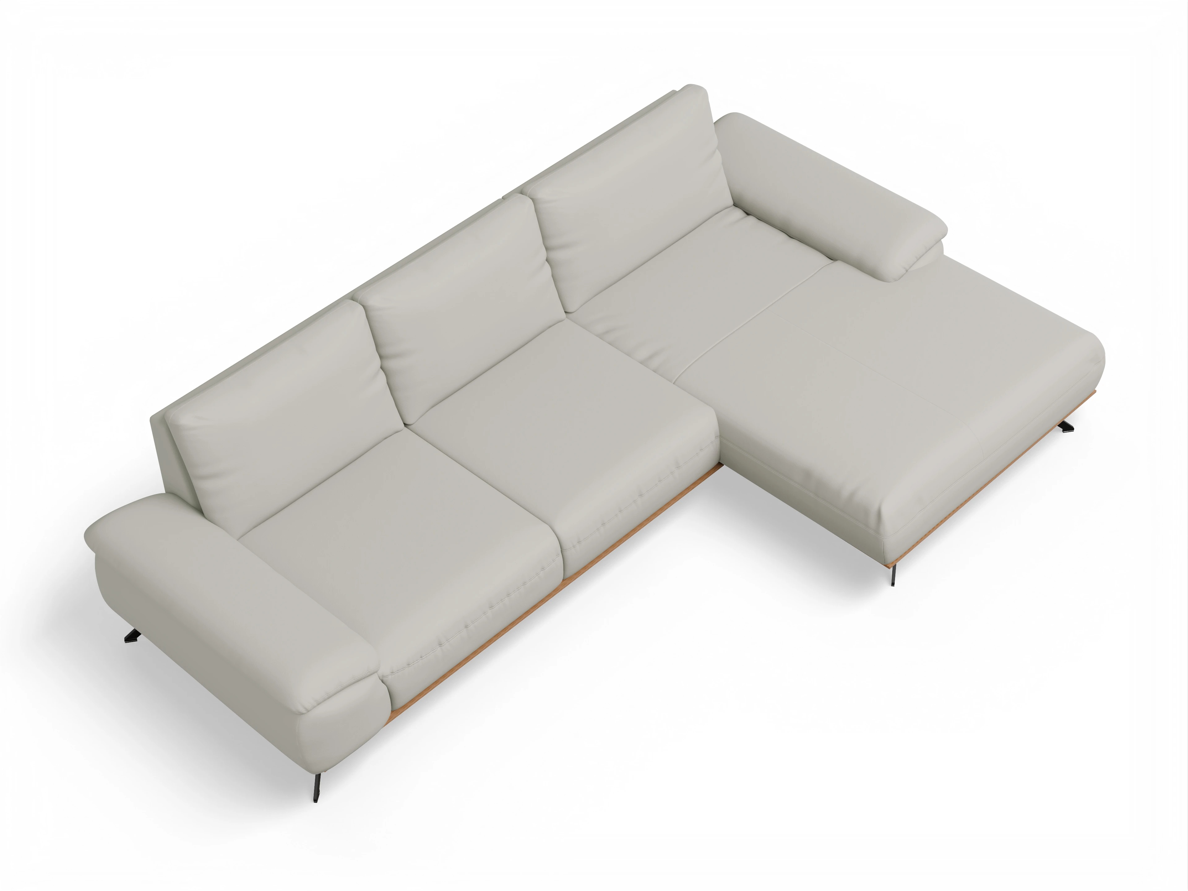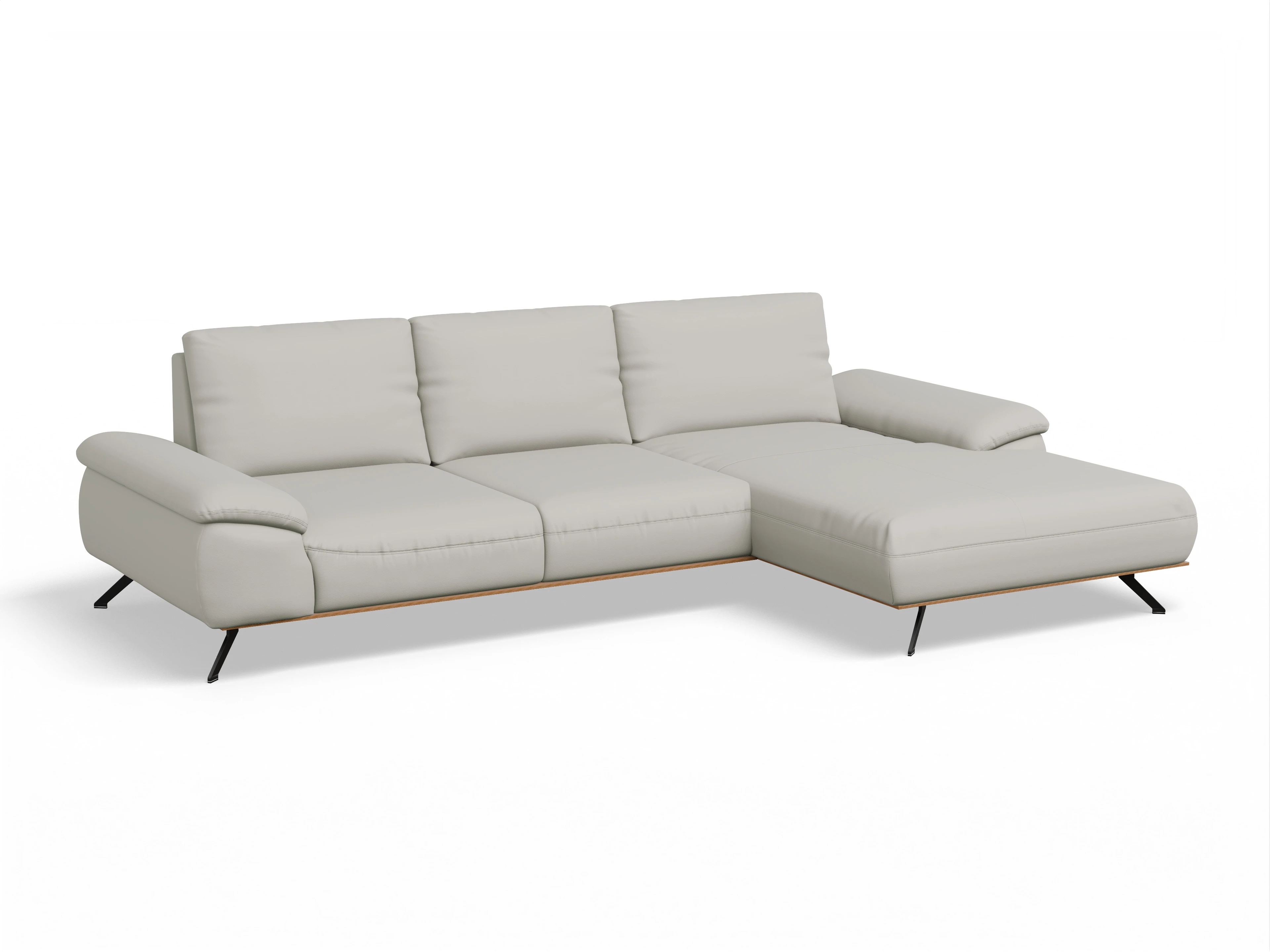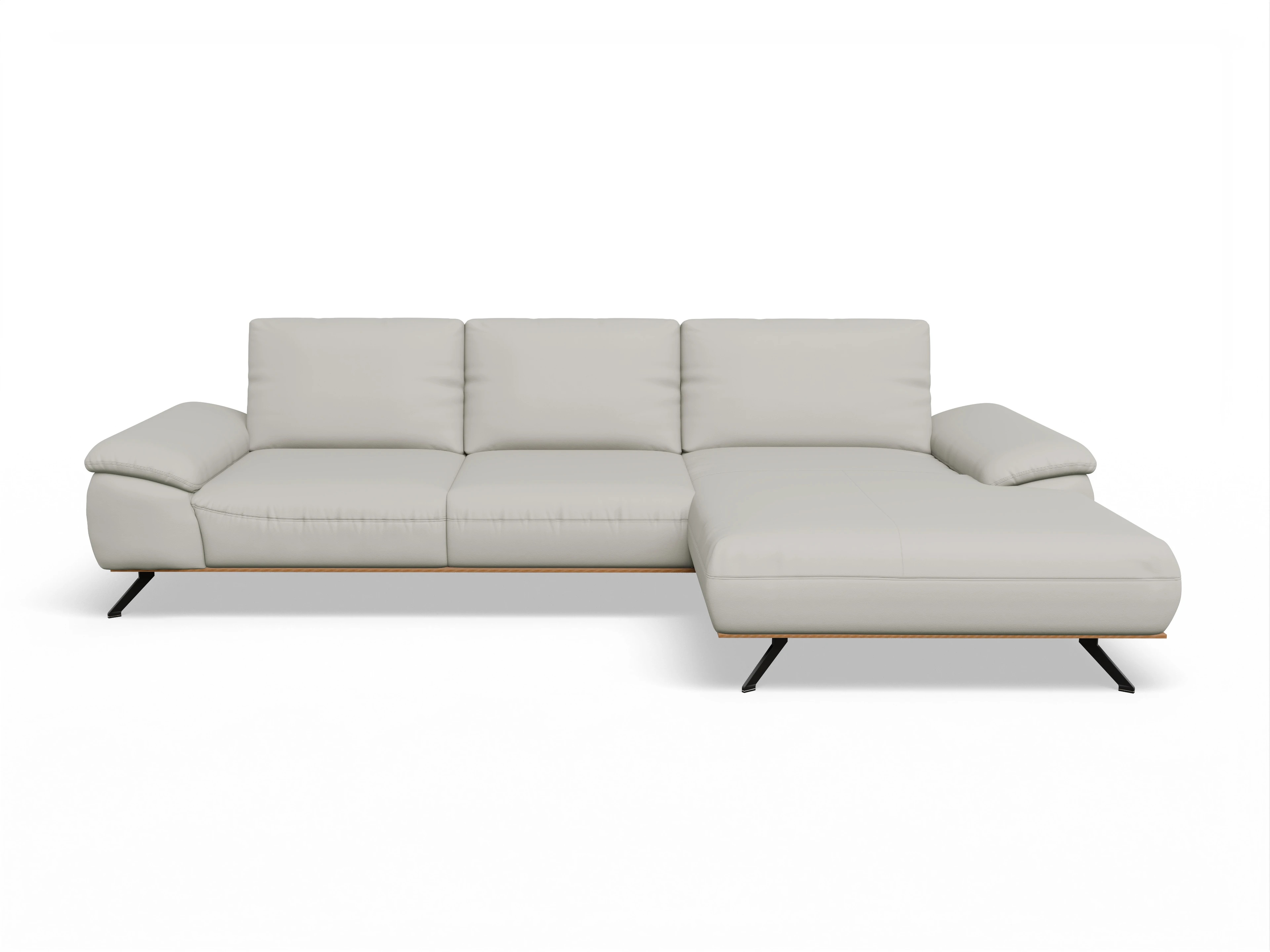 Das Ecksofa besteht aus einem Canape mit Armlehne links und einem 3-Sitzer mit Armlehne rechts.