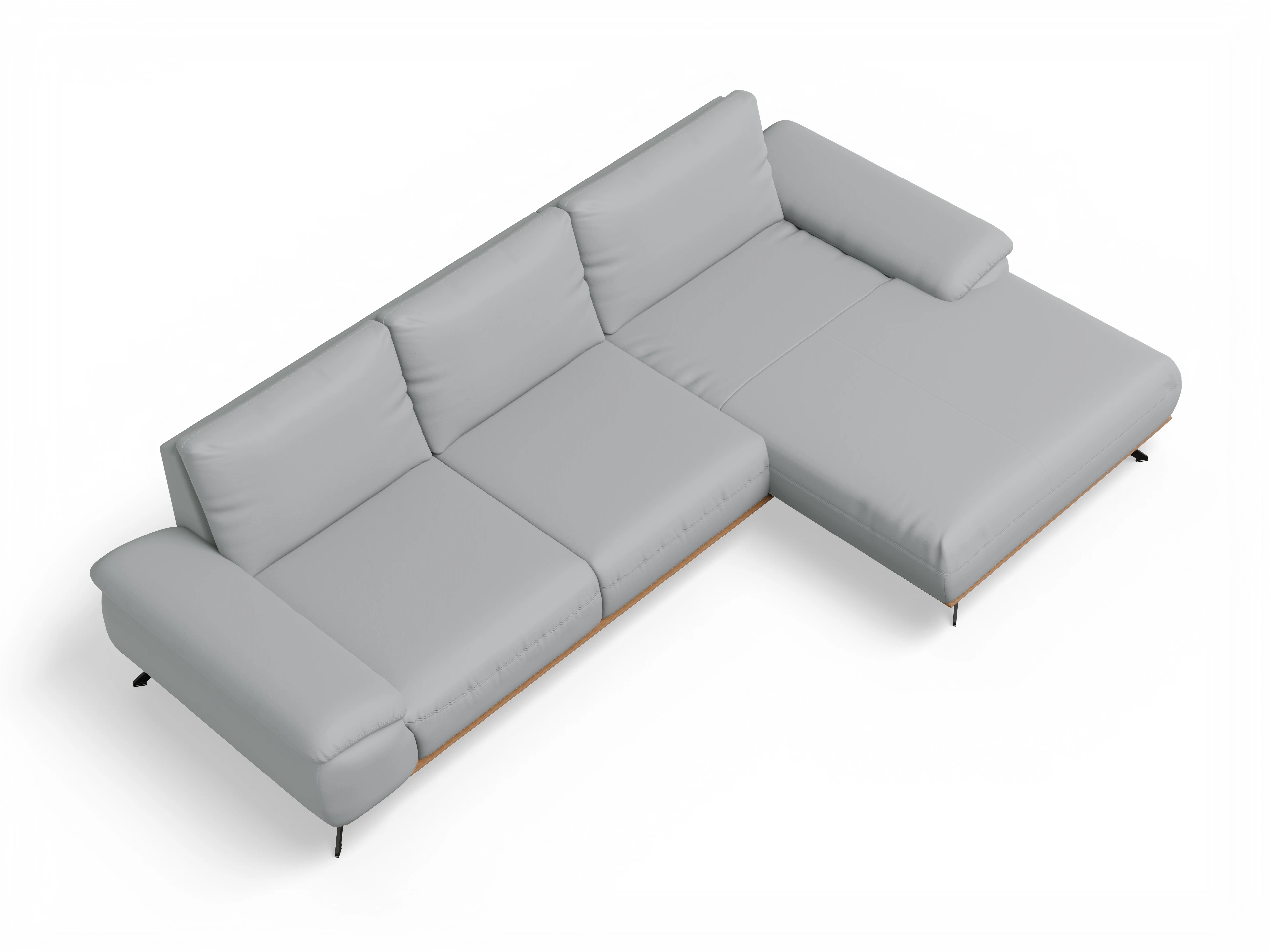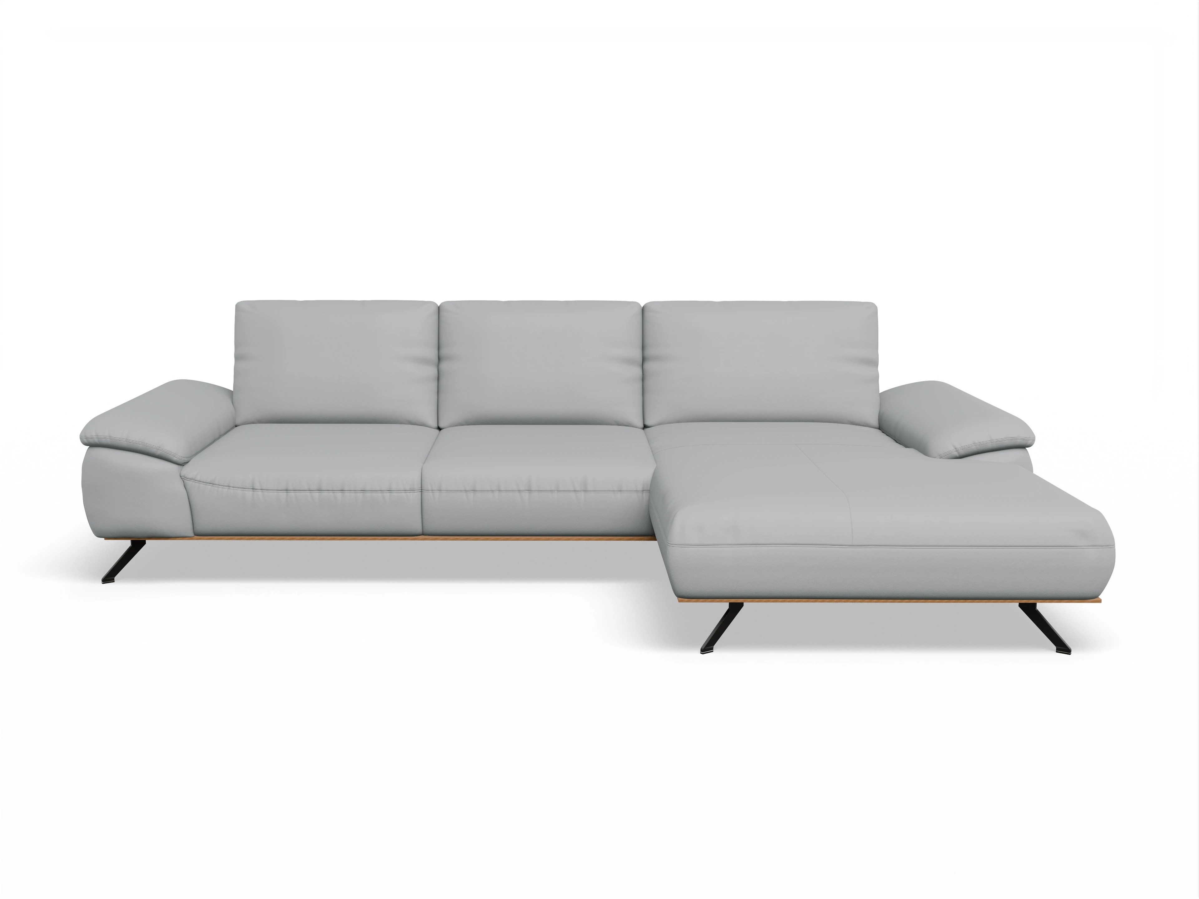 Das Ecksofa besteht aus einem Canape mit Armlehne links und einem 3-Sitzer mit Armlehne rechts.