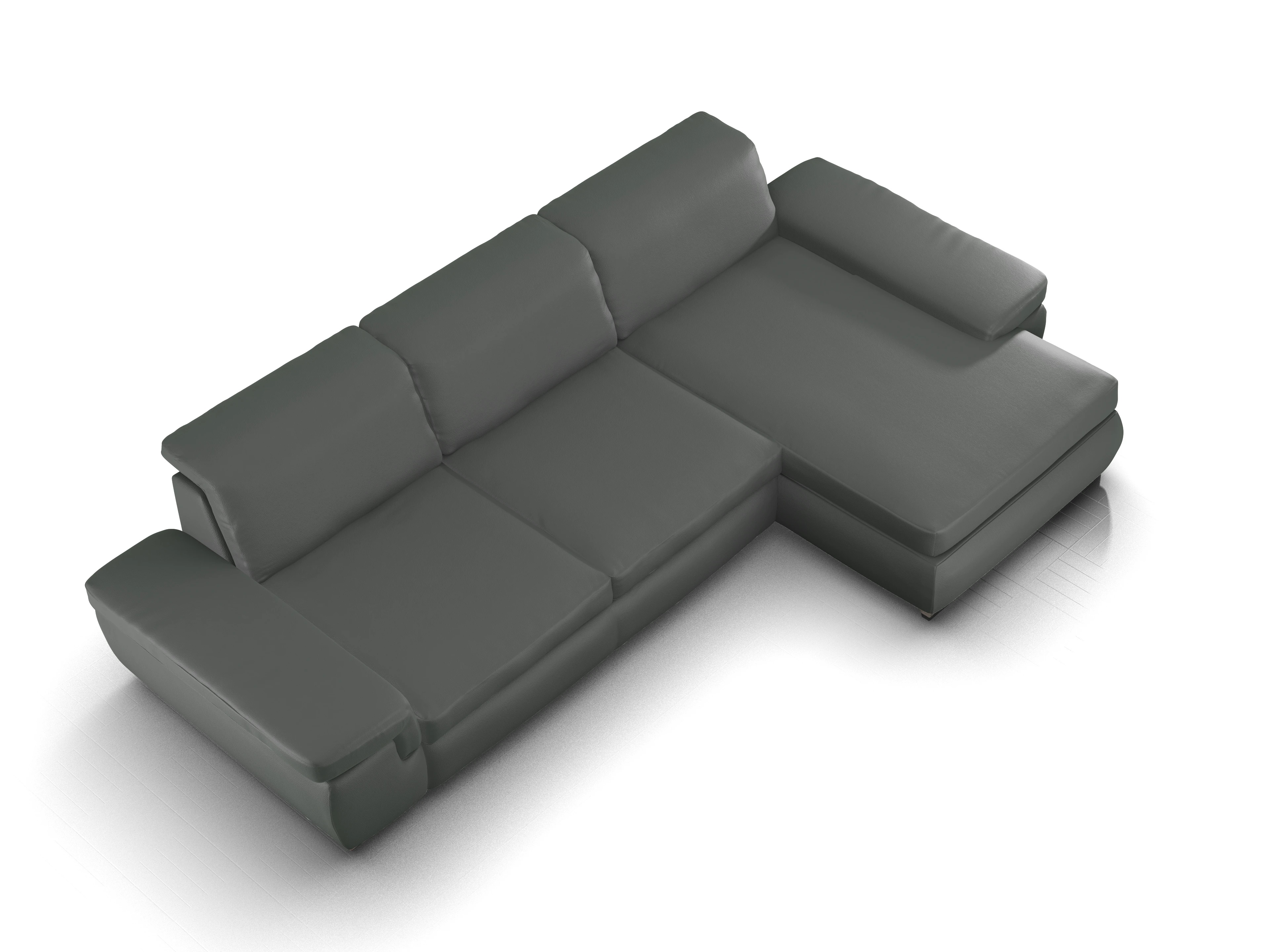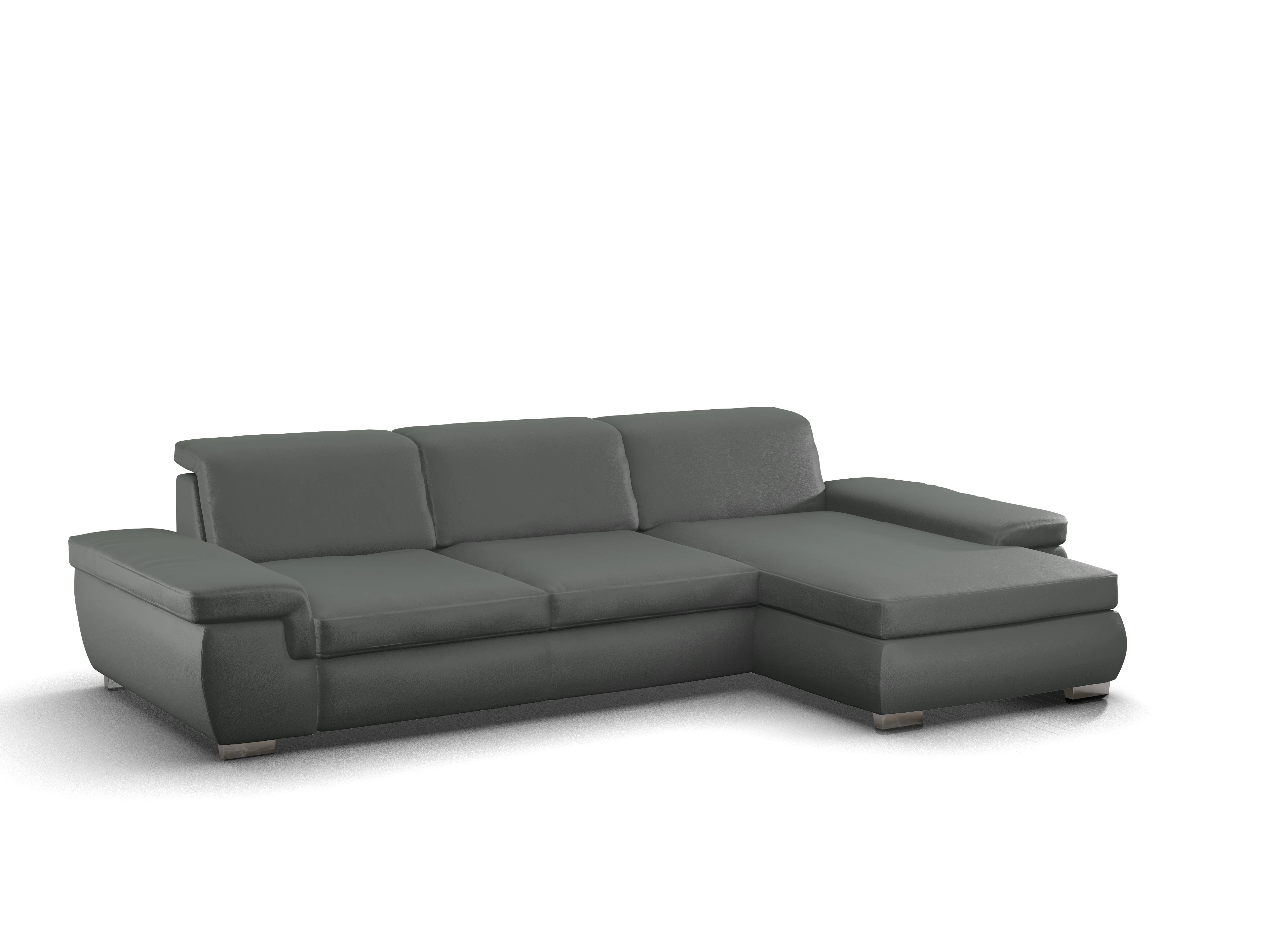 Das Ecksofa besteht aus einem 3-Sitzer mit einer Armlehne links und einem Canapé mit einer Armlehne rechts. Eine Sitztiefenverstellung ist an jedem Sitzplatz inklusive (3x).