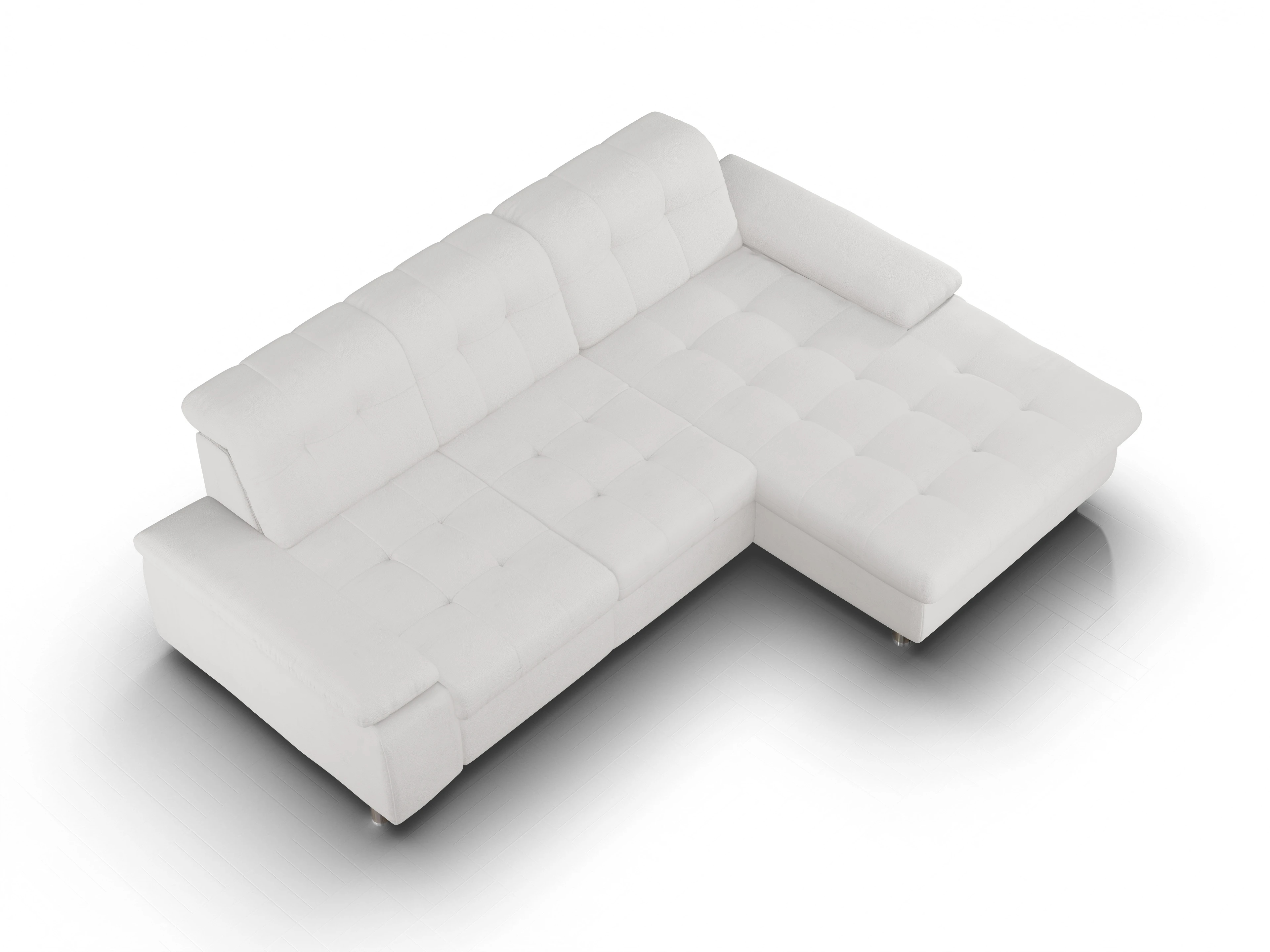 Das Ecksofa besteht aus einem 2,5-Sitzer mit einer Armlehne links und einem Canapé mit einer Armlehne rechts. Eine Sitztiefenverstellung ist an jedem Sitzplatz inklusive (3x).