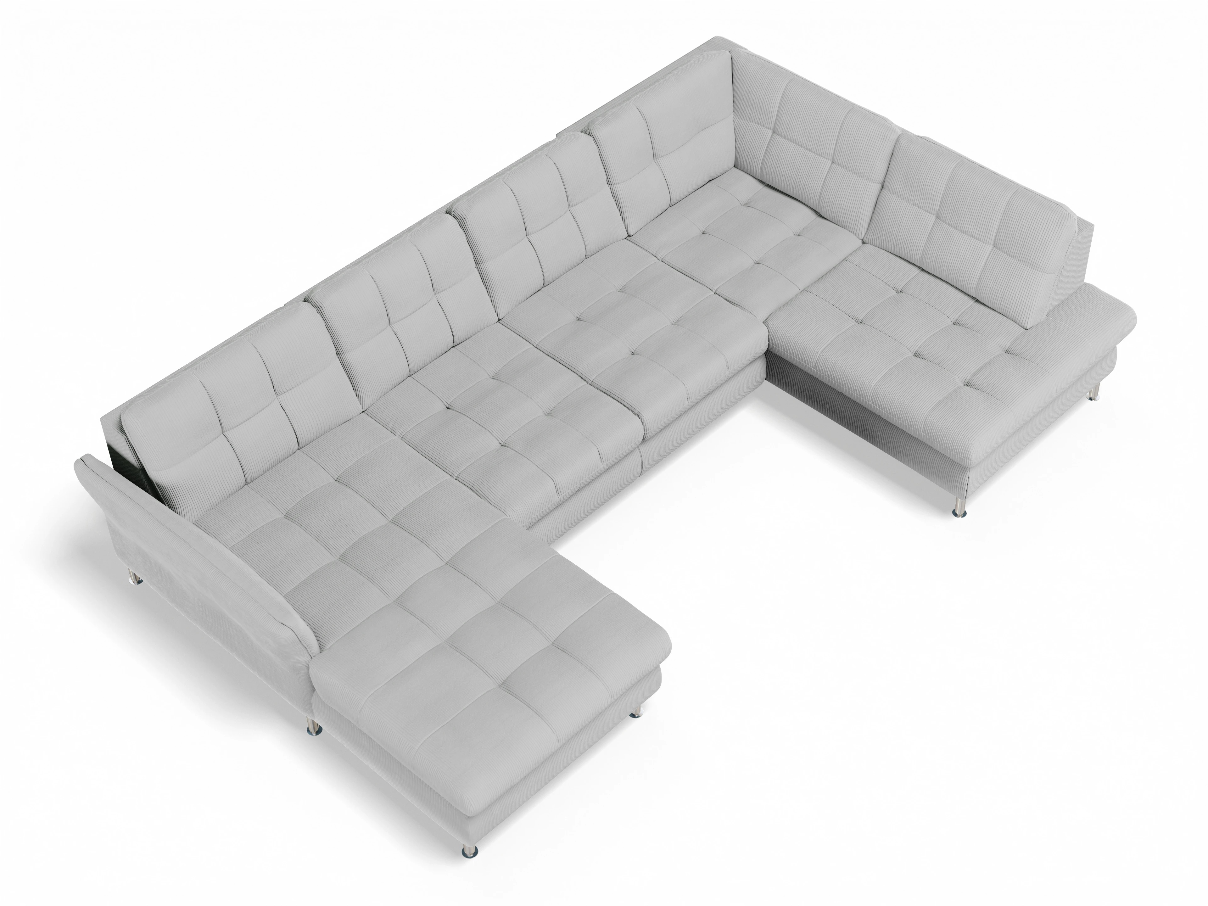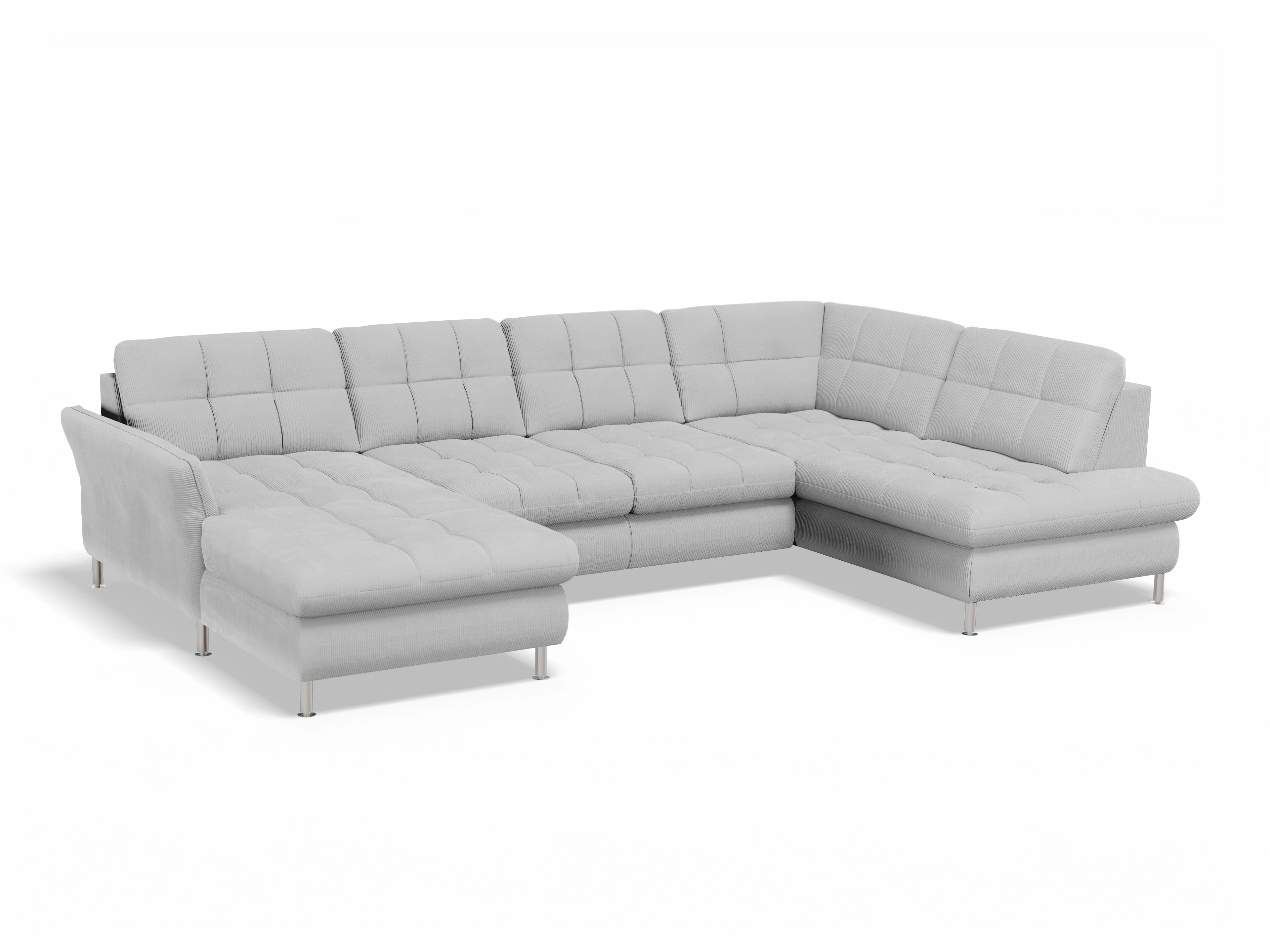 Die Wohnlandschaft besteht aus einem Canape mit Armlehne links, wahlweise mit Stauraum, einem 2,5-Sitzer mittig, wahlweise mit einer Schlaffunktion und einem 1-Sitzer Kombielement, wahlweise mit Bettkasten. Der 2,5-Sitzer kommt mit einer Sitztiefenverstellung inklusive (2x), beim Canapé gegen Aufpreis möglich.