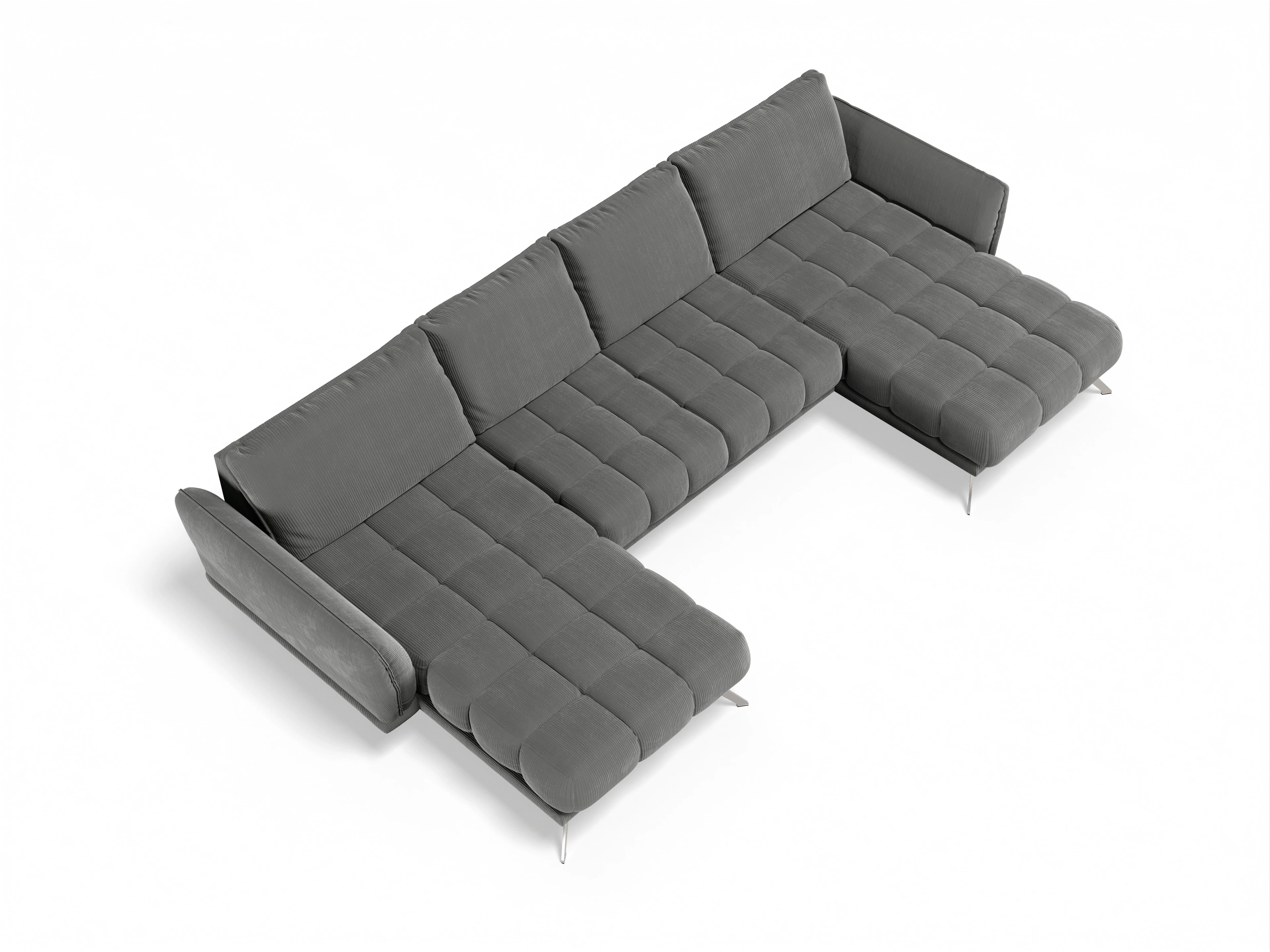 Die Wohnlandschaft besteht aus einem Canape mit Armlehne links, einem 2,5-Sitzer mittig und einem Canape mit Armlehne rechts.