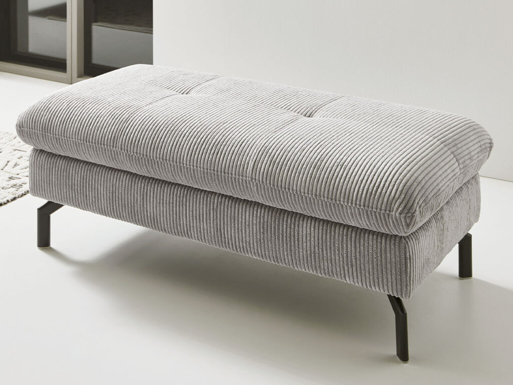 Das Ecksofa besteht aus einem Canapè XL mit einer Armlehne links sowie einem 3-Sitzer mit einer Armlehne rechts.