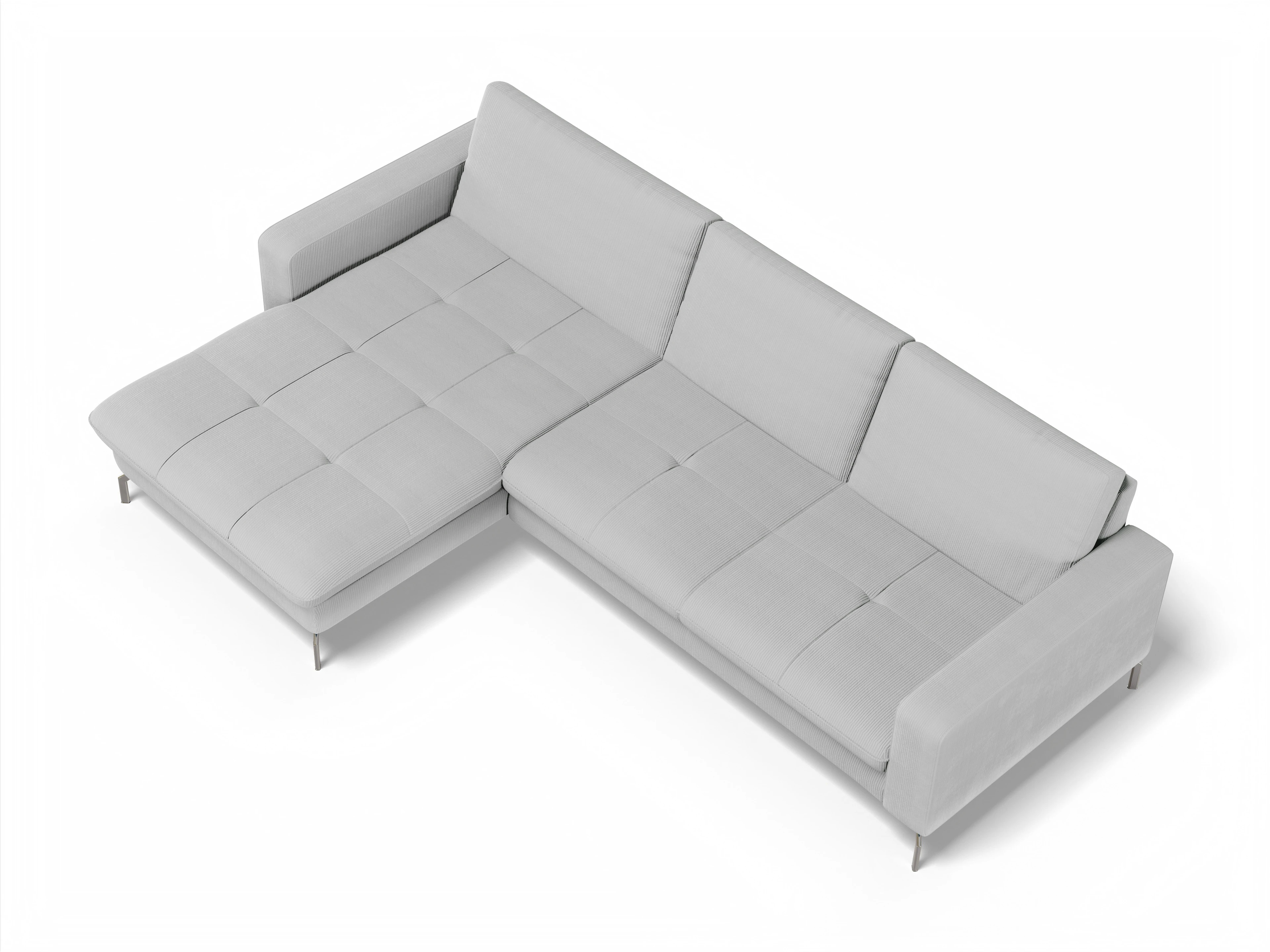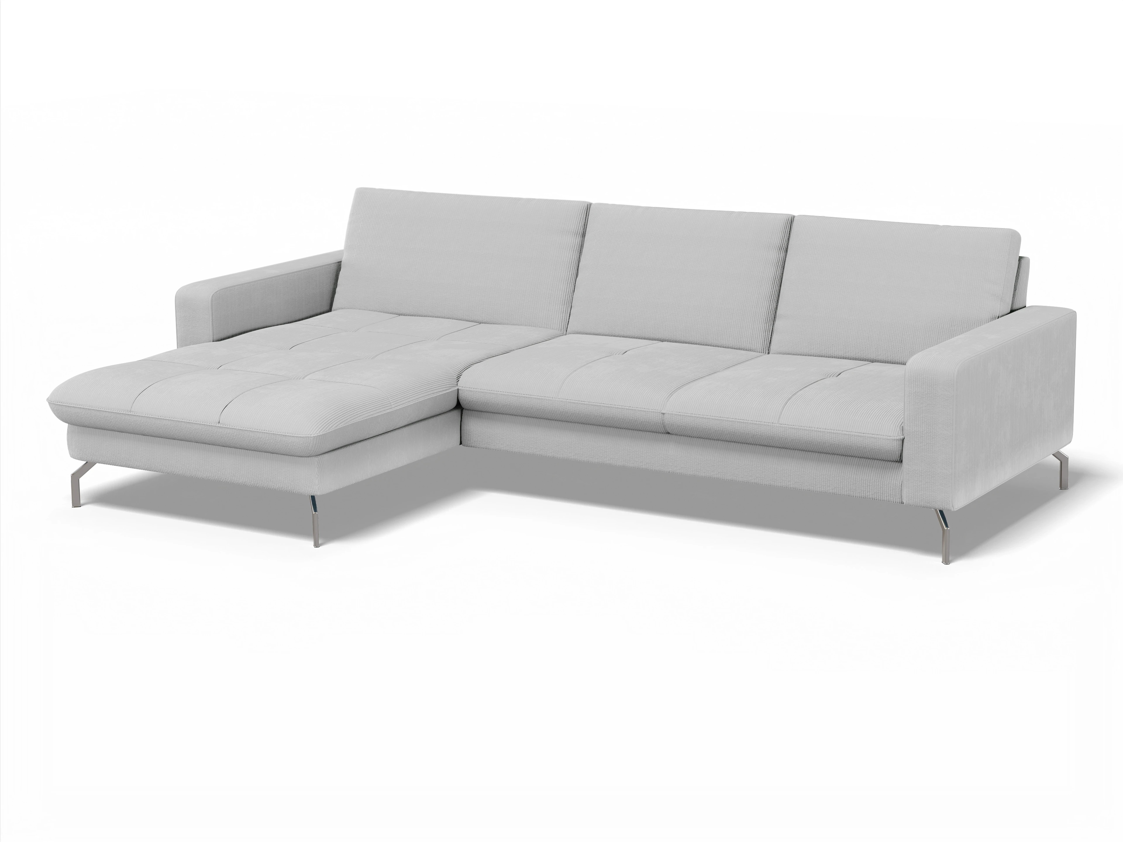 Das Ecksofa besteht aus einem Canapè XL mit einer Armlehne links sowie einem 3-Sitzer mit einer Armlehne rechts.