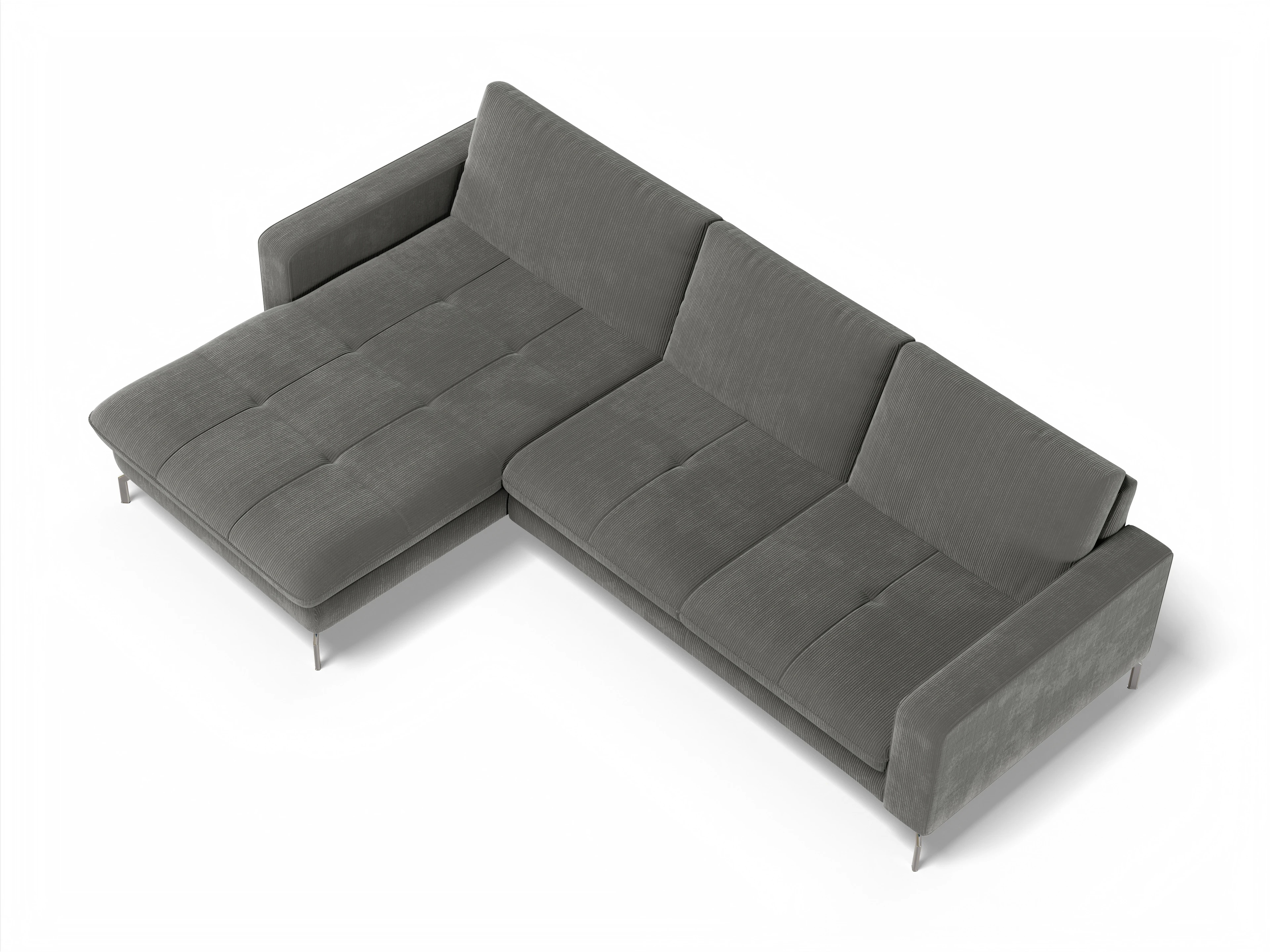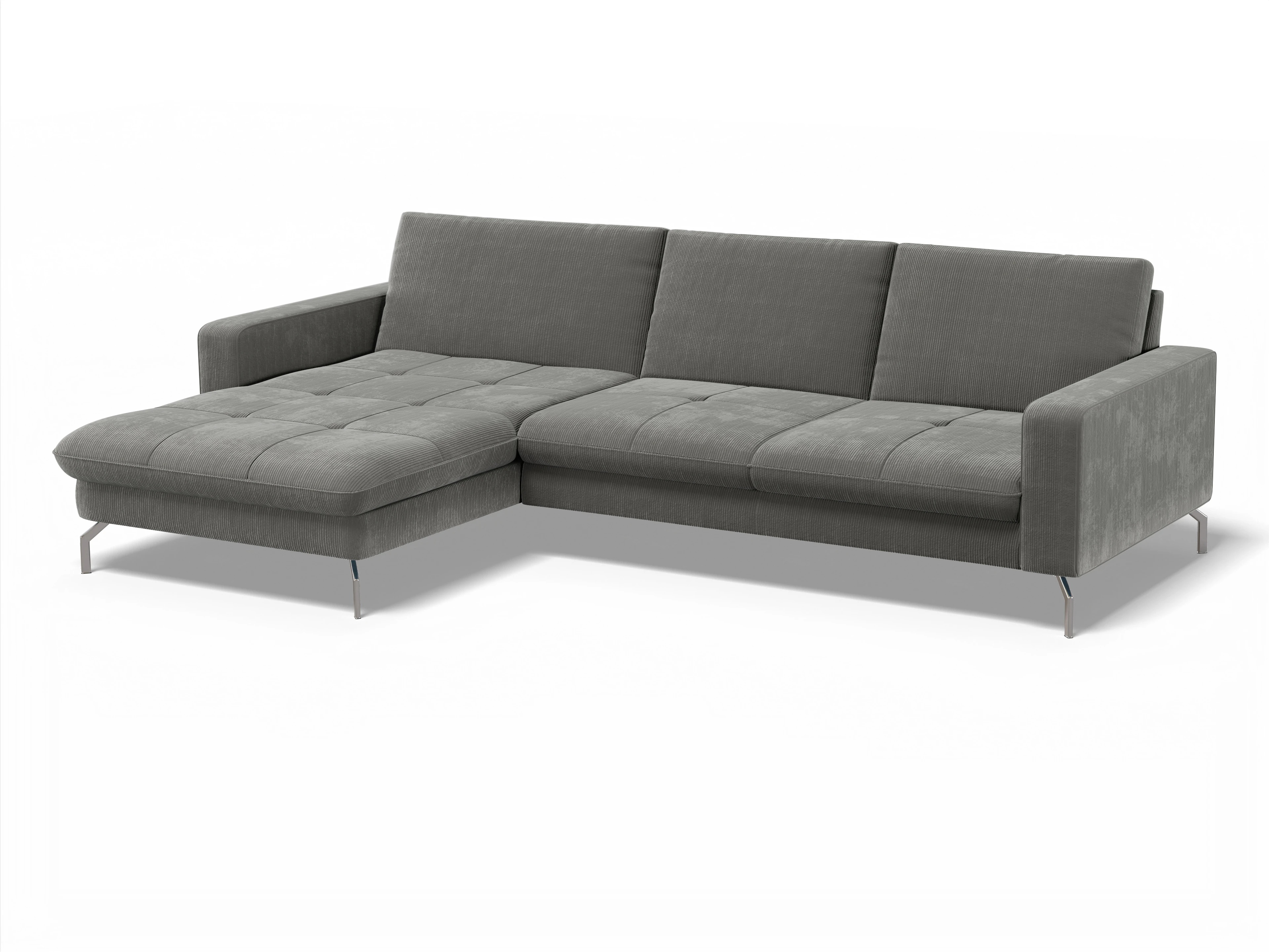 Das Ecksofa besteht aus einem Canapè XL mit einer Armlehne links sowie einem 3-Sitzer mit einer Armlehne rechts.