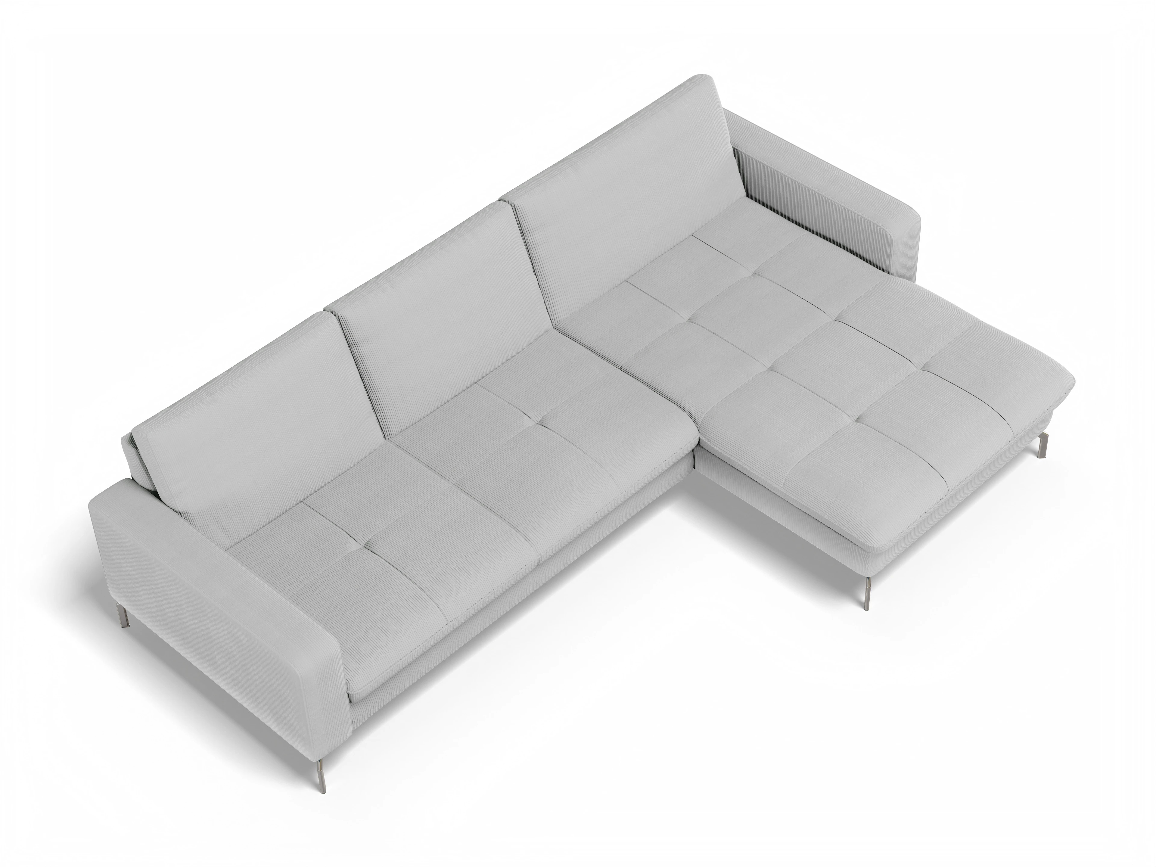 Das Ecksofa besteht aus einem 3-Sitzer mit einer Armlehne links und einem Canapé XL mit einer Armlehne rechts.