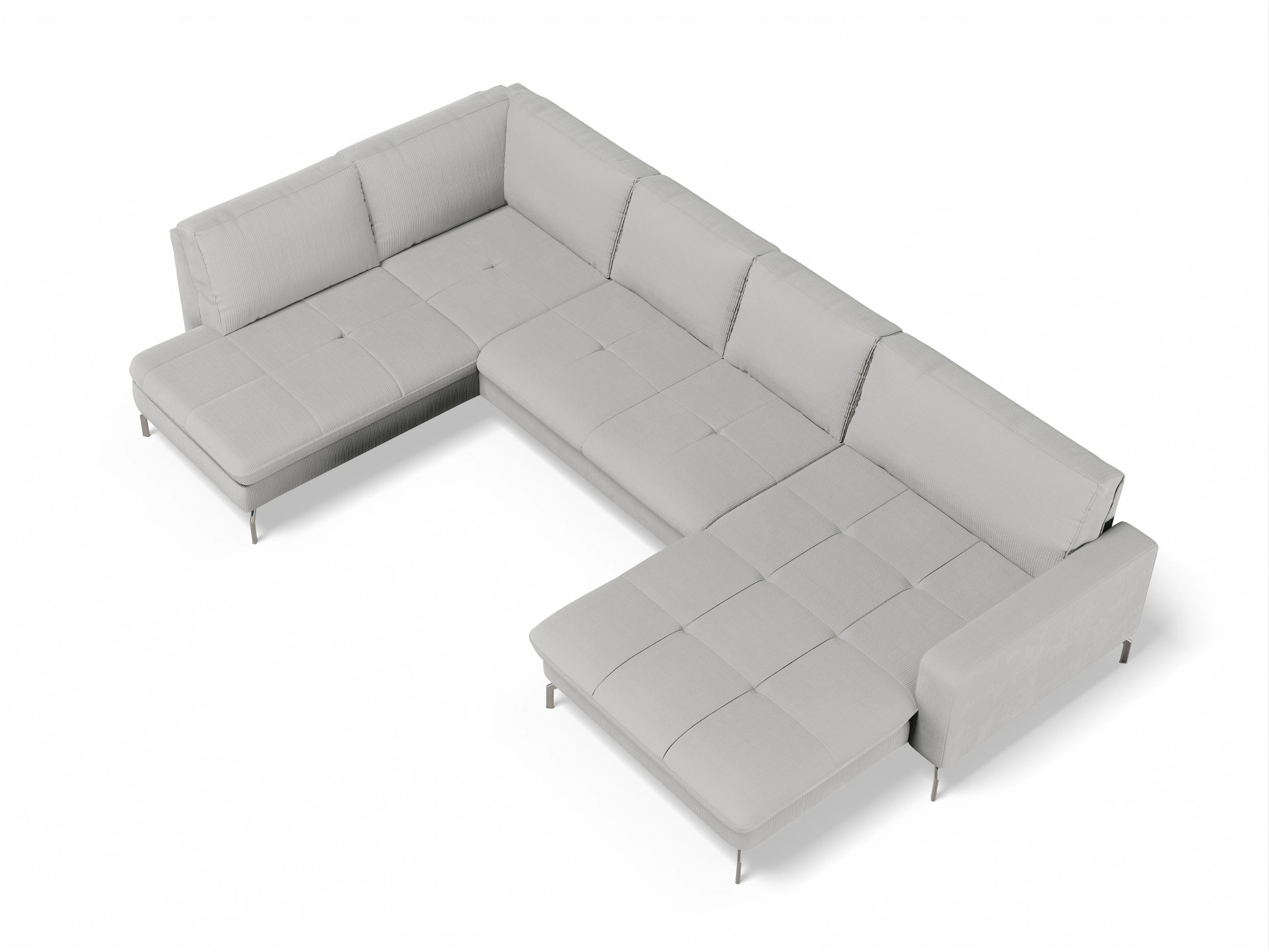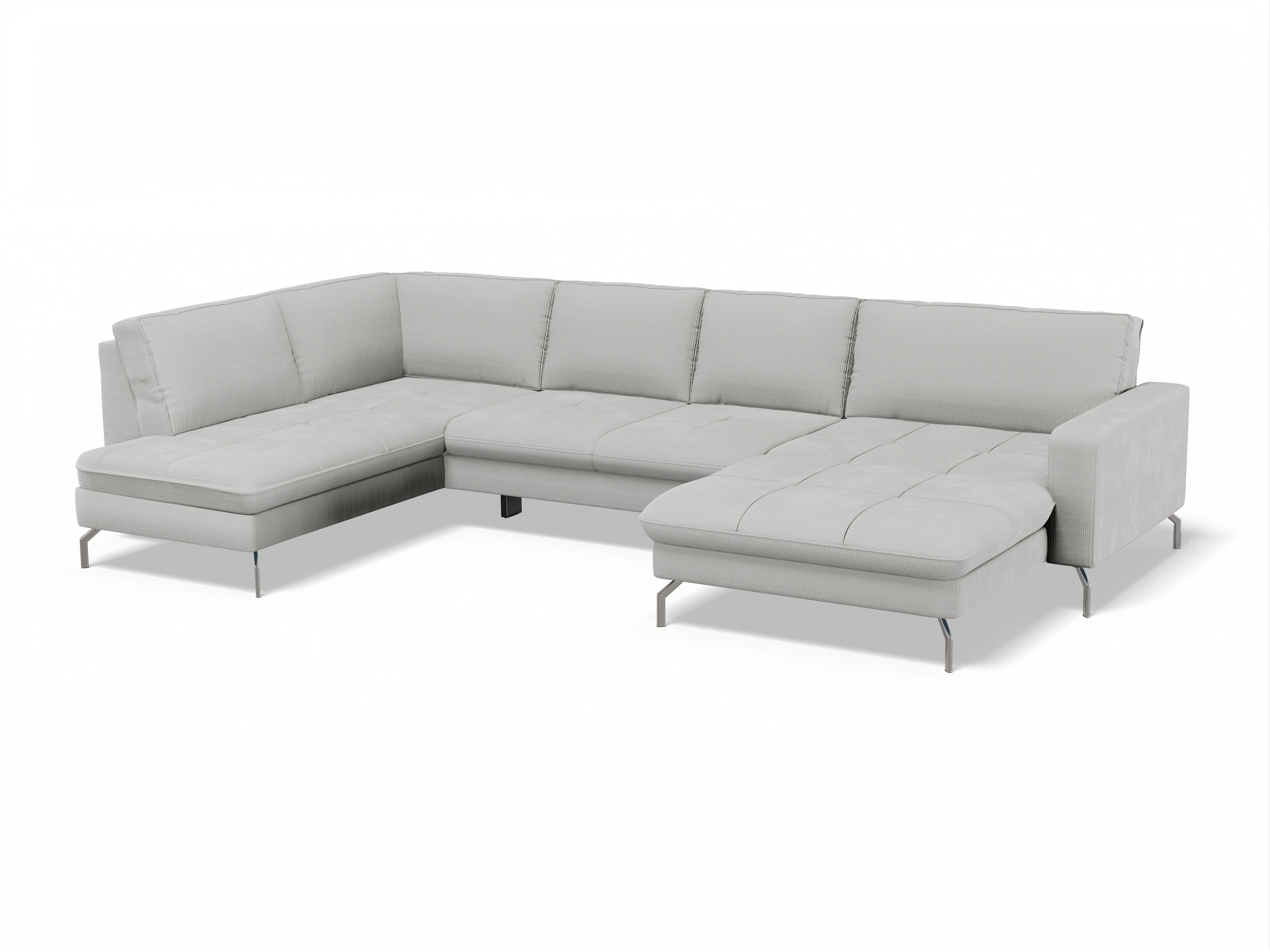 Die Wohnlandschaft besteht aus einem 1,5-Sitzer mit Anstellhocker links, einer Spitzecke, einem 2,5-Sitzer mittig, wahlweise mit einer Schlaffunktion und Canapé XL mit Armlehne.